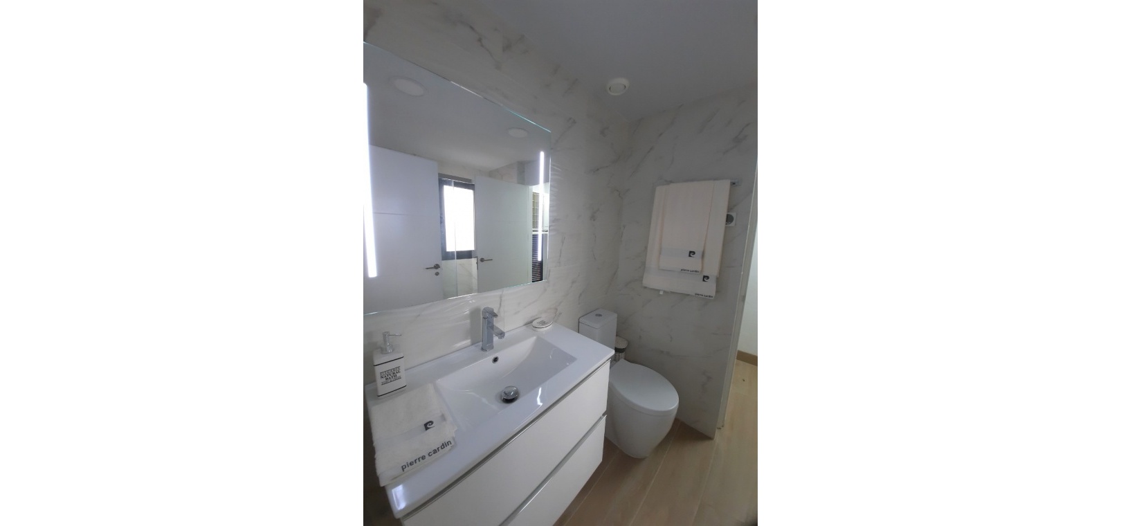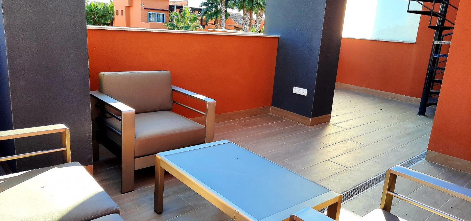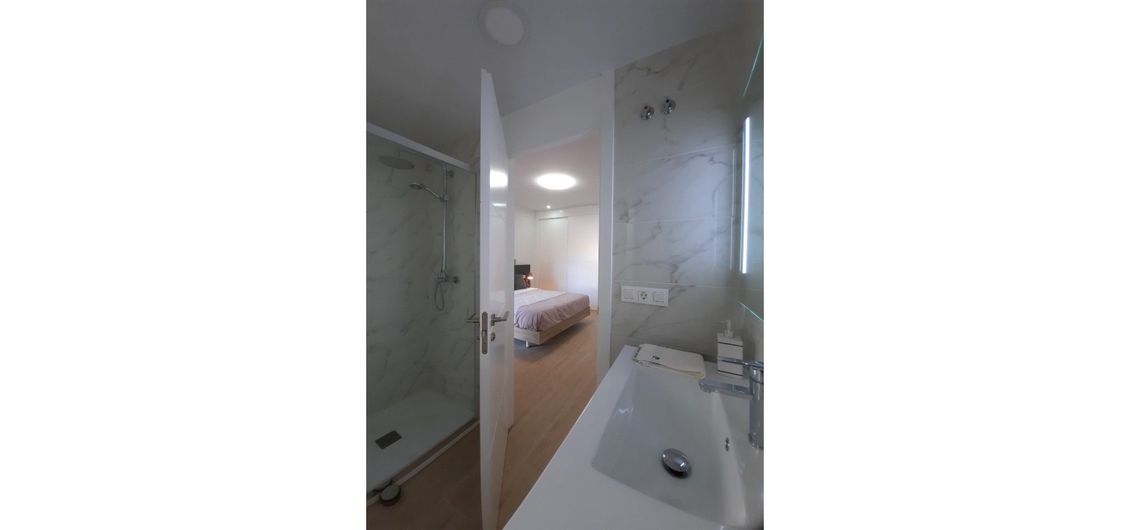Stort vardagsrum / matsal, kök i öppen planlösning, 2 x dubbelrum, master har ett eget duschrum, 1 x gästduschrum, täckt terrass på framsidan, 300m2 trädgård med en uppfart för terrängparkering, byggmaterial av högsta kvalitet, gemensam pool & trädgårdar, underjordisk parkeringsplats, förinstallerad varm och kall A/C och mycket mer.