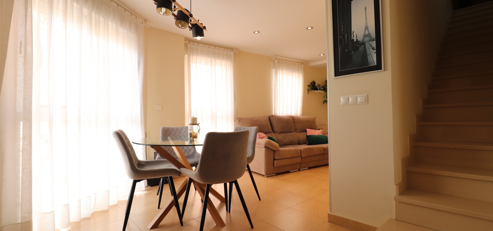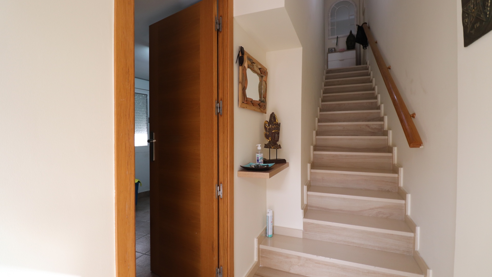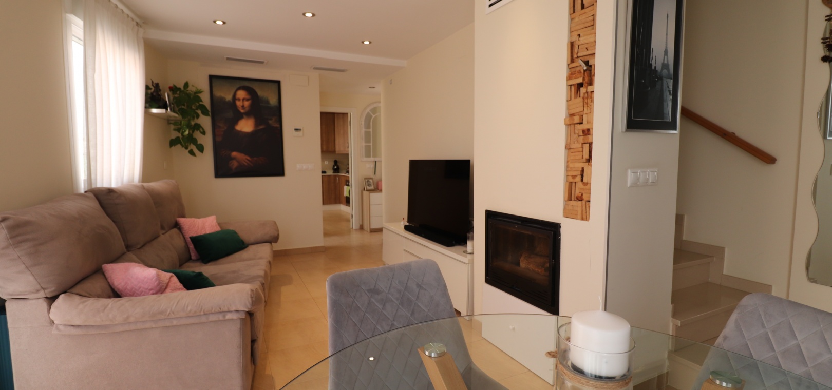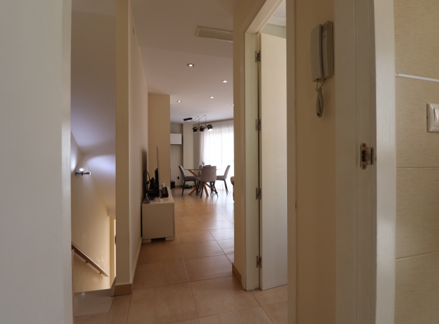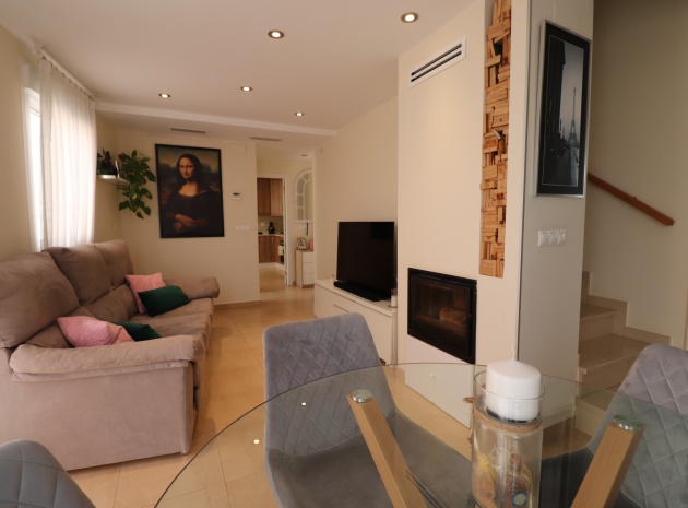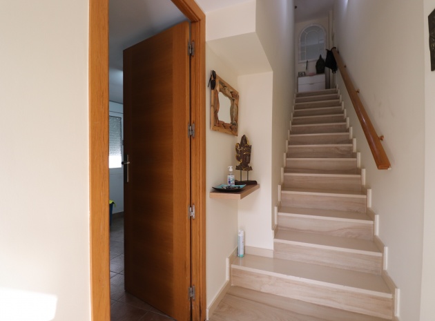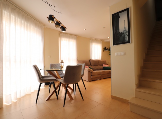 (Inga ERBJUDANDEN) Detta fantastiska, moderna, hörn, söderläge, tre sovrum radhus i Granja de Rocamora ligger i hjärtat av denna typiska, traditionella spanska stad, nära Cox. Beläget inom 5 minuters promenad till närmaste bekvämligheter och faciliteter. Denna fantastiska fastighet i fyra plan, består på bottenvåningen av en önskvärd entré med trappa till första våningen; en sidodörr till dubbelbilsgaraget och ett stort bakrum för förvaring. På första våningen, som är huvudnivån, finns ett separat, välutrustat, modernt kök med frukostbord; garderob; modernt vardagsrum/matsal med mycket ljus och öppen spis. På andra våningen finns tre dubbelrum, två av dem med privata terrasser; och ett fantastiskt elegant, modernt duschrum. På 3:e våningen finns tillgång till det privata, soldränkta, takterrass med solarium av enastående storlek, perfekt för solbad och underhållning, med utsikt över det omgivande området + berget; även ett grovkök finns här... Extra är att inkludera inbyggda garderober i master med soft close, luftkonditionering i hela (luftzon i sovrummen), möjlighet till solpaneler, öppen spis med ventiler till 1:a & 2:a våningen, avkalkat vatten genomgående och moderna ytskikt...