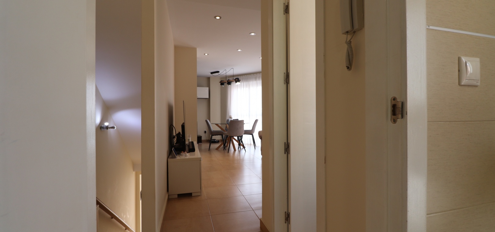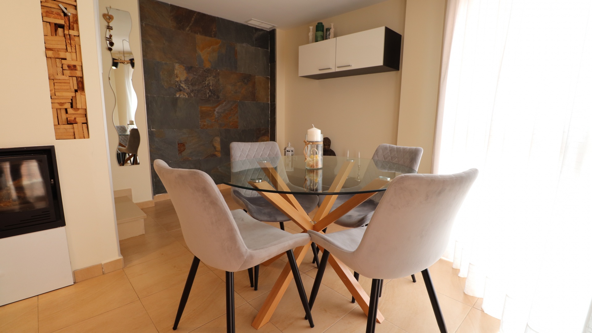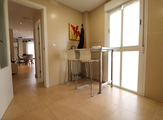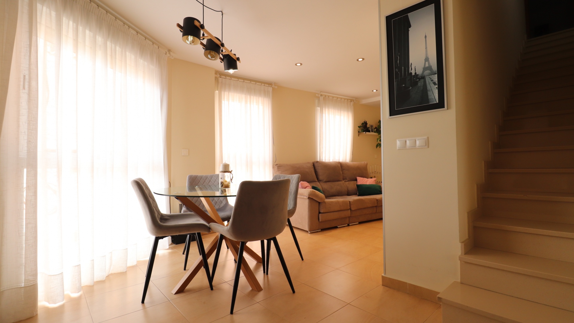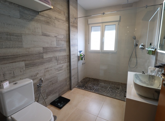(Inga ERBJUDANDEN) Detta fantastiska, moderna, hörn, söderläge, tre sovrum radhus i Granja de Rocamora ligger i hjärtat av denna typiska, traditionella spanska stad, nära Cox. Beläget inom 5 minuters promenad till närmaste bekvämligheter och faciliteter. Denna fantastiska fastighet i fyra plan, består på bottenvåningen av en önskvärd entré med trappa till första våningen; en sidodörr till dubbelbilsgaraget och ett stort bakrum för förvaring. På första våningen, som är huvudnivån, finns ett separat, välutrustat, modernt kök med frukostbord; garderob; modernt vardagsrum/matsal med mycket ljus och öppen spis. På andra våningen finns tre dubbelrum, två av dem med privata terrasser; och ett fantastiskt elegant, modernt duschrum. På 3:e våningen finns tillgång till det privata, soldränkta, takterrass med solarium av enastående storlek, perfekt för solbad och underhållning, med utsikt över det omgivande området + berget; även ett grovkök finns här... Extra är att inkludera inbyggda garderober i master med soft close, luftkonditionering i hela (luftzon i sovrummen), möjlighet till solpaneler, öppen spis med ventiler till 1:a & 2:a våningen, avkalkat vatten genomgående och moderna ytskikt...