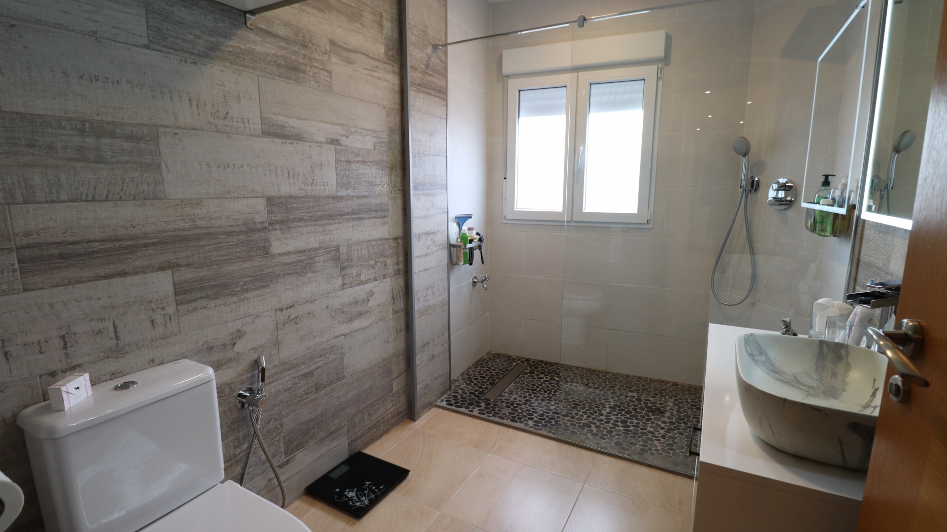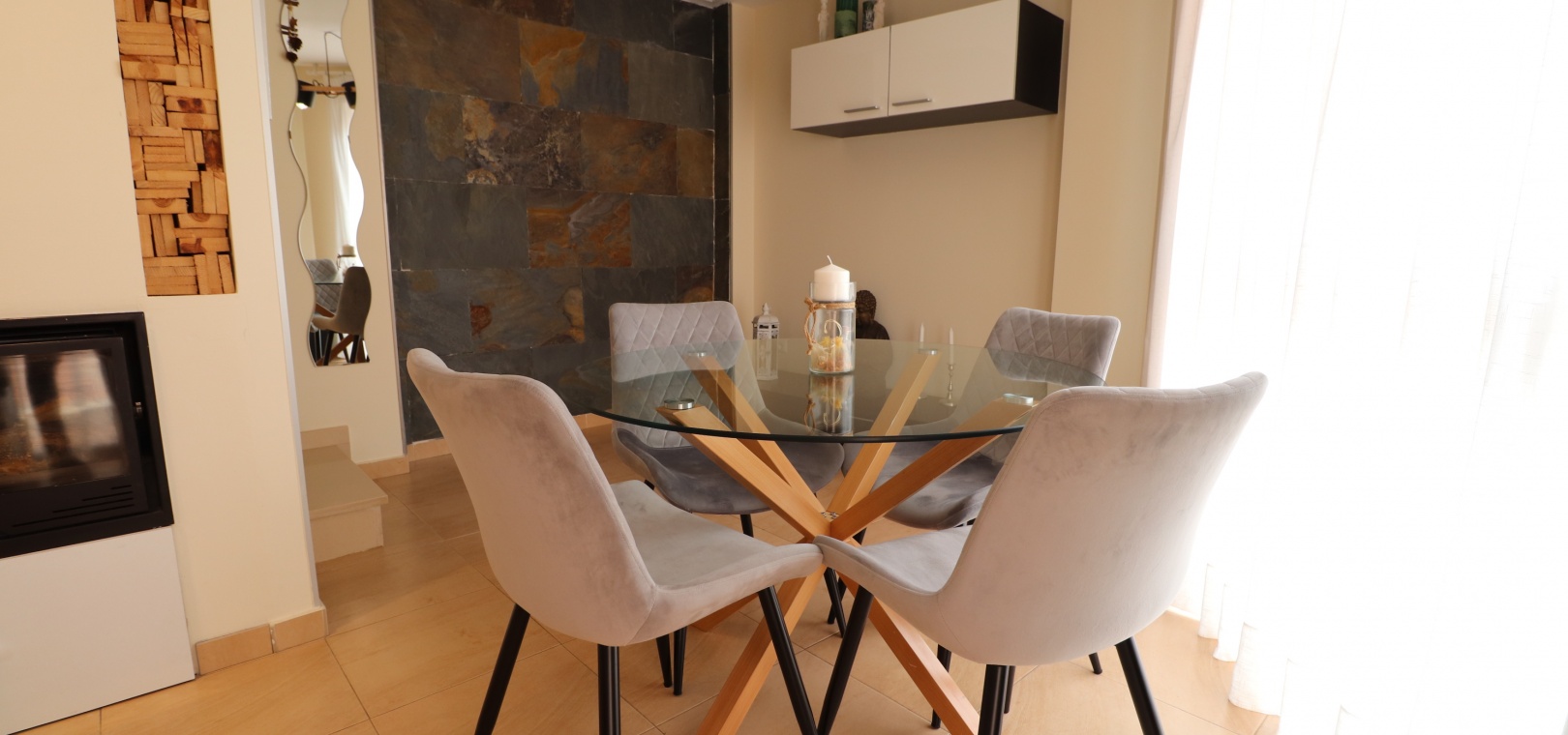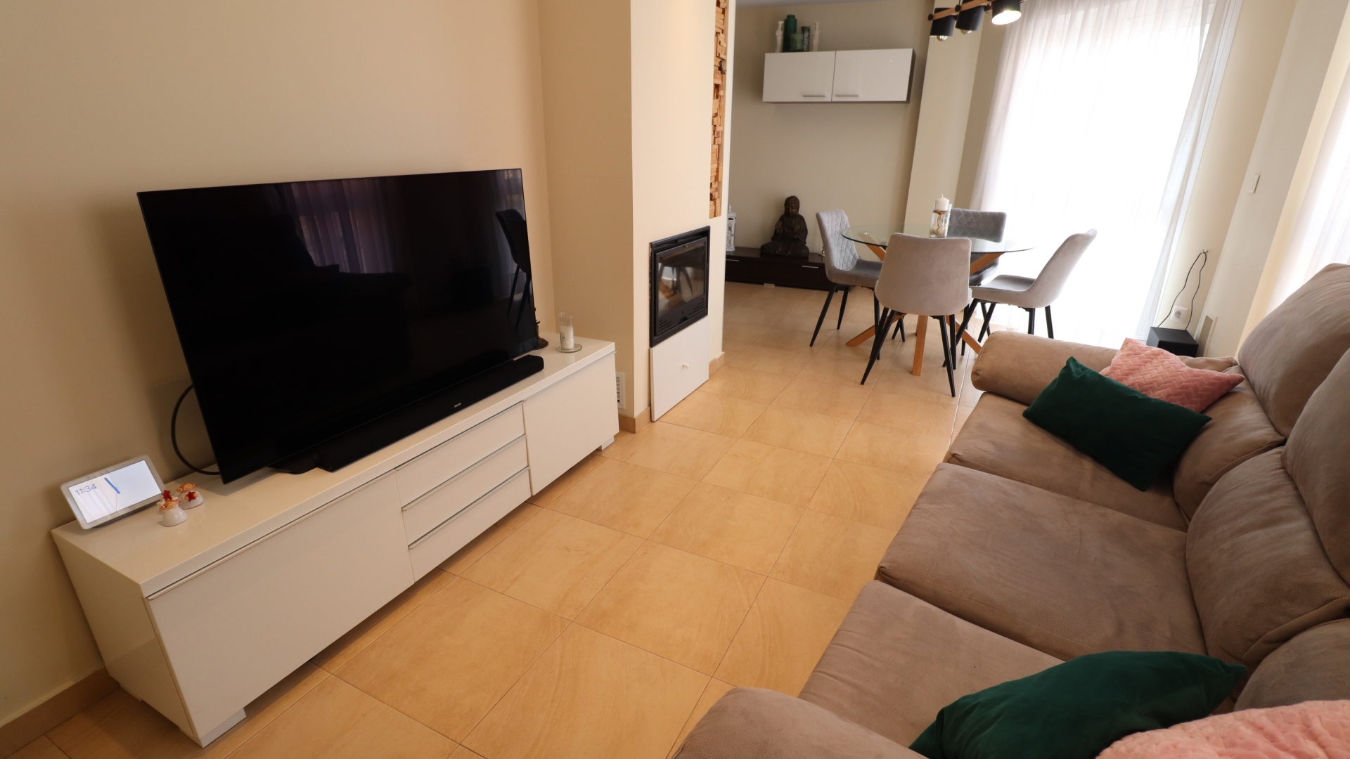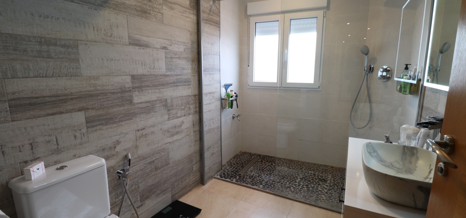 (Inga ERBJUDANDEN) Detta fantastiska, moderna, hörn, söderläge, tre sovrum radhus i Granja de Rocamora ligger i hjärtat av denna typiska, traditionella spanska stad, nära Cox. Beläget inom 5 minuters promenad till närmaste bekvämligheter och faciliteter. Denna fantastiska fastighet i fyra plan, består på bottenvåningen av en önskvärd entré med trappa till första våningen; en sidodörr till dubbelbilsgaraget och ett stort bakrum för förvaring. På första våningen, som är huvudnivån, finns ett separat, välutrustat, modernt kök med frukostbord; garderob; modernt vardagsrum/matsal med mycket ljus och öppen spis. På andra våningen finns tre dubbelrum, två av dem med privata terrasser; och ett fantastiskt elegant, modernt duschrum. På 3:e våningen finns tillgång till det privata, soldränkta, takterrass med solarium av enastående storlek, perfekt för solbad och underhållning, med utsikt över det omgivande området + berget; även ett grovkök finns här... Extra är att inkludera inbyggda garderober i master med soft close, luftkonditionering i hela (luftzon i sovrummen), möjlighet till solpaneler, öppen spis med ventiler till 1:a & 2:a våningen, avkalkat vatten genomgående och moderna ytskikt...