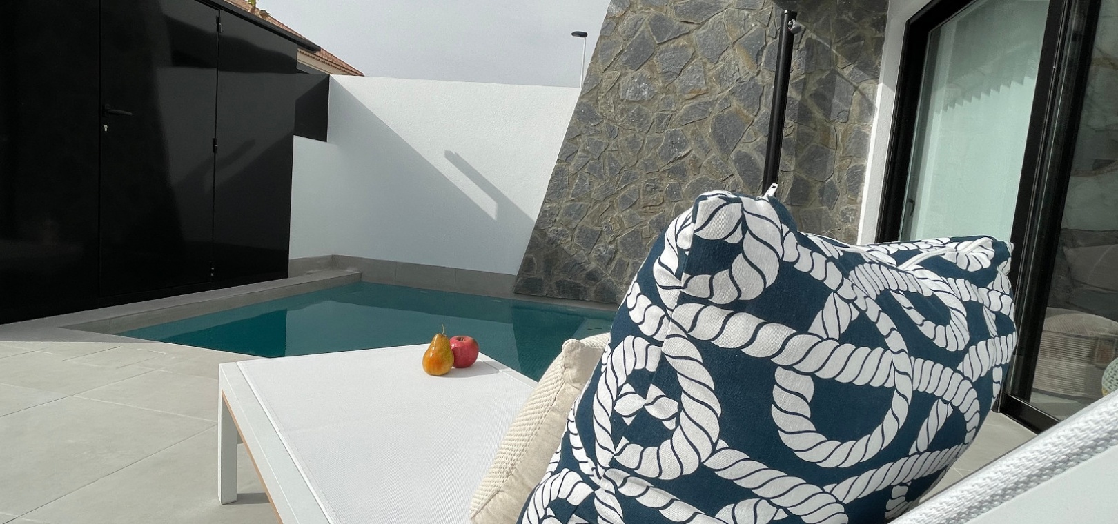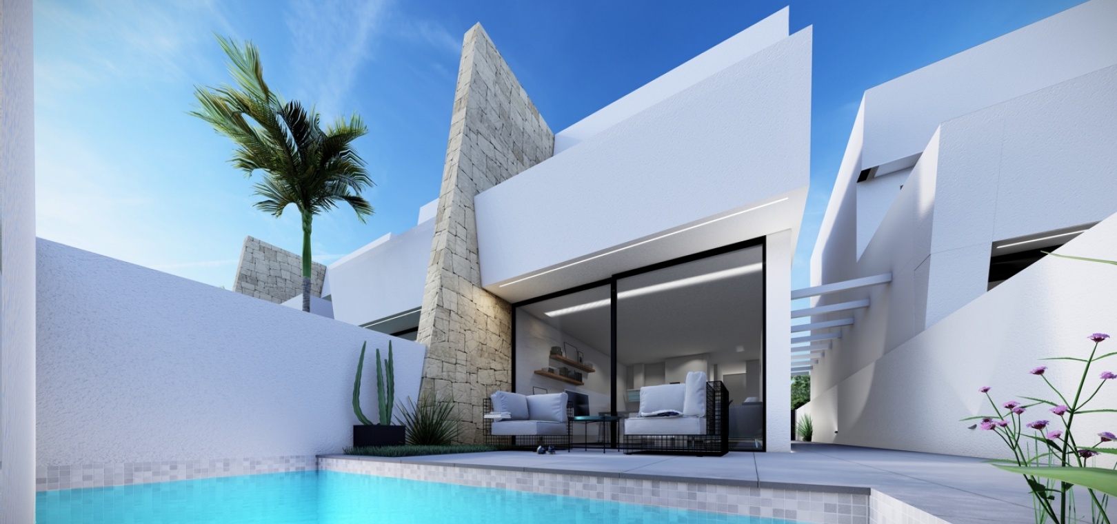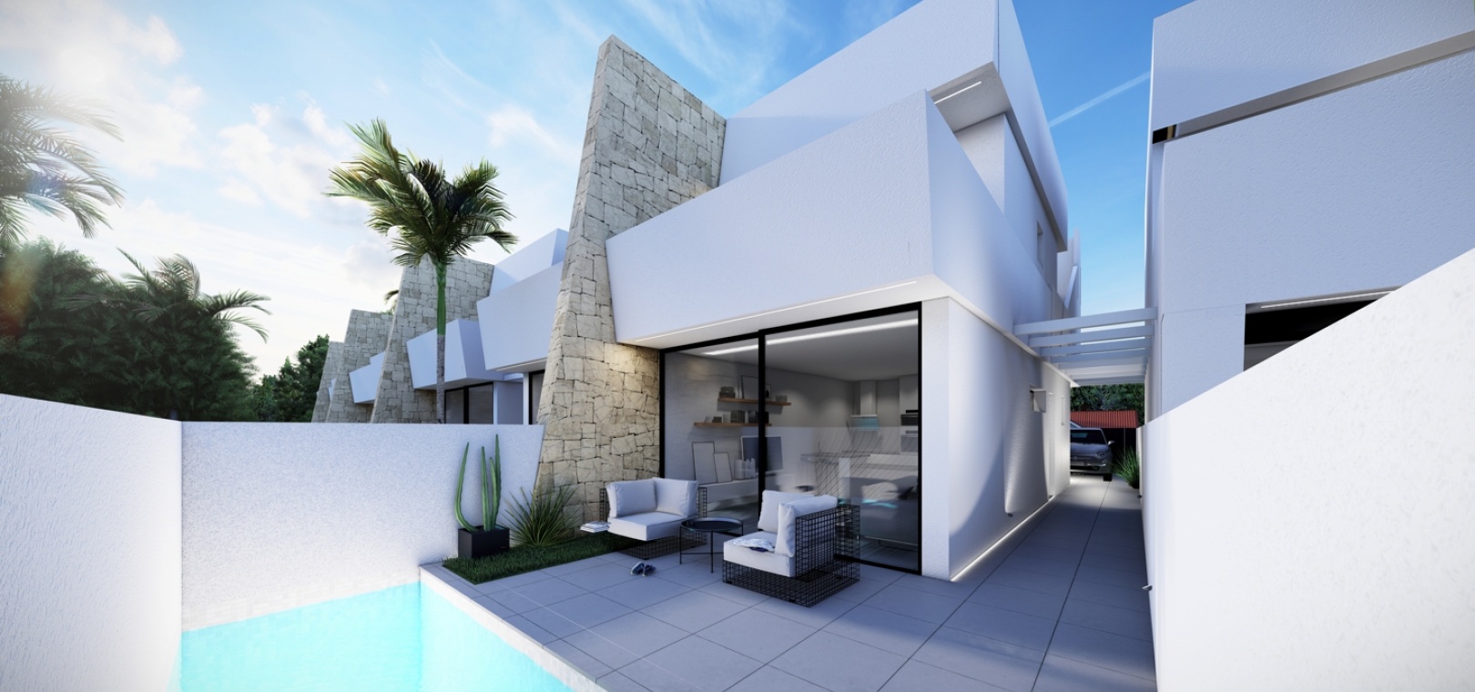 Nybyggd ultramodern design 3 sovrum, 2 badrum Elisa Villa stil parhus belägna i San Javier, Murcia Costa Blanca.