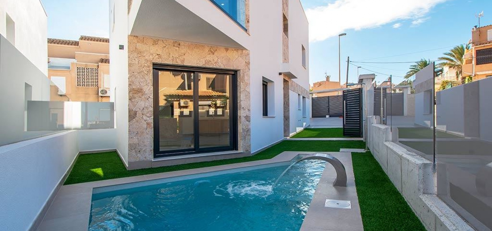 En fantastisk nyckelfärdig 3-bäddsvilla med 3,5 badrum med privat pool bara 250 meter från havet belägen i La Mata, Costa Blanca South.
