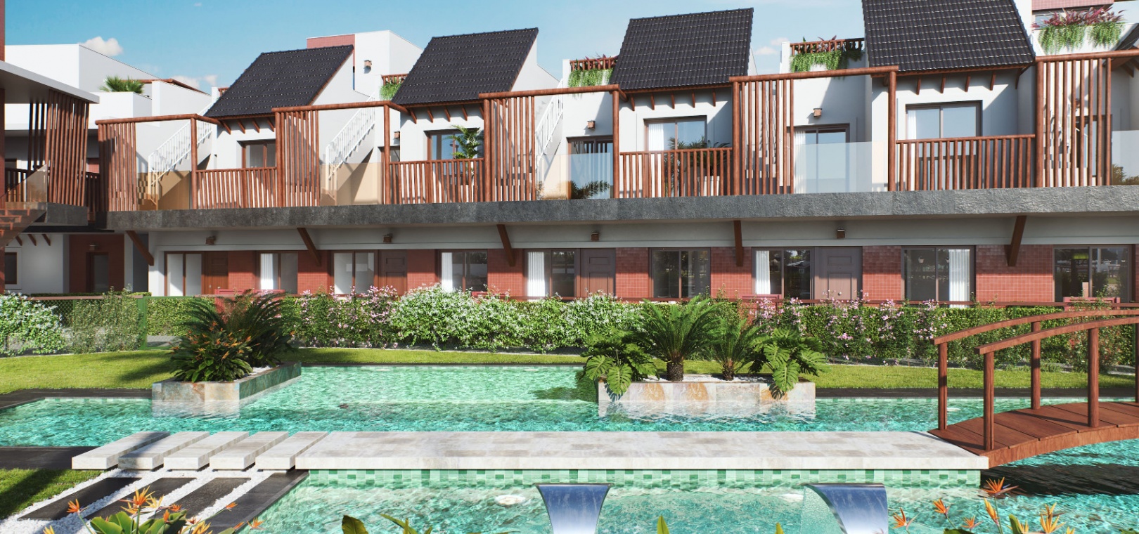 Nybyggda 2 sovrum 2 badrum lägenheter belägna i Res. Nuad Thai, Pilar de La Horadada, Costa Blanca South. Dessa lyxiga moderna lägenheter består kortfattat av följande: - Lounge/matsal, utrustat kök i amerikansk stil, 2 x dubbelrum alla med inbyggda garderober, 2 x badrum med golvvärme, terrass fram och bak eller främre balkong och solarium, gemensam pool , gemensam parkering, förinstallerad varm och kall A/C och mycket mycket mer. Valfritt förråd från 5 000 Euro. Dessa vackra fastigheter ligger bara en kort promenad från alla lokala bekvämligheter och cirka 4 km från havet. Den nya flygplatsen Corvera Murcia ligger 30 minuters bilresa bort och Alicantes flygplats ligger cirka 50 minuters bilresa bort.