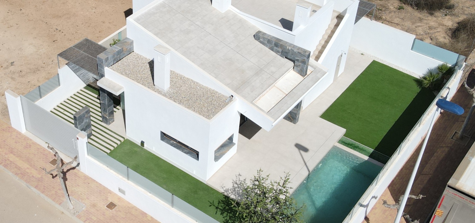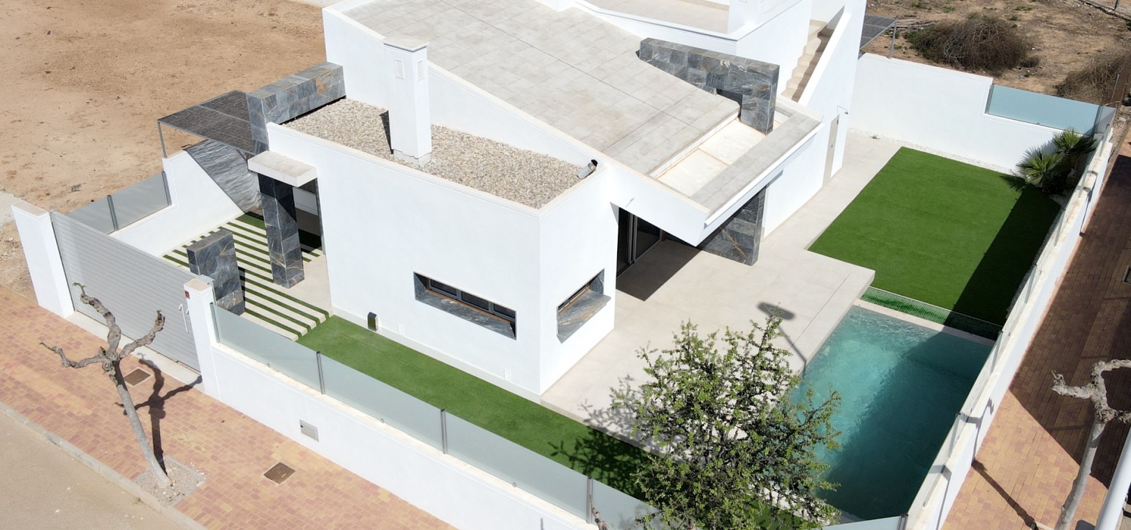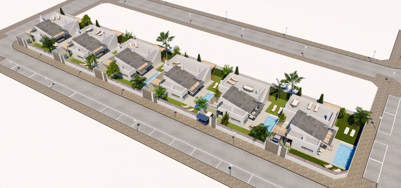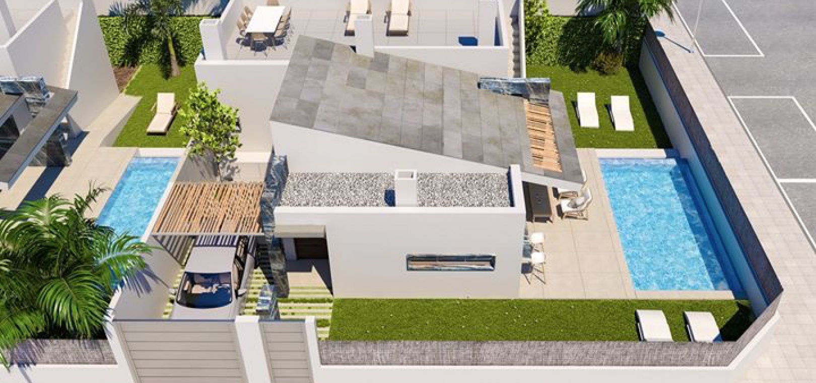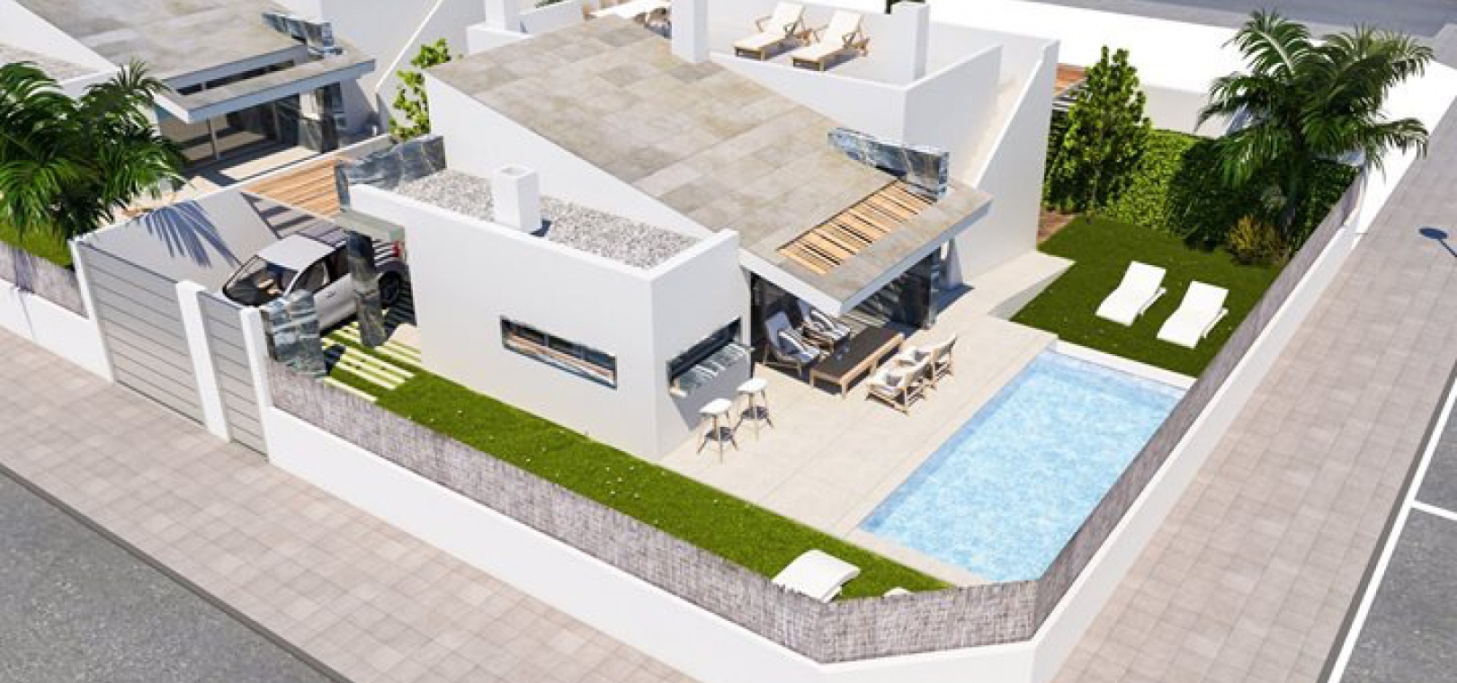 Nybyggda fristående villor med 3 sovrum och 2 badrum i modern stil med privat pool och 44m2 privat solarium beläget i Res. Sunset Premium Villas i den vackra kuststaden Lo Pagan, Mar Menor, Murcia. Dessa Premium Deluxe villor i modern stil består mycket kortfattat av följande: - Rymligt vardagsrum/matsal, fantastiskt designat kök med öppen planlösning, 3 x dubbelrum, 2 x badrum, uppfart för terrängparkering, privat pool, 44m2 privat taksolarium, topp kvalitetsinventarier och beslag och mycket mer. 98m2 byggstorlek & tomtstorlek 260-290m2. Dessa vackra fastigheter ligger bara en kort promenad från alla lokala bekvämligheter och cirka 3 km från stranden.