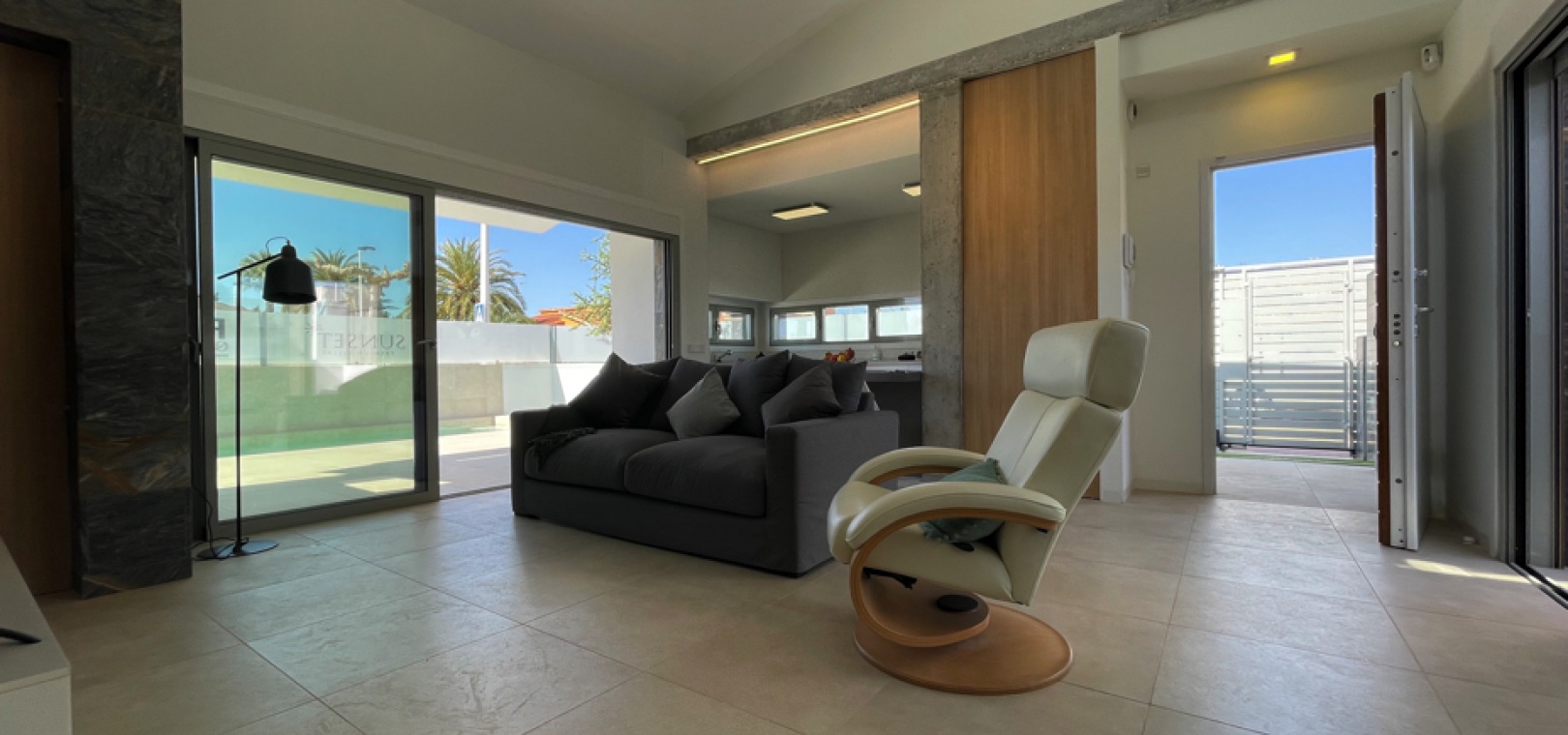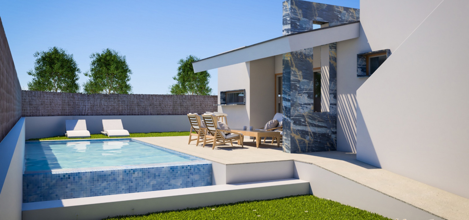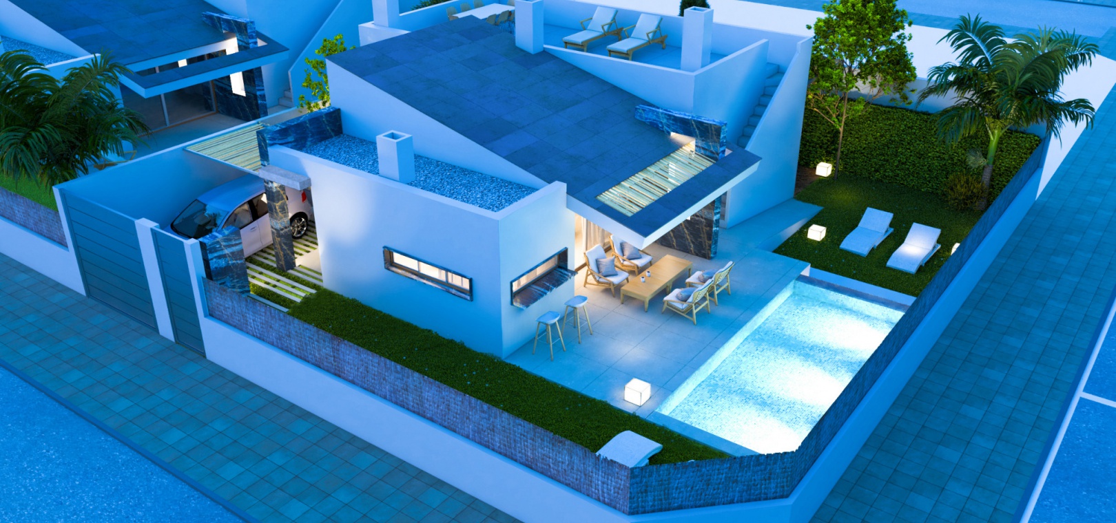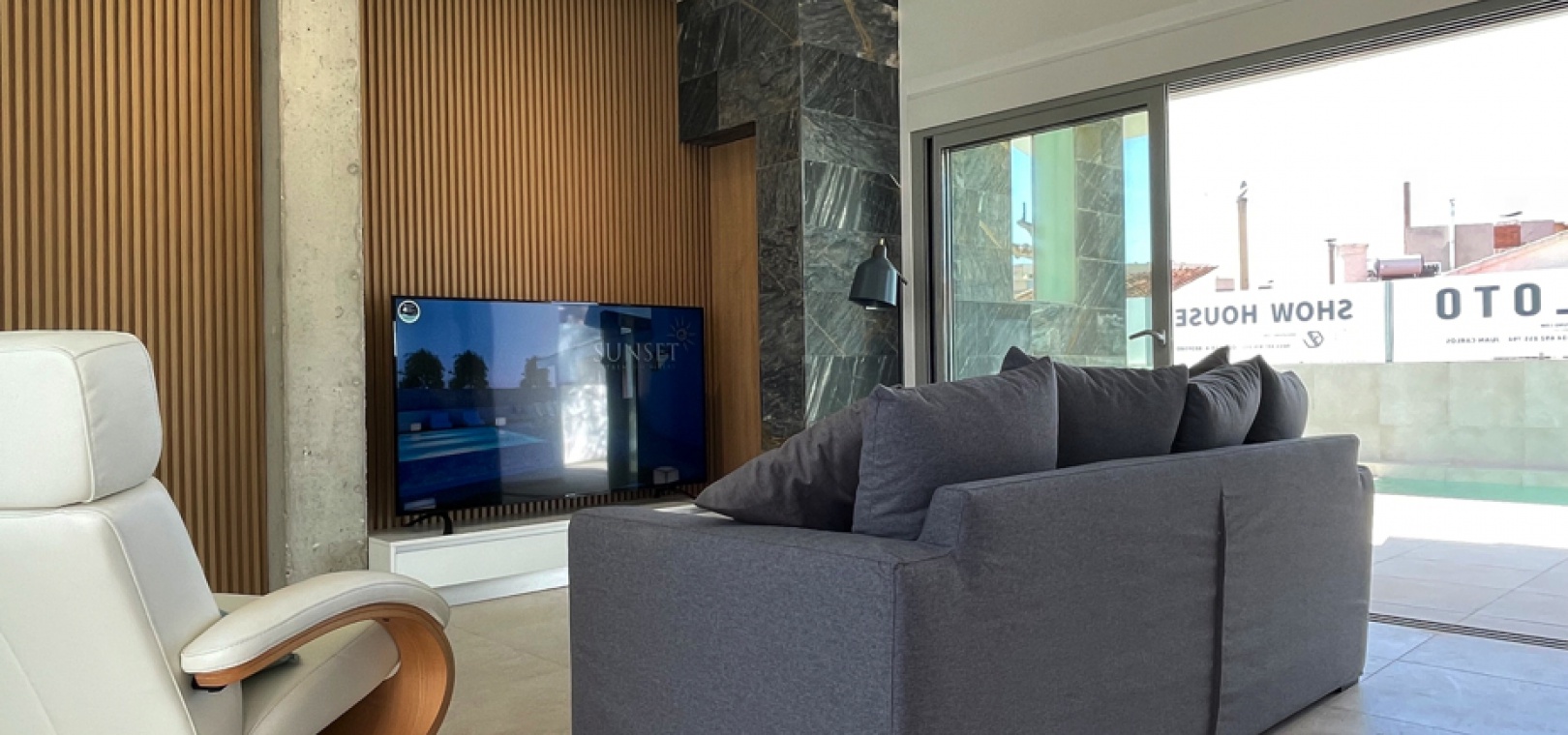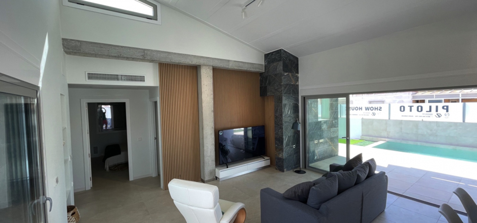 Nybyggda fristående villor med 3 sovrum och 2 badrum i modern stil med privat pool och 44m2 privat solarium beläget i Res. Sunset Premium Villas i den vackra kuststaden Lo Pagan, Mar Menor, Murcia. Dessa Premium Deluxe villor i modern stil består mycket kortfattat av följande: - Rymligt vardagsrum/matsal, fantastiskt designat kök med öppen planlösning, 3 x dubbelrum, 2 x badrum, uppfart för terrängparkering, privat pool, 44m2 privat taksolarium, topp kvalitetsinventarier och beslag och mycket mer. 98m2 byggstorlek & tomtstorlek 260-290m2. Dessa vackra fastigheter ligger bara en kort promenad från alla lokala bekvämligheter och cirka 3 km från stranden.