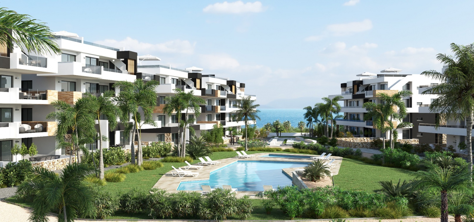 Nybyggda lägenheter med 2 sovrum och 2 badrum i modern stil i Res. Sunrise Deluxe, Playa Flamenca, Costa Blanca.