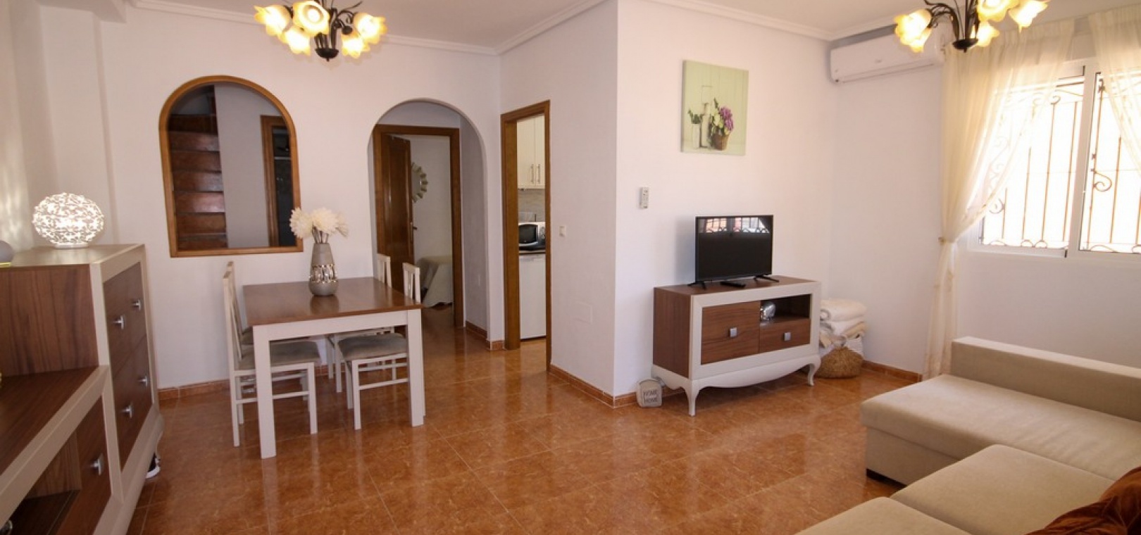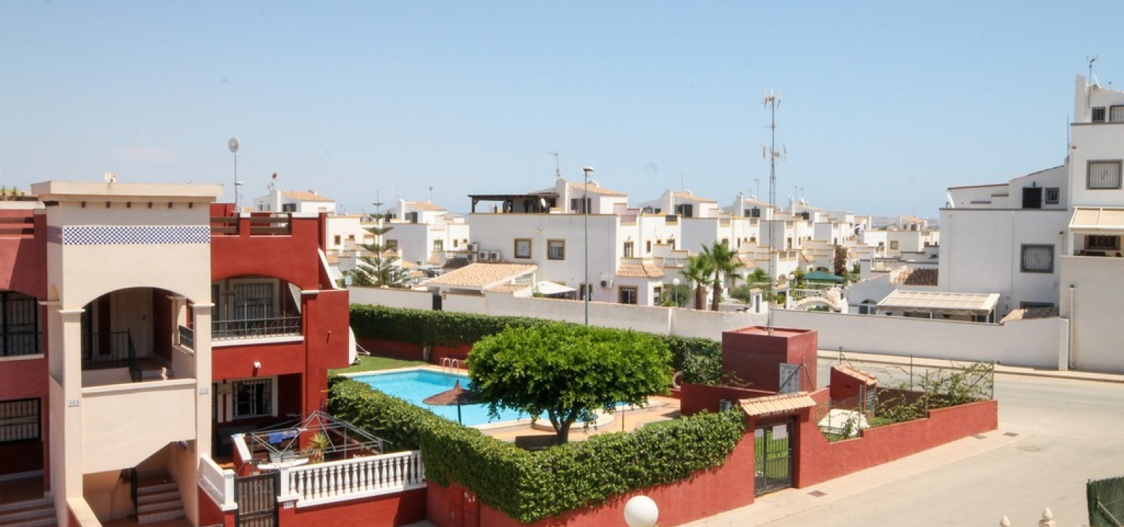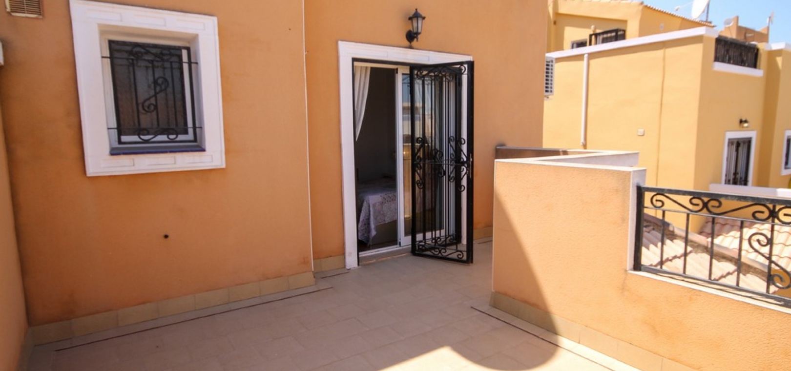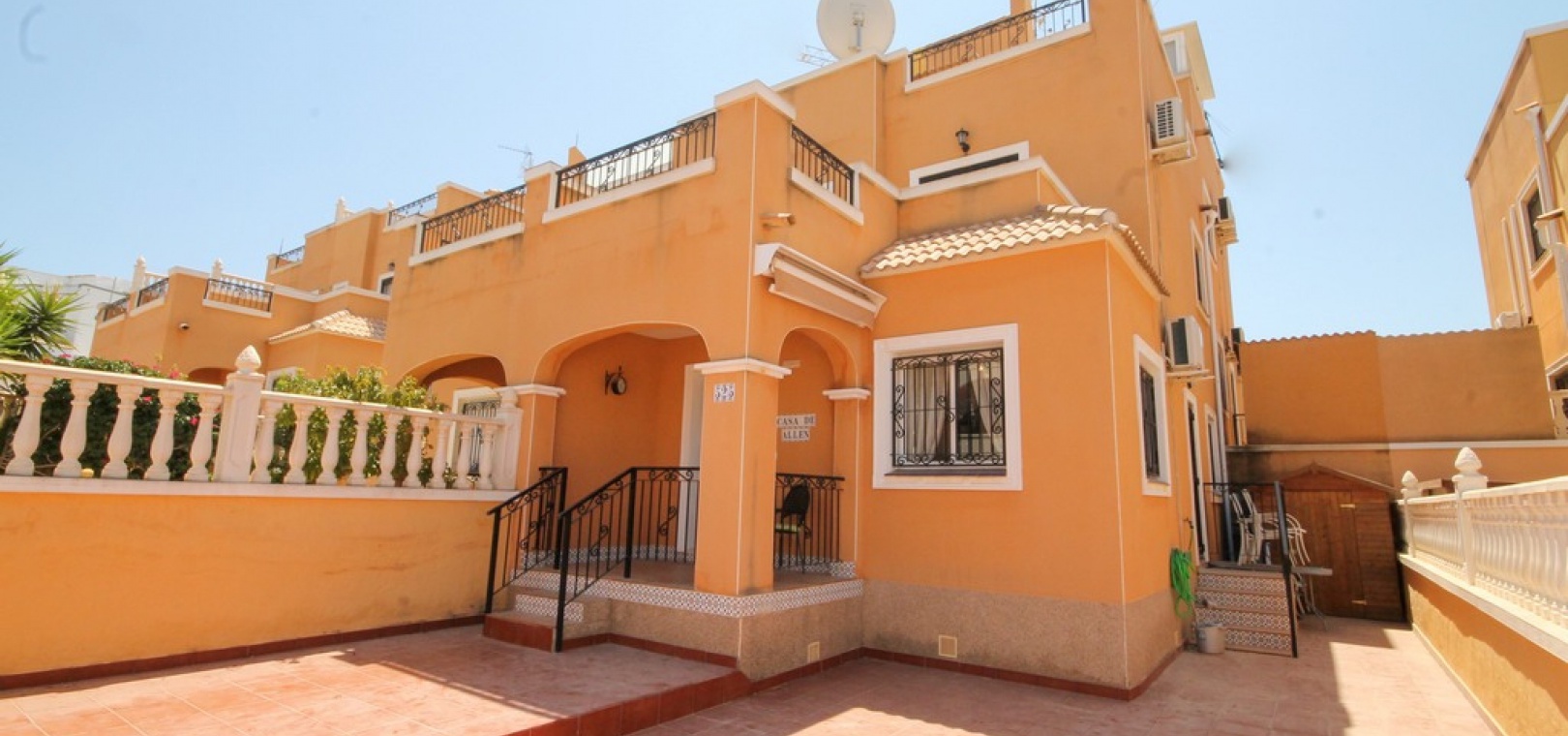 Ett fyrbäddshus med 3 sovrum och 2 badrum med privat takterrass med solarium i Dream Hills, Los Altos, Costa Blanca. Denna härliga fastighet säljs i mycket gott skick, säljs möblerad och består mycket kortfattat av följande:- På bottenvåningen finns ett rymligt vardagsrum/matrum med varm och kall luftkonditionering, nyligen utrustat öppet separat kök, 1 x dubbelrum med inbyggda garderober, 1 x nymonterat duschrum och en täckt terrass på framsidan. På första våningen finns det största dubbelrum med inbyggda garderober, varm och kall luftkonditionering och en altandörr som leder till balkong, 1 x dubbelrum med inbyggda garderober, 1 x nymonterat duschrum och privat takterrass. Utanför finns en trädgård med en uppfart för off-road parkering, härlig gemensam pool mittemot fastigheten och mycket mycket mer. Denna fastighet ligger cirka 3 km från stränderna Playa Flamenca och Punta Prima och bara 35 minuter från Murcia Corvera flygplats och 45 minuter från Alicantes flygplats. Lokala restauranger, barer, butiker och den lokala busshållplatsen ligger alla inom gångavstånd.