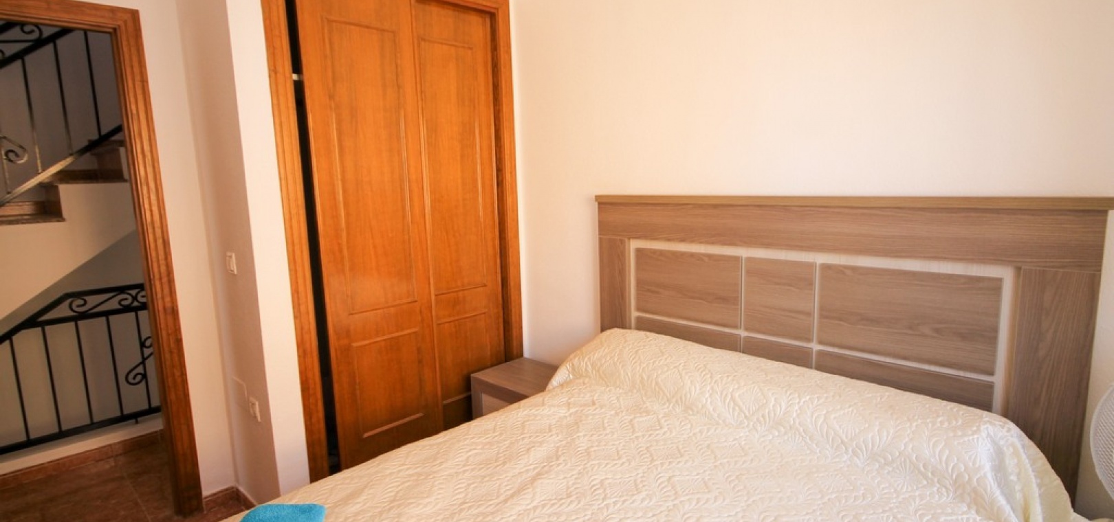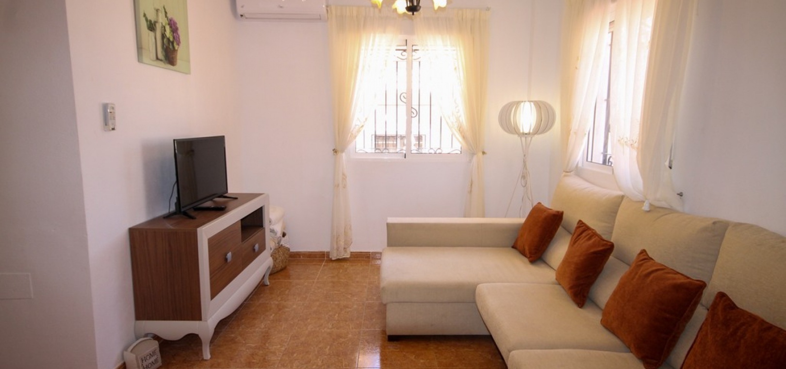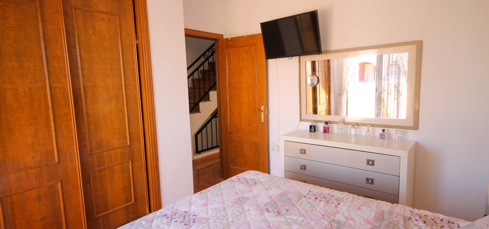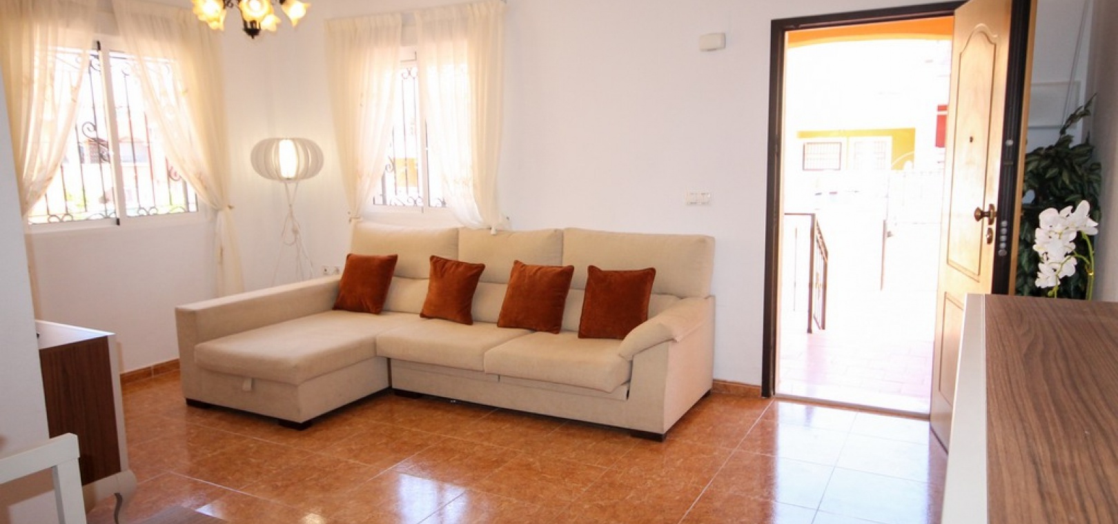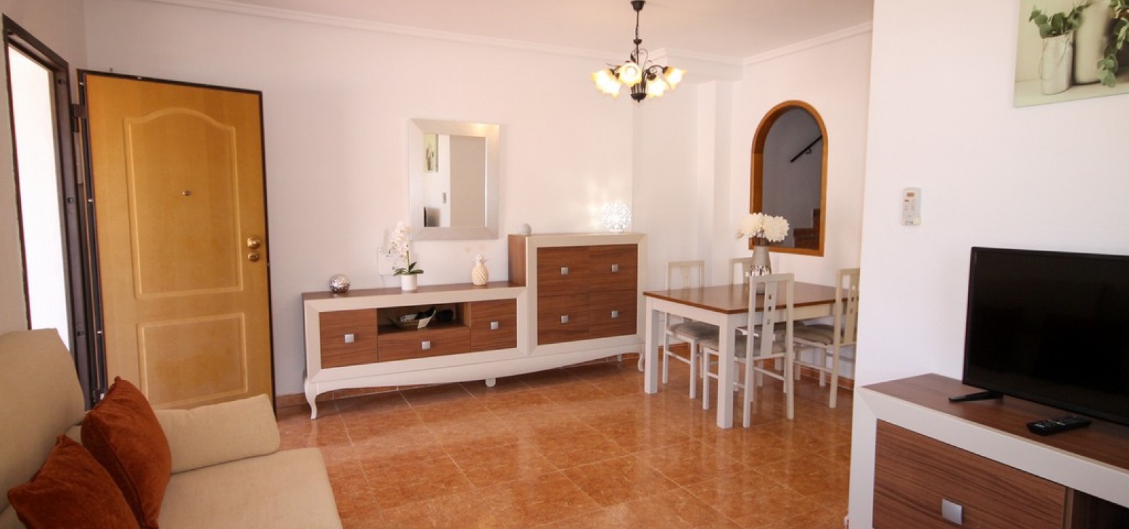 Ett fyrbäddshus med 3 sovrum och 2 badrum med privat takterrass med solarium i Dream Hills, Los Altos, Costa Blanca. Denna härliga fastighet säljs i mycket gott skick, säljs möblerad och består mycket kortfattat av följande:- På bottenvåningen finns ett rymligt vardagsrum/matrum med varm och kall luftkonditionering, nyligen utrustat öppet separat kök, 1 x dubbelrum med inbyggda garderober, 1 x nymonterat duschrum och en täckt terrass på framsidan. På första våningen finns det största dubbelrum med inbyggda garderober, varm och kall luftkonditionering och en altandörr som leder till balkong, 1 x dubbelrum med inbyggda garderober, 1 x nymonterat duschrum och privat takterrass. Utanför finns en trädgård med en uppfart för off-road parkering, härlig gemensam pool mittemot fastigheten och mycket mycket mer. Denna fastighet ligger cirka 3 km från stränderna Playa Flamenca och Punta Prima och bara 35 minuter från Murcia Corvera flygplats och 45 minuter från Alicantes flygplats. Lokala restauranger, barer, butiker och den lokala busshållplatsen ligger alla inom gångavstånd.