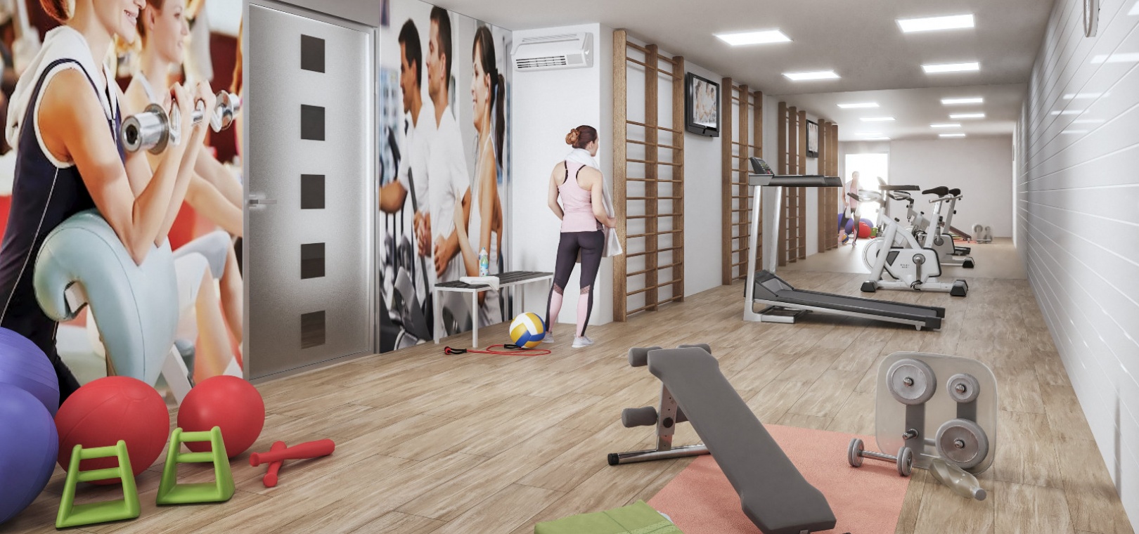 Komplexet har en gemensam pool, ett spa och gym och det finns valfria förråd tillgängliga. Det finns också ett gemensamt solarium.