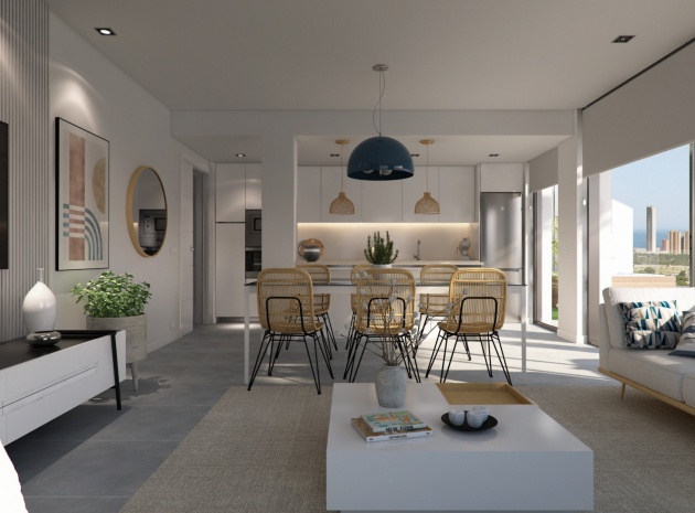 Lyxiga nybyggda lägenheter med 3 sovrum och 2 badrum belägna i Seascape Blue Resort, Benidorm, norra Costa Blanca.