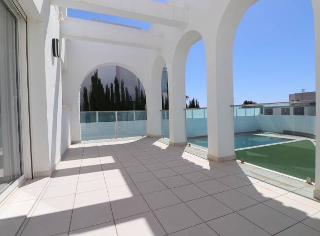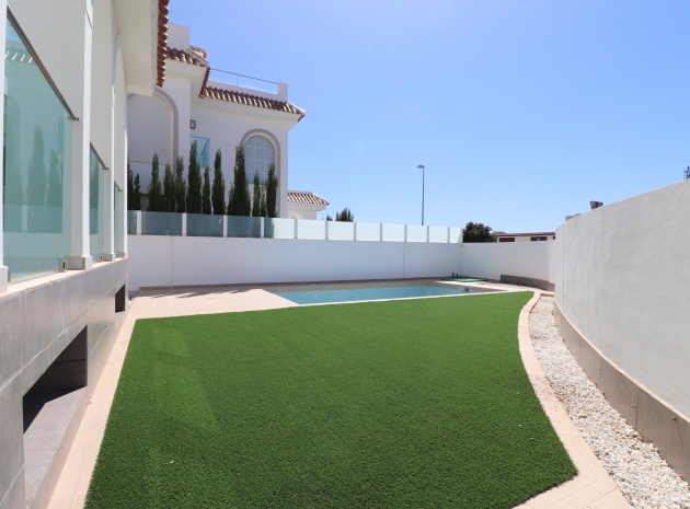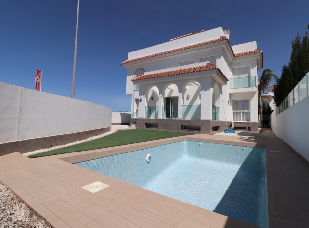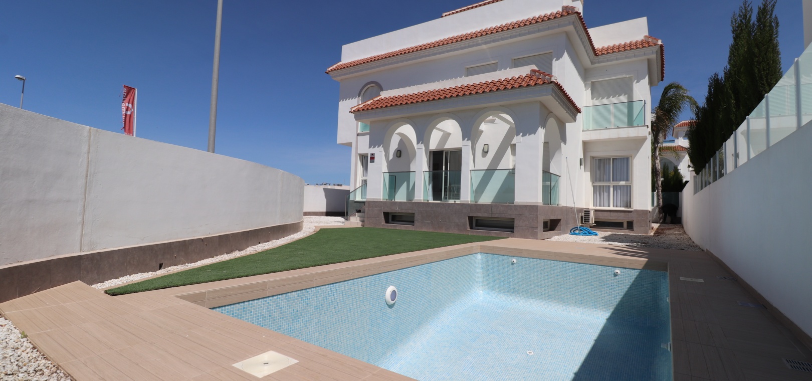 Denna fantastiska, lyxiga hörnvilla i söderläge, med fem sovrum, fristående villa i La Laguna ligger i Ciudad Quesada, nära Pueblo Bravo & La Fiesta. Beläget inom 10 minuters promenad eller 2 minuters bilresa till de närmaste bekvämligheterna och faciliteterna, inklusive stormarknader med huvudvarumärken... Stränderna även vid Guardamar på bara 8 minuters bilresa! Denna fantastiska fastighet består av fyra nivåer, som på bottenvåningen består av ett modernt fullt utrustat kök med öppen planlösning, med en bardisk; vardagsrum/matsal med härlig inredning och finish, och skjutdörrar ut till huvudterrassen, rymlig, perfekt för att äta utomhus, med utsikt över den privata trädgården och den privata poolen; entré hall; ett sovrum på nedervåningen; och ett familjeduschrum. På första våningen finns tre dubbelrum, master med eget badrum + dubbla handfat och en stor garderob/omklädningsrum; och ett andra familjeduschrum. På andra våningen finns ett stort privat solarium, med spektakulär utsikt över hela området, panoramautsikt, med landskap och saltsjöar... Det underbyggda är ett enormt öppet utrymme med massor av potential, för att inkludera ett femte sovrum med egen dusch rum. Utanför finns en trädgård med lågt underhåll, kaklade, grusade och konstgjorda gräs, med off-road parkering för två bilar, en privat pool och gott om plats att koppla av och underhålla! Denna fantastiska möjlighet inkluderar möbler, luftkonditionering överallt och bruksområde på solariet...