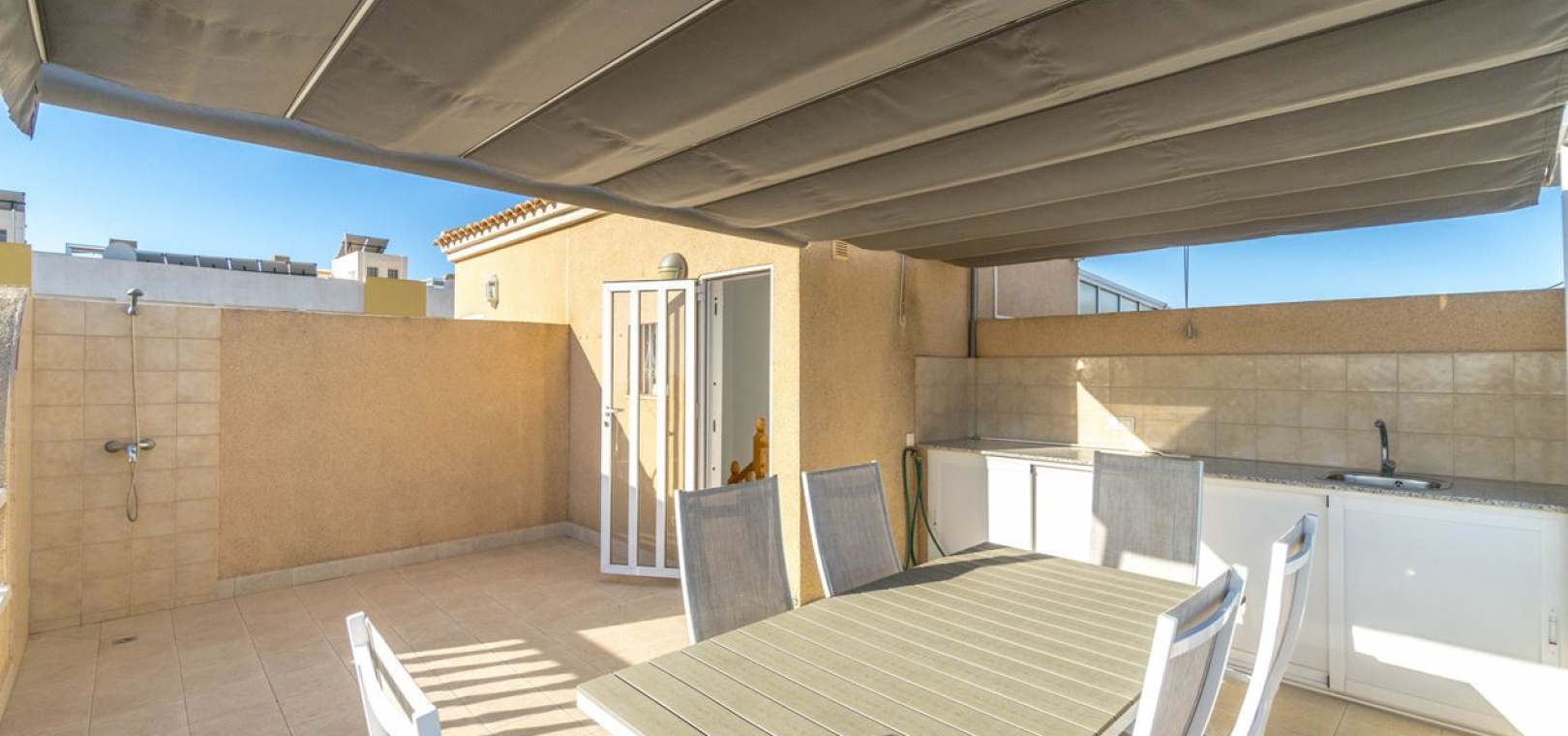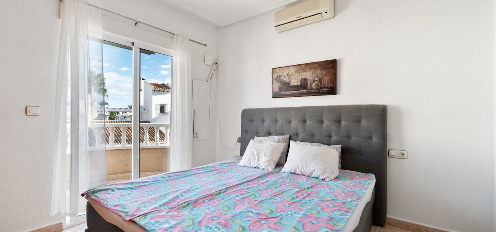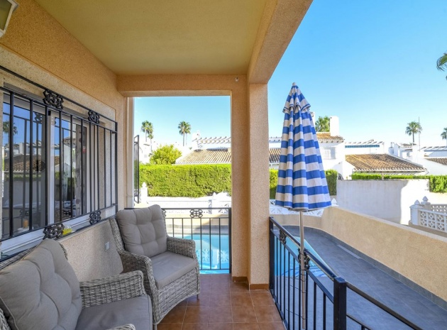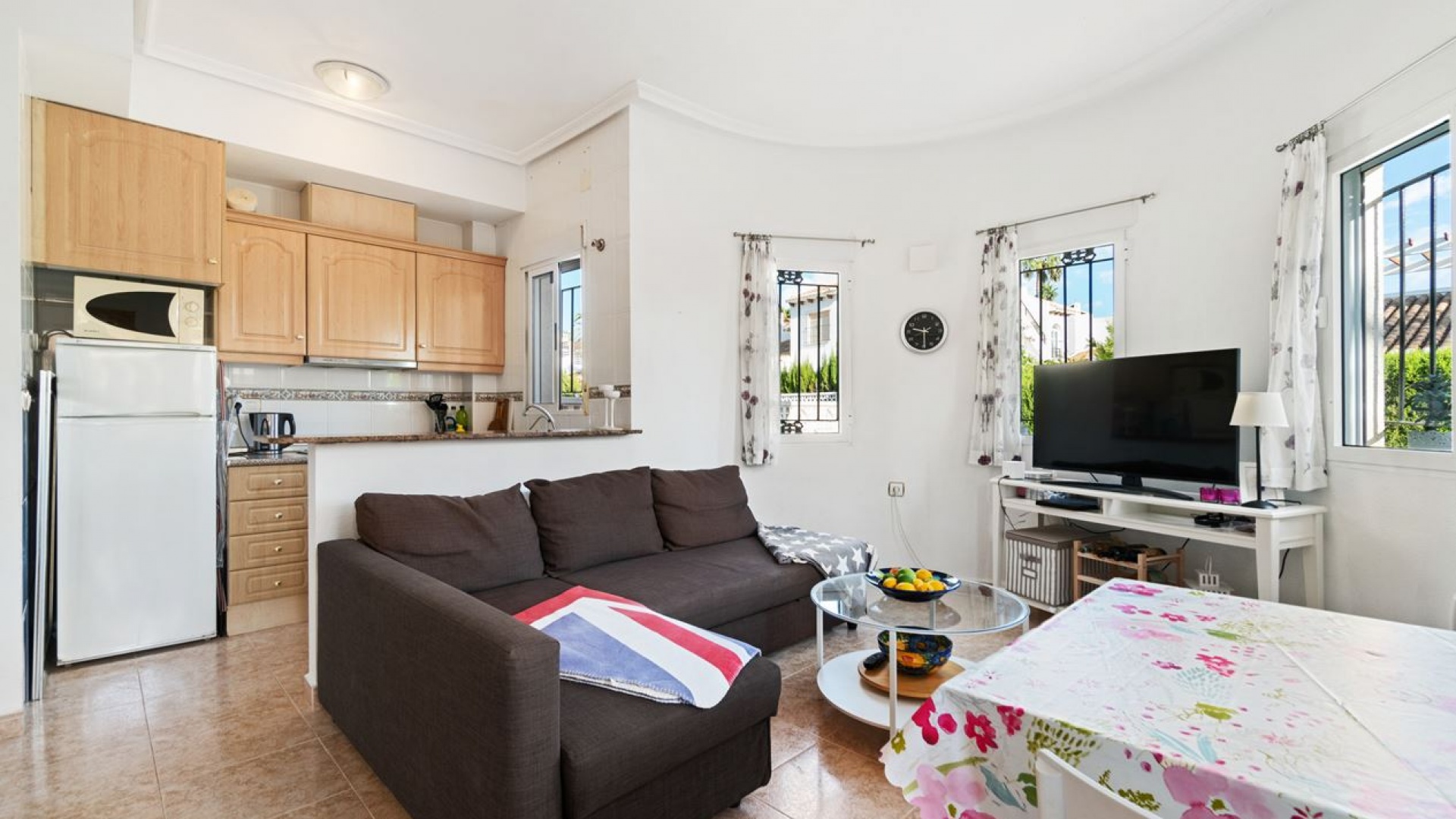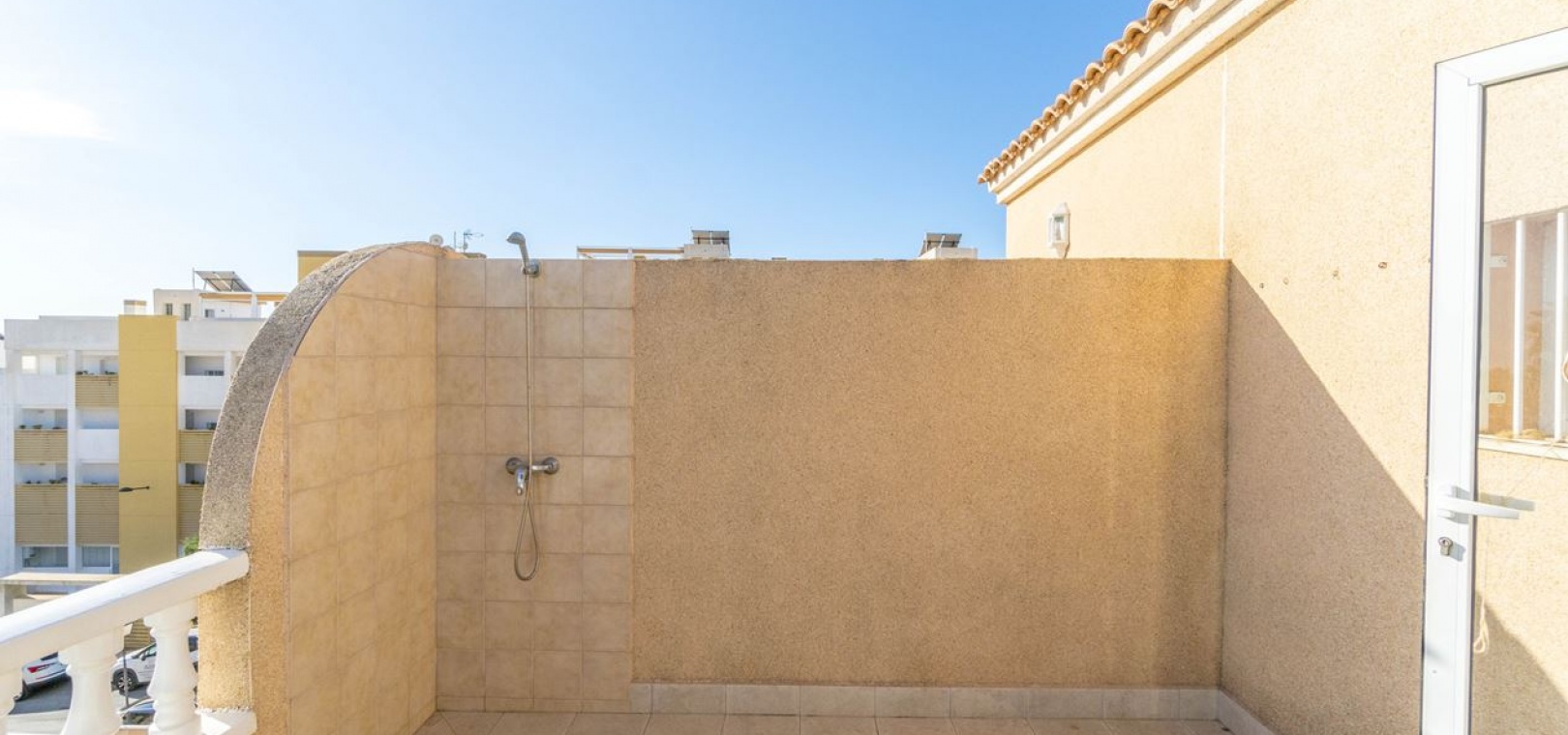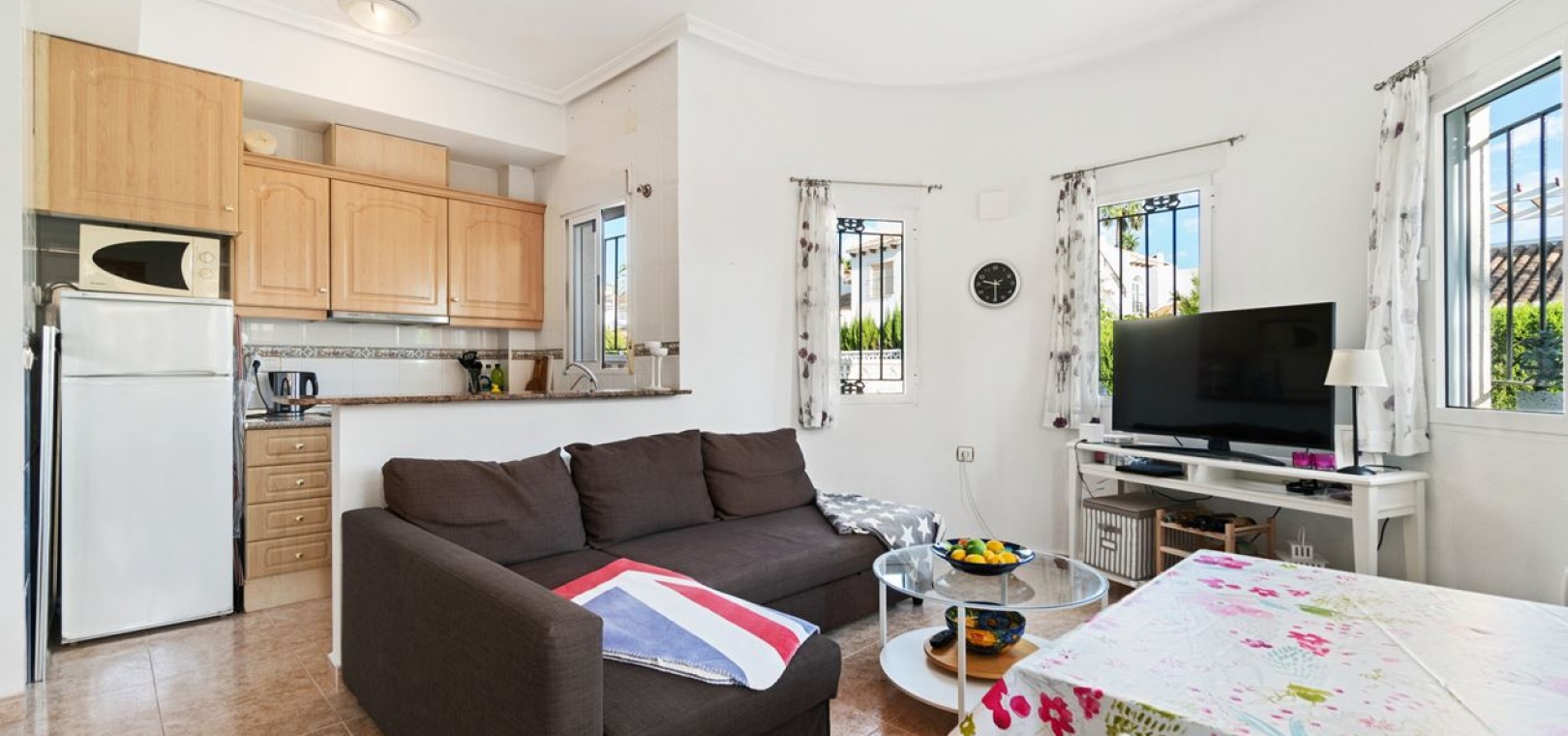 Ett fyrbäddshus med 3 sovrum och 2 badrum med privat pool beläget i La Fuente, Villamartin, Costa Blanca South. Denna härliga fastighet bjuds ut till försäljning i gott skick och består mycket kortfattat av följande: - På bottenvåningen finns ett vardagsrum/matsal med varm och kall luftkonditionering, ett fullt utrustat kök med öppen planlösning, 1 x sovrum och 1 x duschrum. Interna trappor leder till första våningen där det finns 2 x dubbelrum, båda med inbyggda garderober och varm och kall A/C, det största sovrummet har en privat balkong och 1 x familjebadrum. Från första våningen leder en inre trappa upp till solariet på taket som har underbar utsikt över det omgivande området. Utanför finns en täckt terrass och en privat pool. Lokala barer ligger bara 2 minuters promenad bort och snabbköpet Mercadona ligger bara 5 minuters promenad bort. La Fuente kommersiella centrum som har många barer, butiker, restauranger, stormarknader etc ligger bara 10 minuters promenad bort. Bussar och taxi stannar precis utanför La Fuente. Stränderna Golden Orihuela Costa ligger bara 5 minuters bilresa bort eller så kan du hoppa på lokalbussen. Det finns 4 golfbanor alla inom 5 minuters bilresa från denna fastighet och Alicantes flygplats ligger 50 minuter bort.