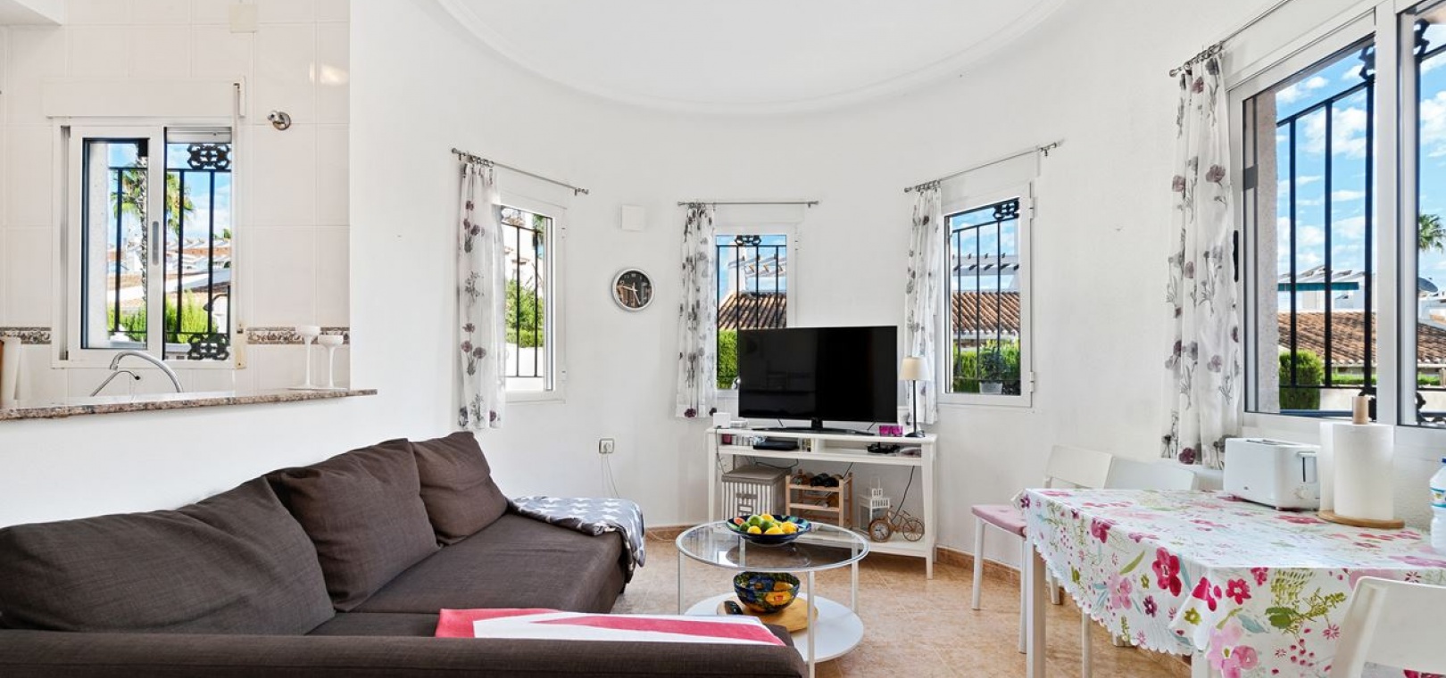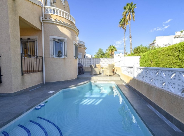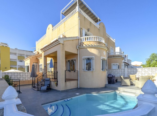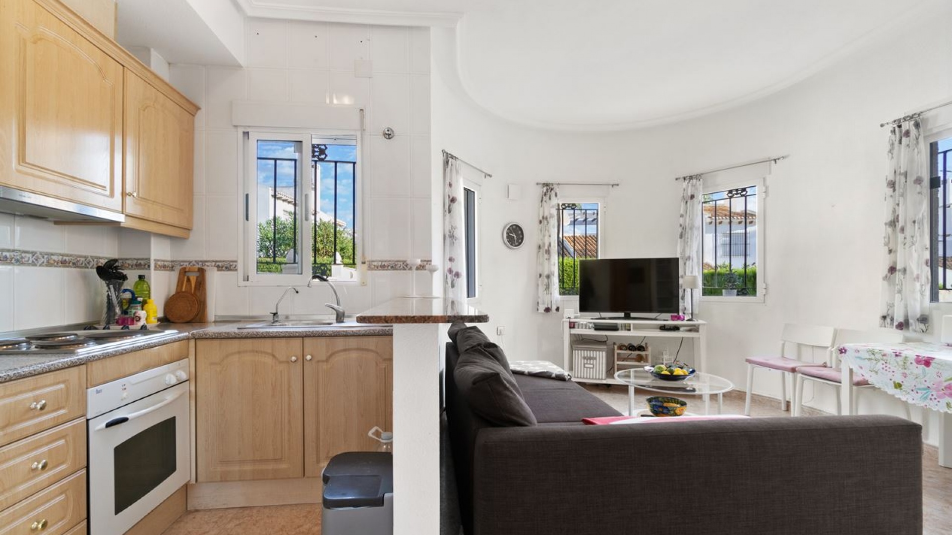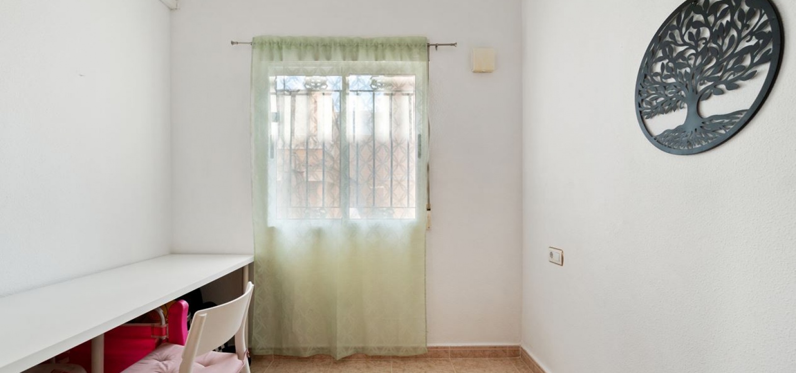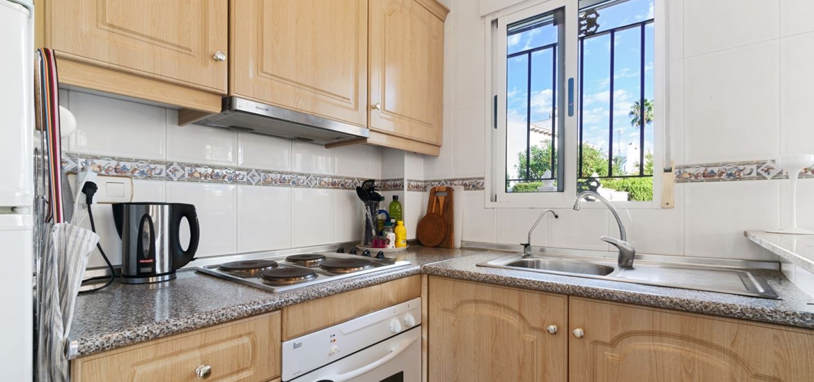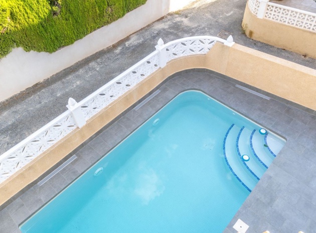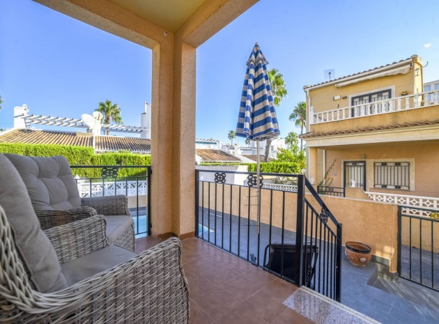 Ett fyrbäddshus med 3 sovrum och 2 badrum med privat pool beläget i La Fuente, Villamartin, Costa Blanca South. Denna härliga fastighet bjuds ut till försäljning i gott skick och består mycket kortfattat av följande: - På bottenvåningen finns ett vardagsrum/matsal med varm och kall luftkonditionering, ett fullt utrustat kök med öppen planlösning, 1 x sovrum och 1 x duschrum. Interna trappor leder till första våningen där det finns 2 x dubbelrum, båda med inbyggda garderober och varm och kall A/C, det största sovrummet har en privat balkong och 1 x familjebadrum. Från första våningen leder en inre trappa upp till solariet på taket som har underbar utsikt över det omgivande området. Utanför finns en täckt terrass och en privat pool. Lokala barer ligger bara 2 minuters promenad bort och snabbköpet Mercadona ligger bara 5 minuters promenad bort. La Fuente kommersiella centrum som har många barer, butiker, restauranger, stormarknader etc ligger bara 10 minuters promenad bort. Bussar och taxi stannar precis utanför La Fuente. Stränderna Golden Orihuela Costa ligger bara 5 minuters bilresa bort eller så kan du hoppa på lokalbussen. Det finns 4 golfbanor alla inom 5 minuters bilresa från denna fastighet och Alicantes flygplats ligger 50 minuter bort.