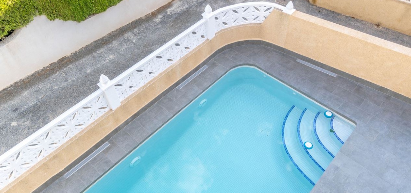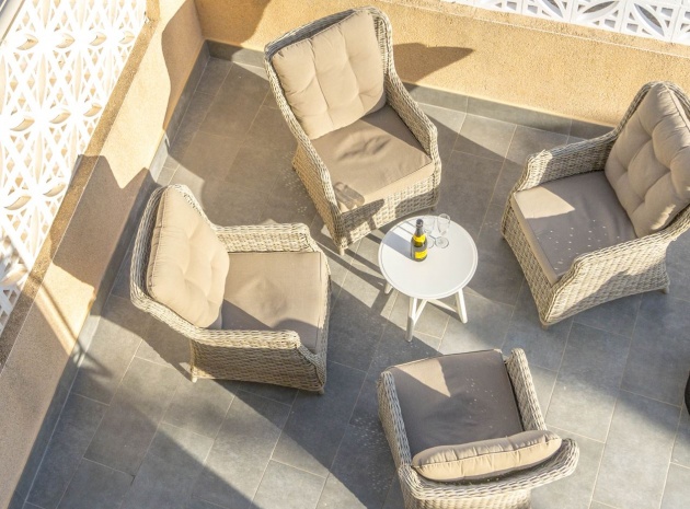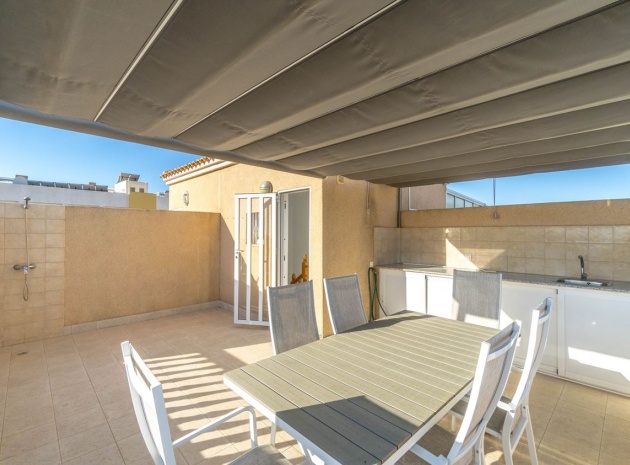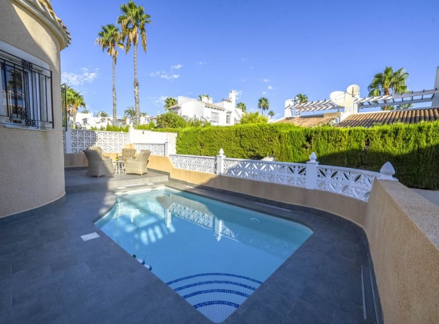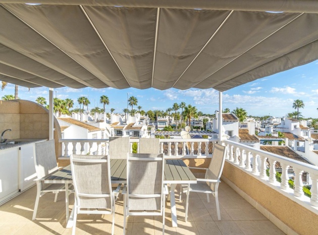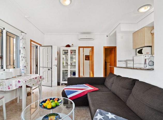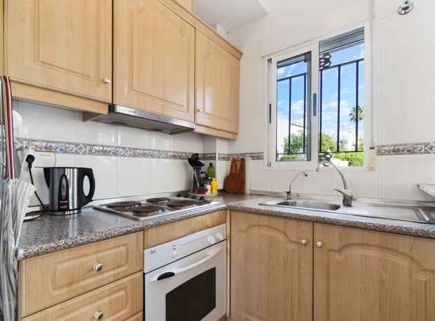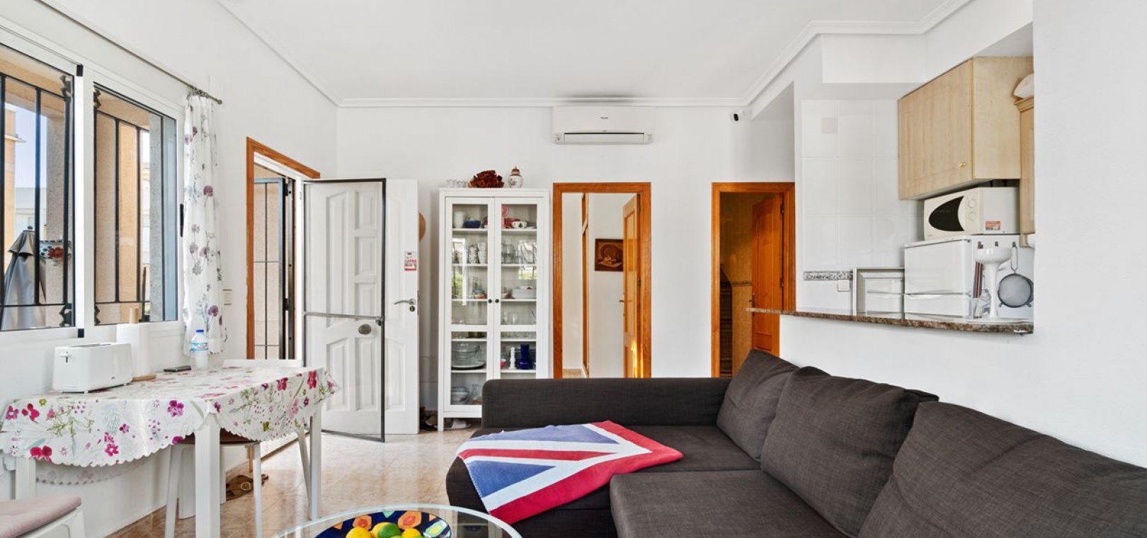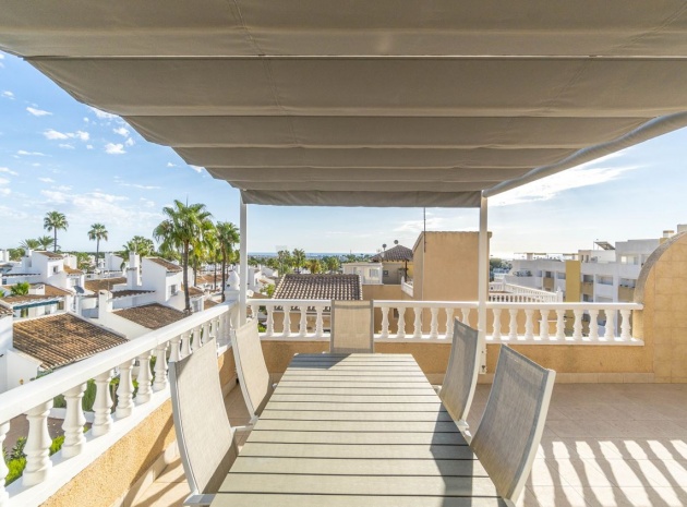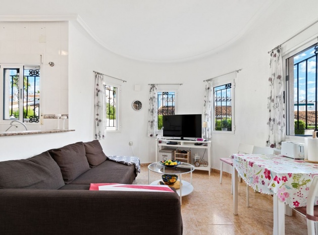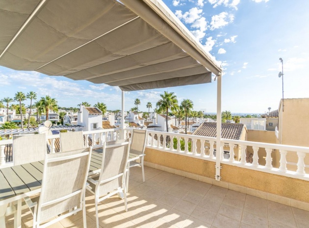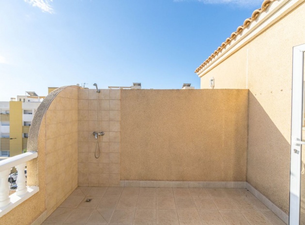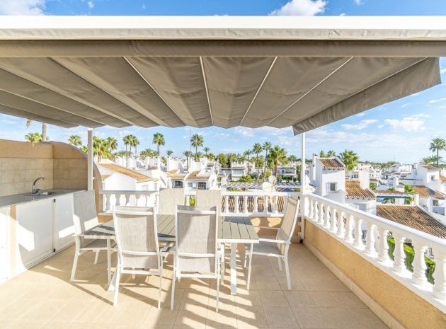 Ett fyrbäddshus med 3 sovrum och 2 badrum med privat pool beläget i La Fuente, Villamartin, Costa Blanca South. Denna härliga fastighet bjuds ut till försäljning i gott skick och består mycket kortfattat av följande: - På bottenvåningen finns ett vardagsrum/matsal med varm och kall luftkonditionering, ett fullt utrustat kök med öppen planlösning, 1 x sovrum och 1 x duschrum. Interna trappor leder till första våningen där det finns 2 x dubbelrum, båda med inbyggda garderober och varm och kall A/C, det största sovrummet har en privat balkong och 1 x familjebadrum. Från första våningen leder en inre trappa upp till solariet på taket som har underbar utsikt över det omgivande området. Utanför finns en täckt terrass och en privat pool. Lokala barer ligger bara 2 minuters promenad bort och snabbköpet Mercadona ligger bara 5 minuters promenad bort. La Fuente kommersiella centrum som har många barer, butiker, restauranger, stormarknader etc ligger bara 10 minuters promenad bort. Bussar och taxi stannar precis utanför La Fuente. Stränderna Golden Orihuela Costa ligger bara 5 minuters bilresa bort eller så kan du hoppa på lokalbussen. Det finns 4 golfbanor alla inom 5 minuters bilresa från denna fastighet och Alicantes flygplats ligger 50 minuter bort.