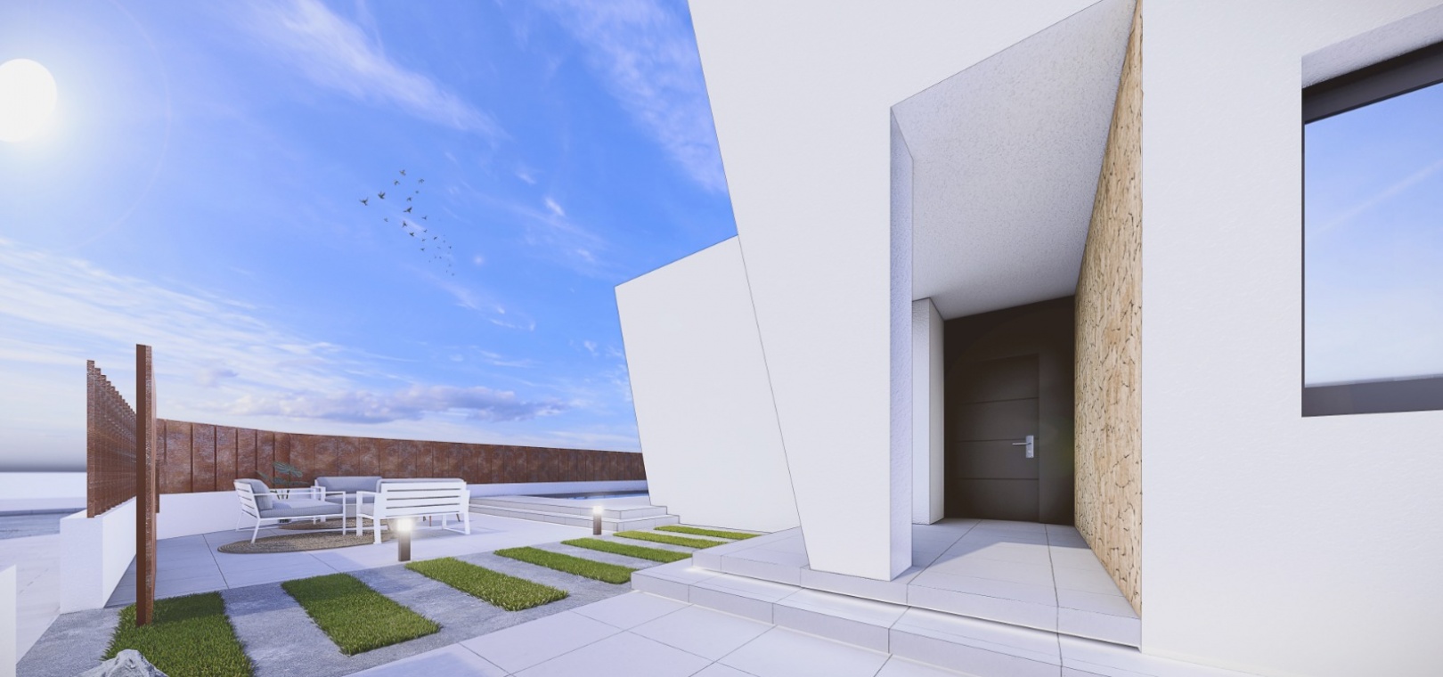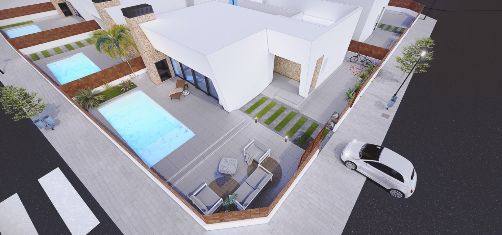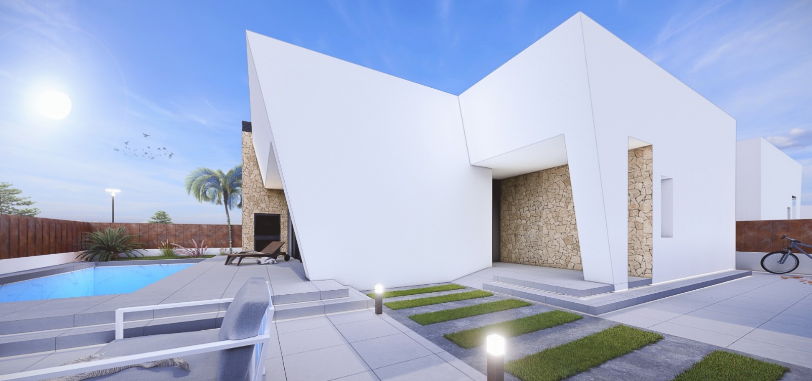 Nybyggd modern design 3 sovrum 2 badrum fristående villor med privat pool belägna i Res. Sunset Villa Lux i den vackra kuststaden San Pedro, Mar Menor, Murcia.