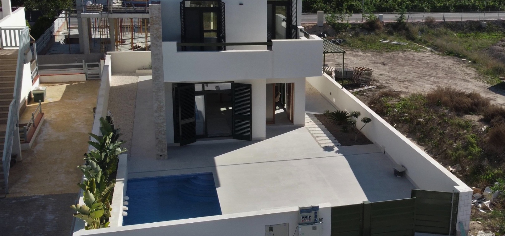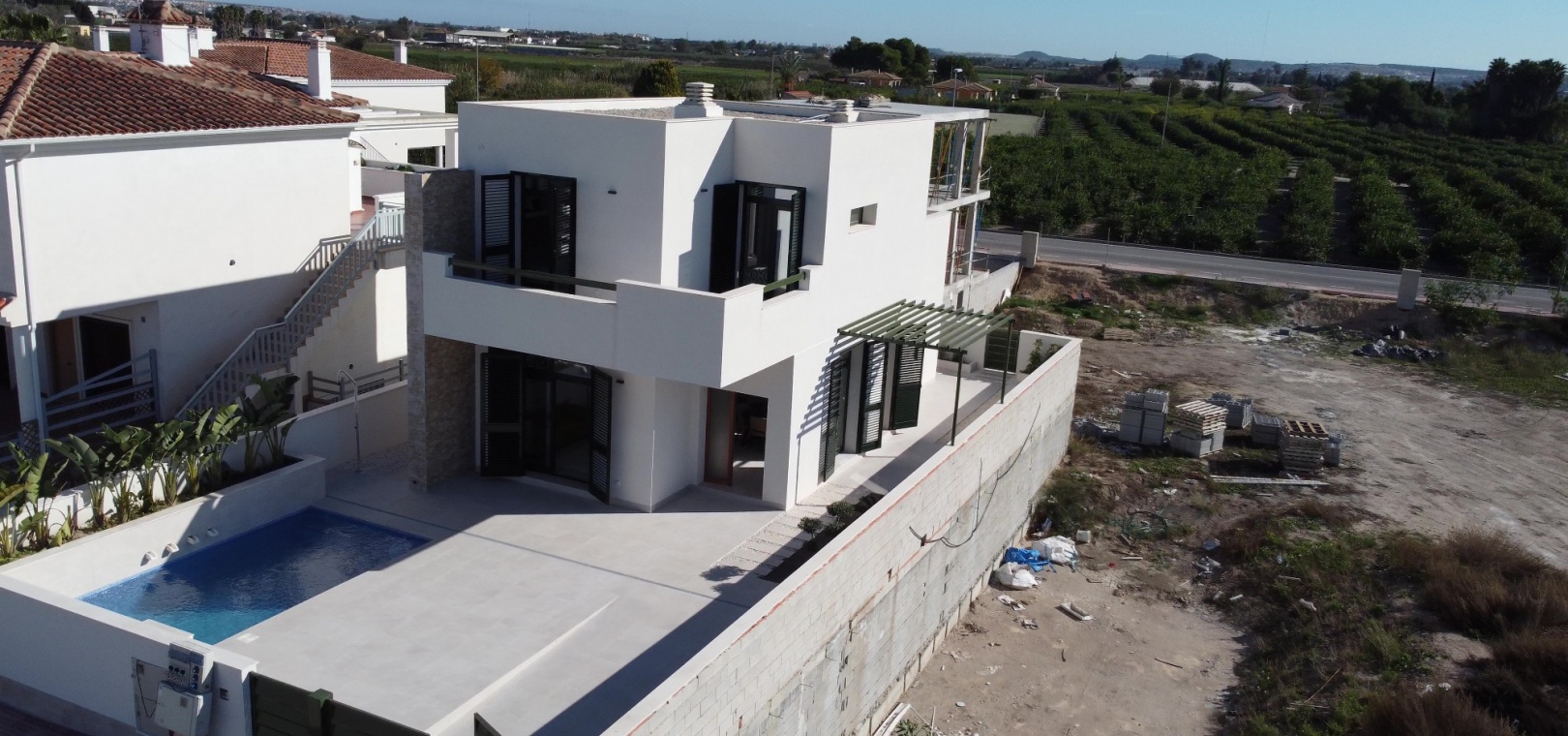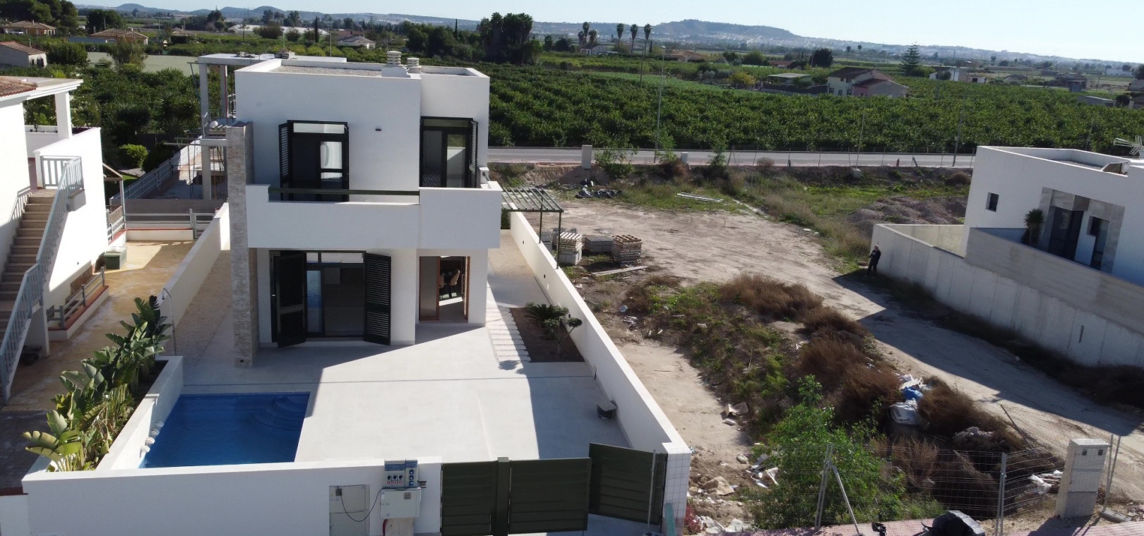 Nybyggda fristående villor med 3 sovrum och 3,5 badrum i modern stil med privata pooler i Res. The Olive Collection, Daya Nueva, Costa Blanca South.
