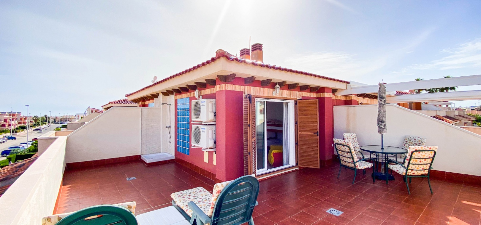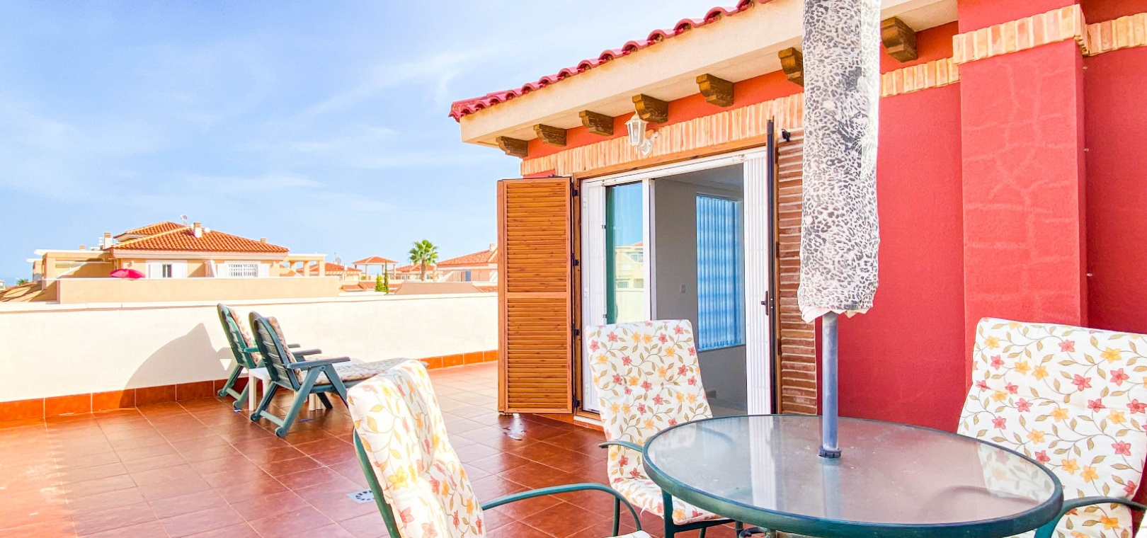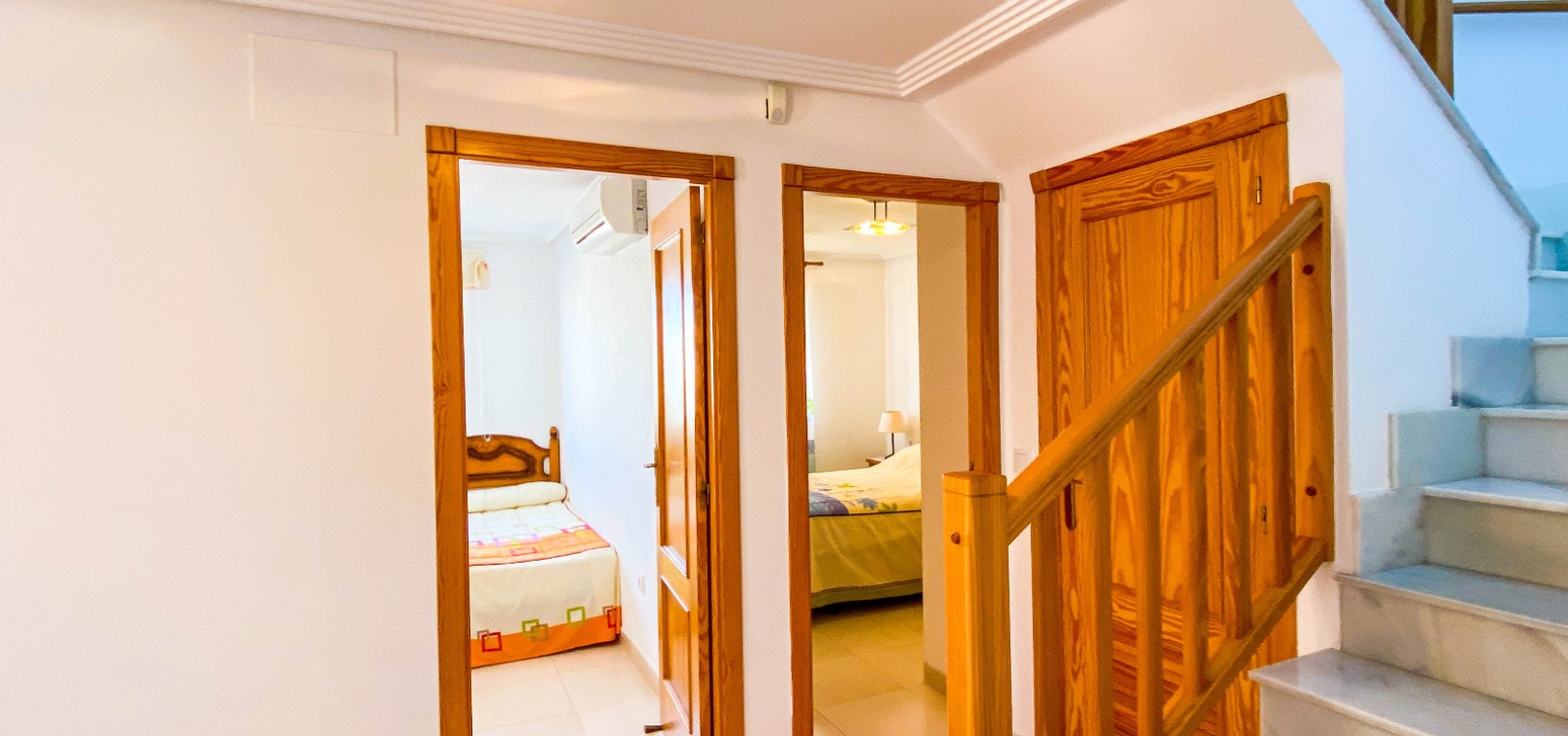 Interna marmortrappor tar dig upp till översta våningen där du hittar ett rum, ett tredje sovrum, 1x badrum och altandörrar ut till det privata solariet på taket.