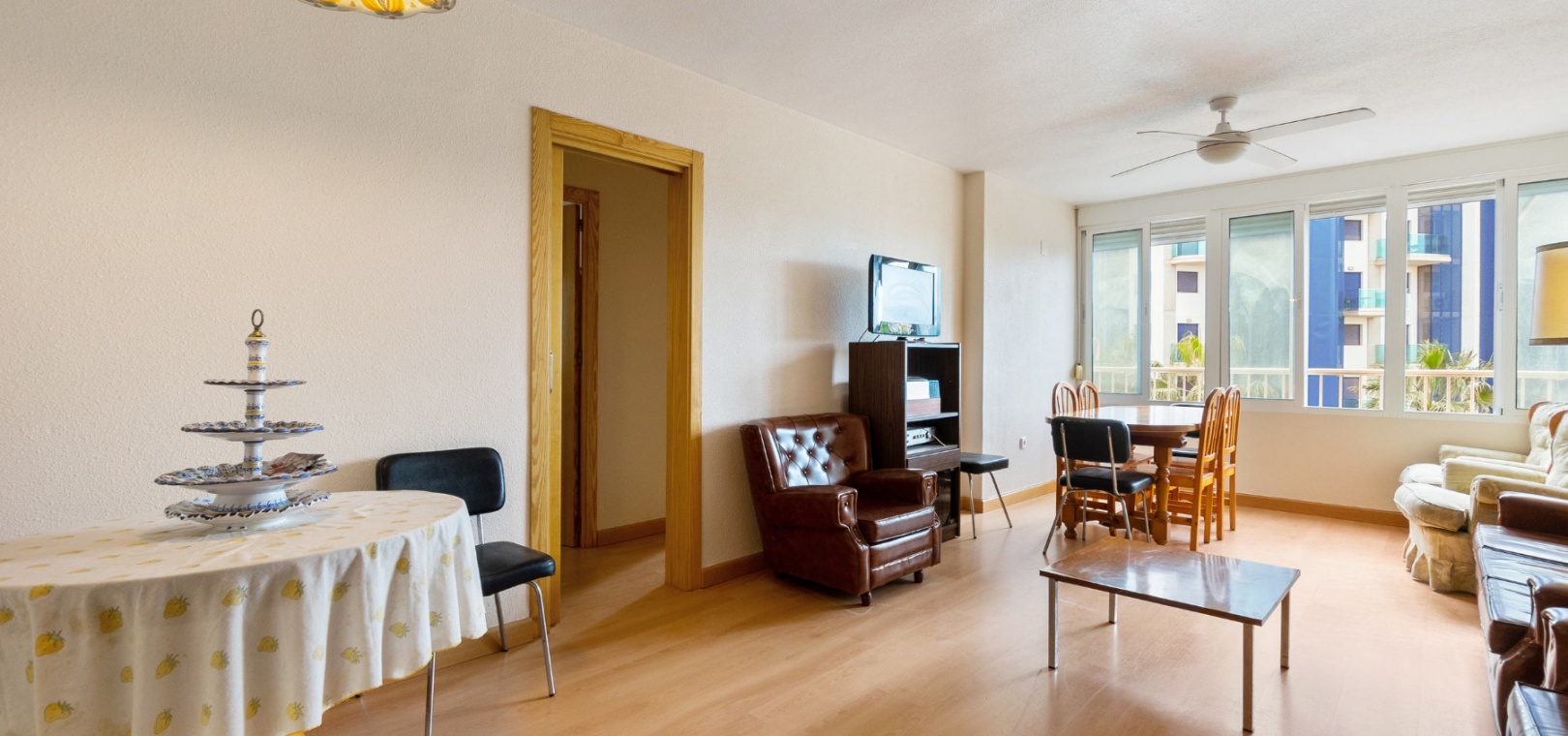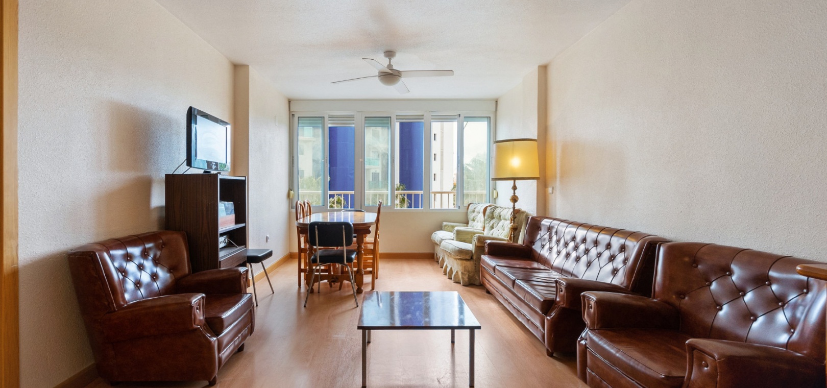 Denna härliga lägenhet säljs i gott skick, fullt möblerad och består mycket kortfattat av följande:-