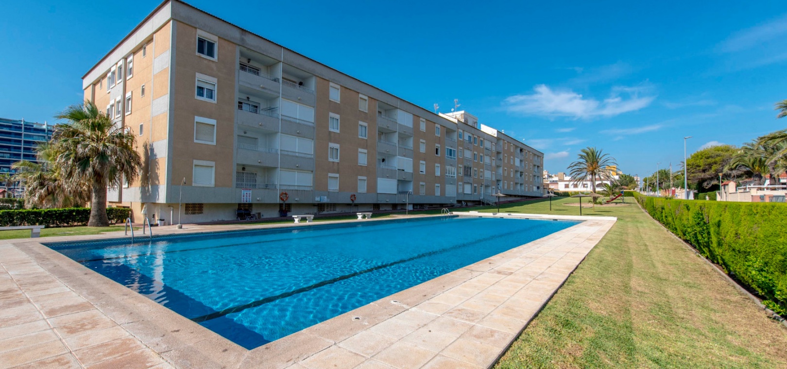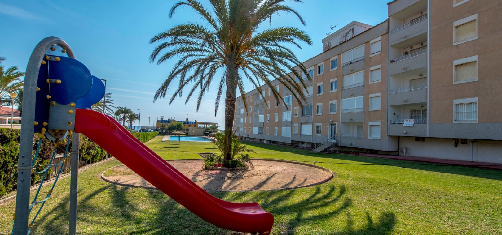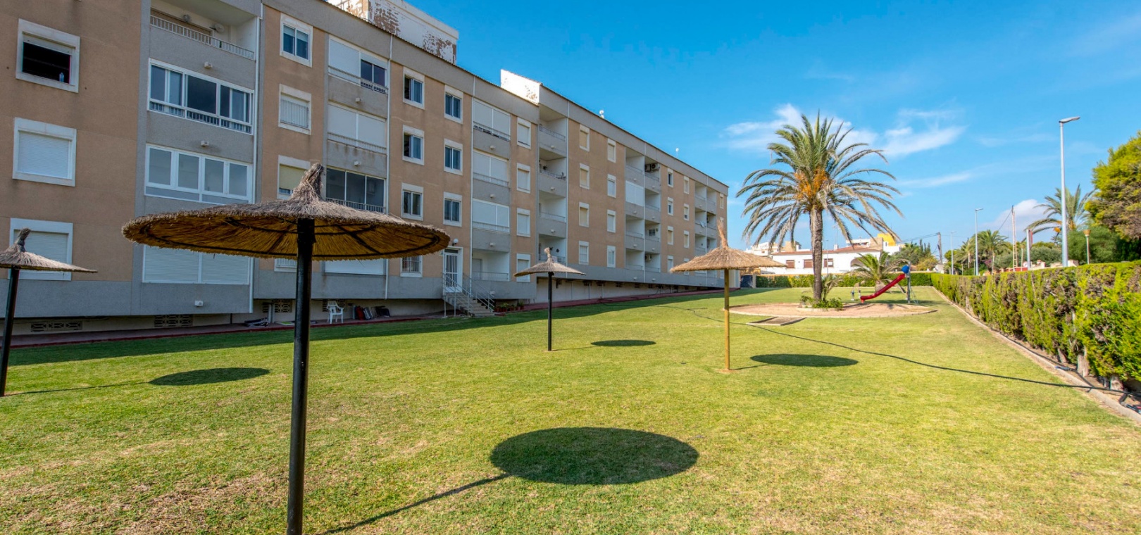 Denna fantastiska fastighet ligger mindre än 10 minuters promenad från Punta Marinas kommersiella centrum där du hittar många barer, butiker och restauranger och sedan är det bara 50 meter till stranden. Denna fastighet ligger 10 minuters bilresa från 4 mästerskapsgolfbanor och 45 minuter från Alicantes flygplats.
