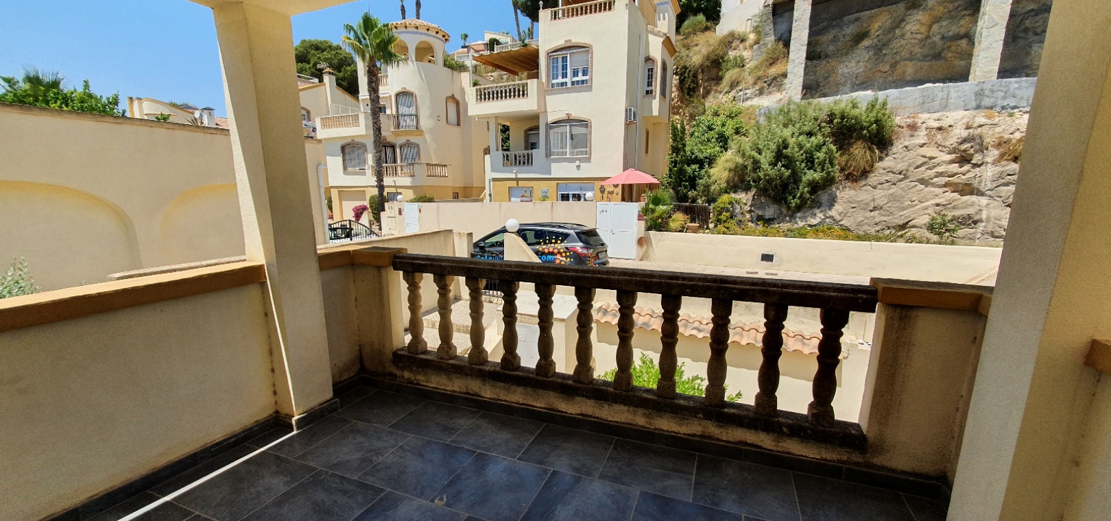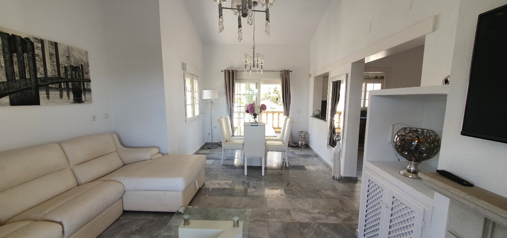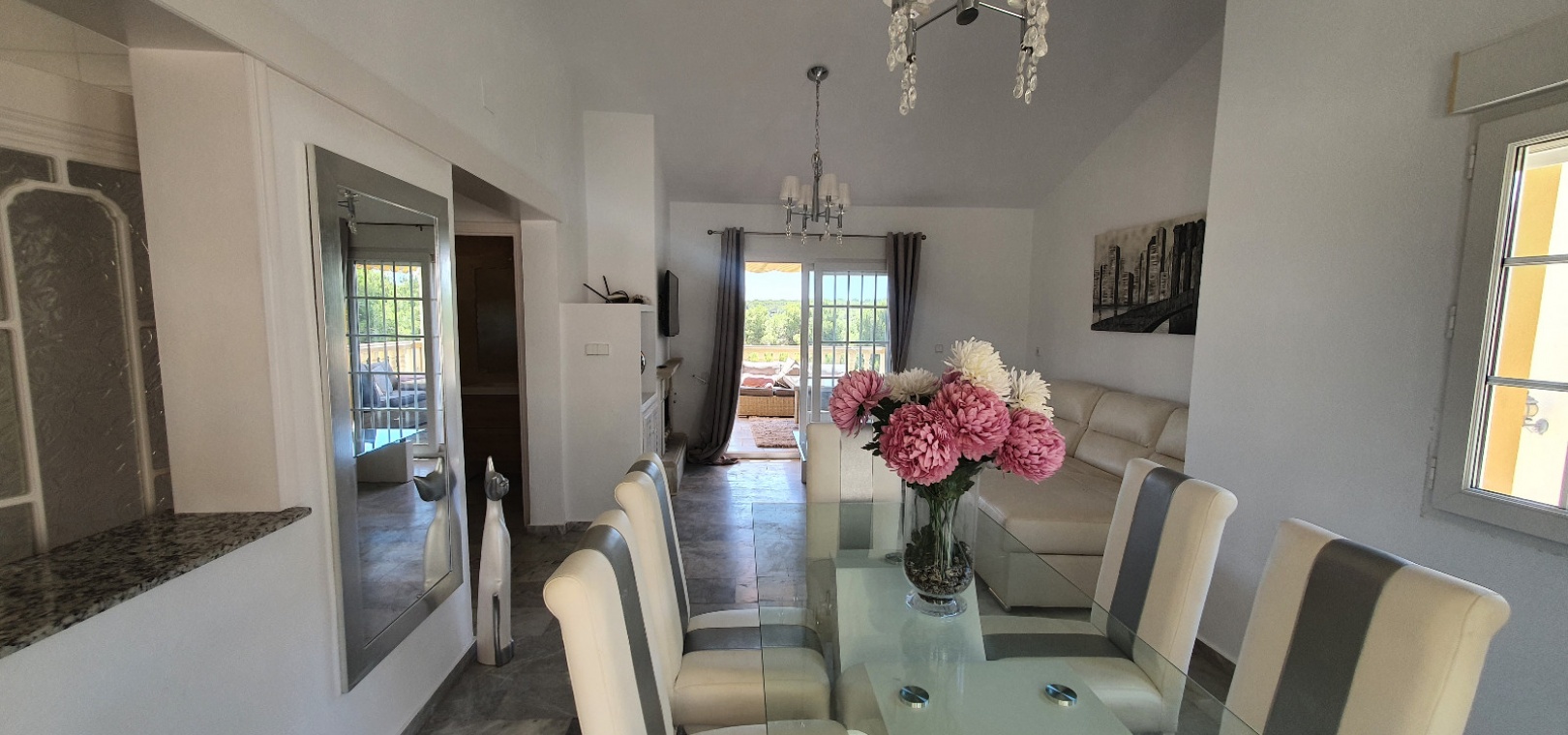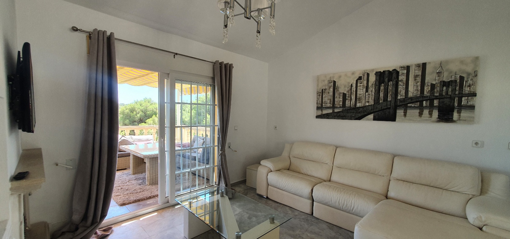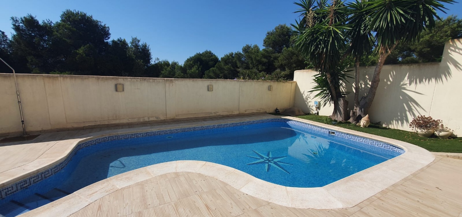 En fristående villa med 5 bäddar och 3,5 badrum med privat pool 1:a raden till den vackra golfbanan Las Ramblas, Villamartin, Costa Blanca South. Denna rymliga fastighet av hög kvalitet bjuds ut till försäljning i gott skick, delvis möblerad och består mycket kortfattat av följande:- Belägen på en lugn återvändsgränd, ligger denna villa på en stor tomt med lågt underhåll. In genom gångporten till vänster är en uppfart med plats för flera bilar och tillgång till det helt slutna garaget. På bottenvåningen finns 3 x dubbelrum med inbyggda garderober, det största sovrummet har ett eget badrum och altandörrar som tar dig ner till poolområdet. Det finns också ett familjebadrum. Interna trappor tar dig upp till första våningen där det finns ett mycket rymligt och ljust vardagsrum/matsal med en öppen spis och altandörrar som leder vidare till den stora bakre balkongen med en solmarkis och fantastisk utsikt. Från balkongen finns det trappsteg upp till ett litet solarium på taket. Det finns också altandörrar som leder ut till den främre balkongen. Det finns också en dörr som öppnar upp till trappsteg som tar dig ner till poolområdet. På första våningen hittar du också ett rymligt fullt utrustat oberoende kök och ett grovkök / förråd med toalett. Det finns en stor fristående källare med en lounge, ett öppet kök, 2 x dubbelrum, 1 x duschrum och ett förråd. Utanför fastigheten finns en stor tomt med en stor kaklad terrass runt den stora privata poolen. Från terrassen runt poolen kan du nå garaget och ett litet underbyggt förråd. Denna fastighet har gas centralvärme. Denna härliga fastighet ligger bara några minuter från klubbhuset och restaurangen och mindre än 20 minuters promenad från La Fuentes kommersiella centrum där du hittar många barer och restauranger, snabbköp, apotek, banker, en taxistation och den lokala busshållplatsen. De gyllene stränderna Orihuela Costa ligger mindre än 10 minuters bilresa bort, liksom köpcentret Zenia Boulevard. Alicantes flygplats ligger 50 minuters bilresa bort och Murcia Corvera flygplats ligger 35 minuters bilresa bort.