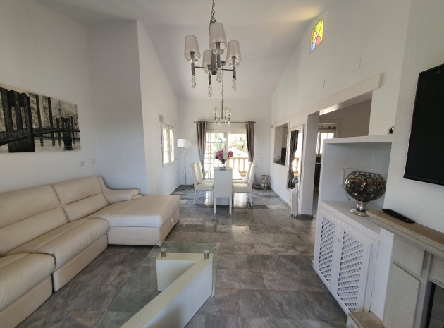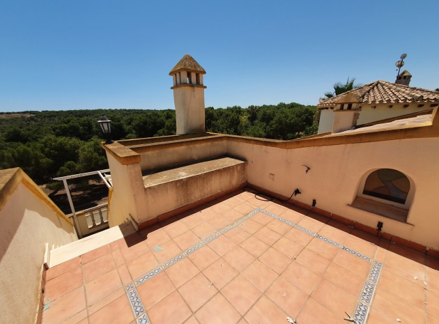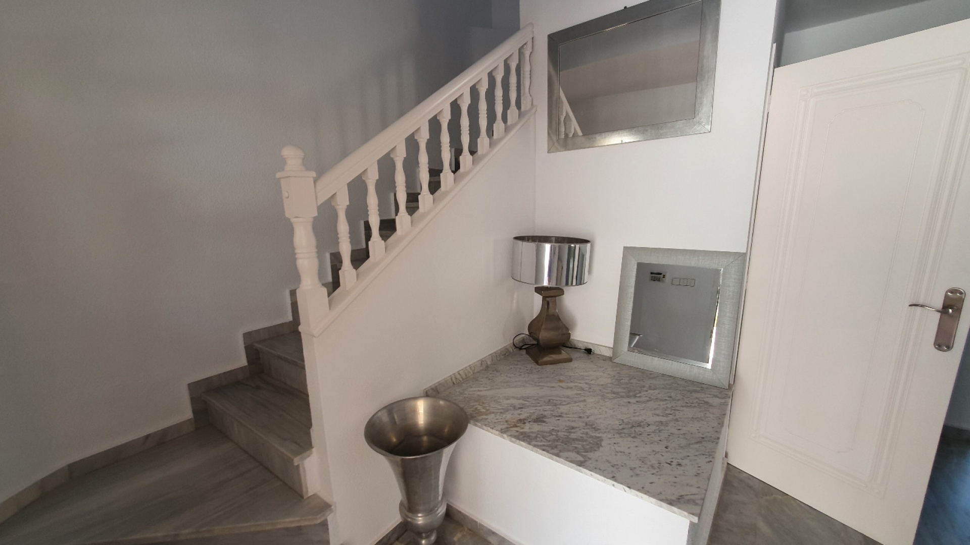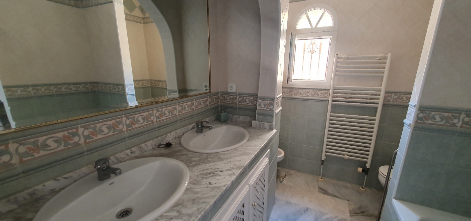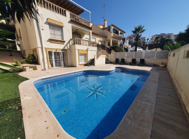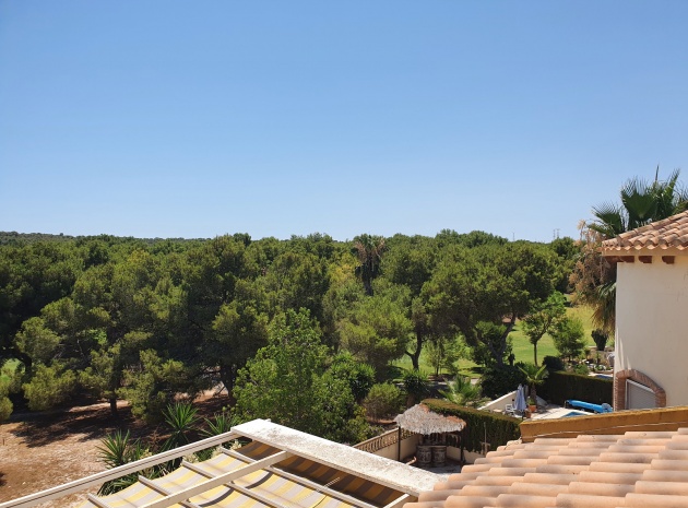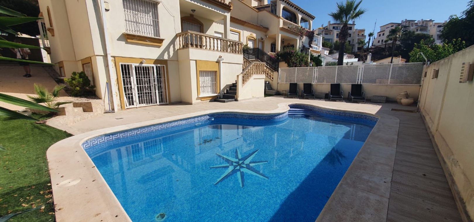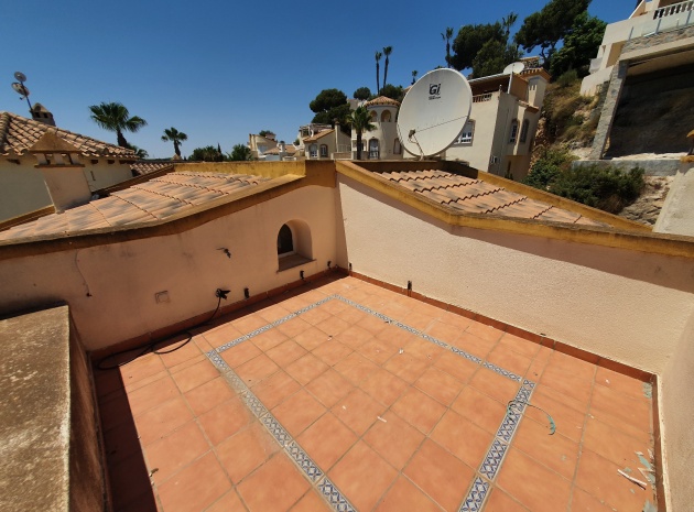 En fristående villa med 5 bäddar och 3,5 badrum med privat pool 1:a raden till den vackra golfbanan Las Ramblas, Villamartin, Costa Blanca South. Denna rymliga fastighet av hög kvalitet bjuds ut till försäljning i gott skick, delvis möblerad och består mycket kortfattat av följande:- Belägen på en lugn återvändsgränd, ligger denna villa på en stor tomt med lågt underhåll. In genom gångporten till vänster är en uppfart med plats för flera bilar och tillgång till det helt slutna garaget. På bottenvåningen finns 3 x dubbelrum med inbyggda garderober, det största sovrummet har ett eget badrum och altandörrar som tar dig ner till poolområdet. Det finns också ett familjebadrum. Interna trappor tar dig upp till första våningen där det finns ett mycket rymligt och ljust vardagsrum/matsal med en öppen spis och altandörrar som leder vidare till den stora bakre balkongen med en solmarkis och fantastisk utsikt. Från balkongen finns det trappsteg upp till ett litet solarium på taket. Det finns också altandörrar som leder ut till den främre balkongen. Det finns också en dörr som öppnar upp till trappsteg som tar dig ner till poolområdet. På första våningen hittar du också ett rymligt fullt utrustat oberoende kök och ett grovkök / förråd med toalett. Det finns en stor fristående källare med en lounge, ett öppet kök, 2 x dubbelrum, 1 x duschrum och ett förråd. Utanför fastigheten finns en stor tomt med en stor kaklad terrass runt den stora privata poolen. Från terrassen runt poolen kan du nå garaget och ett litet underbyggt förråd. Denna fastighet har gas centralvärme. Denna härliga fastighet ligger bara några minuter från klubbhuset och restaurangen och mindre än 20 minuters promenad från La Fuentes kommersiella centrum där du hittar många barer och restauranger, snabbköp, apotek, banker, en taxistation och den lokala busshållplatsen. De gyllene stränderna Orihuela Costa ligger mindre än 10 minuters bilresa bort, liksom köpcentret Zenia Boulevard. Alicantes flygplats ligger 50 minuters bilresa bort och Murcia Corvera flygplats ligger 35 minuters bilresa bort.