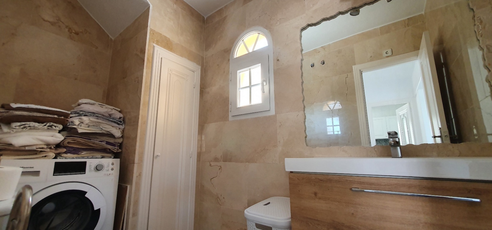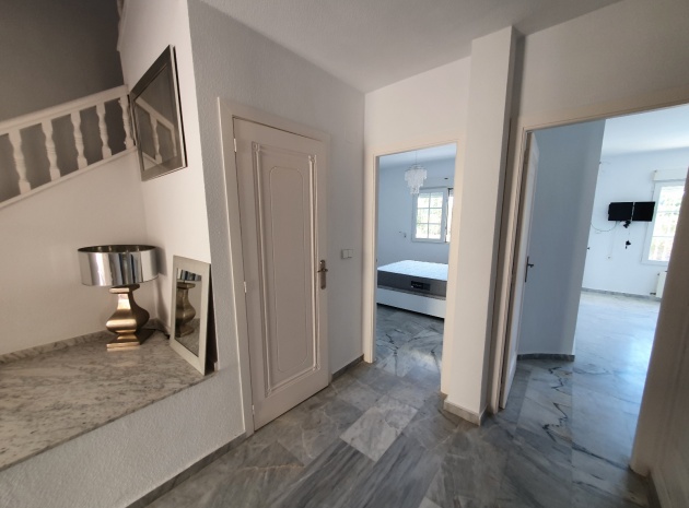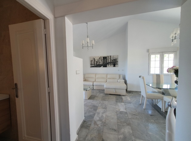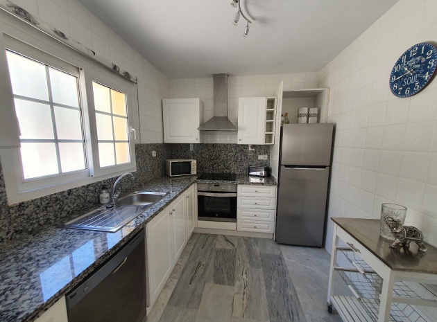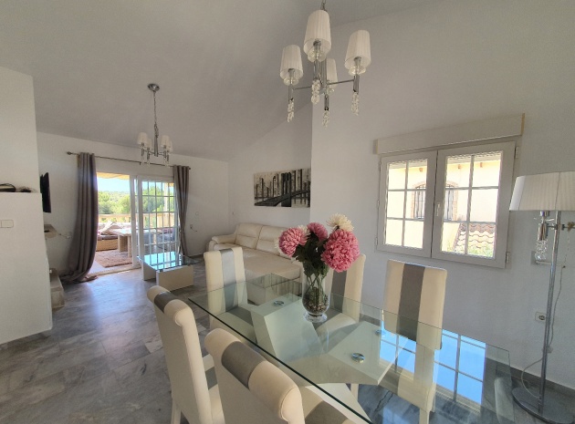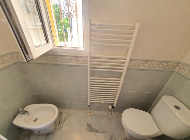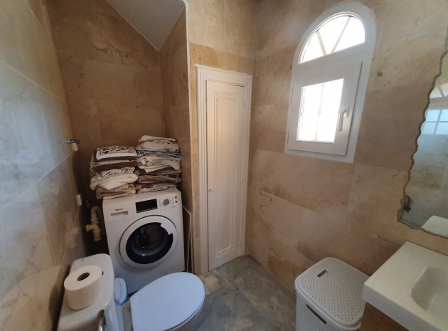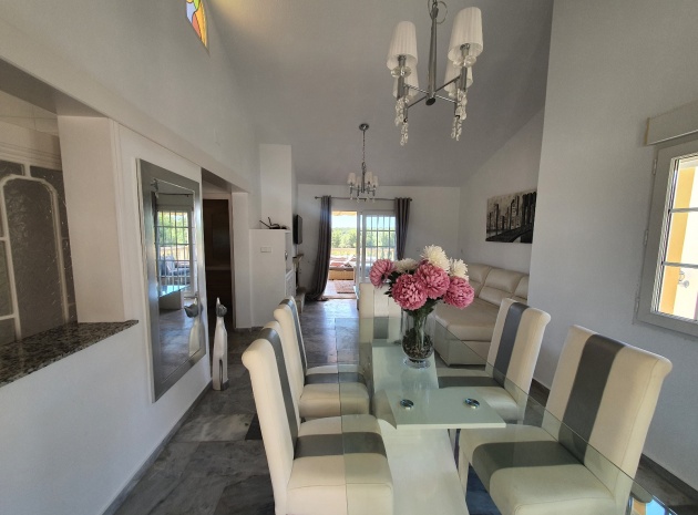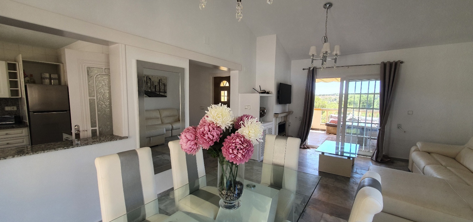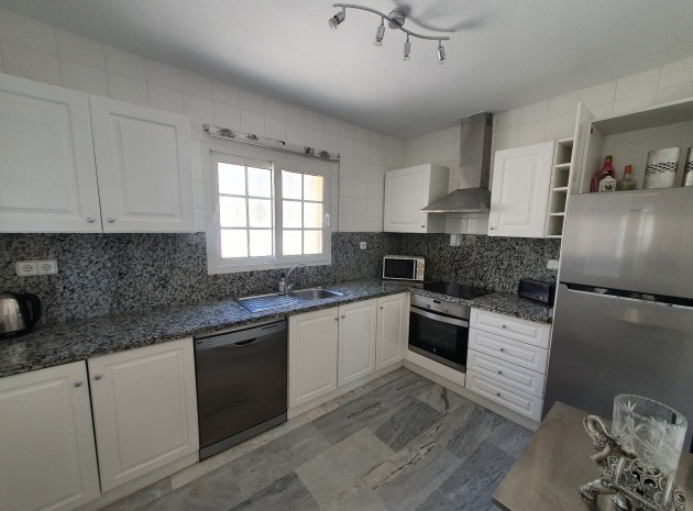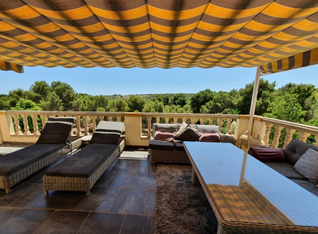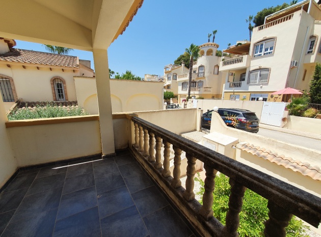 En fristående villa med 5 bäddar och 3,5 badrum med privat pool 1:a raden till den vackra golfbanan Las Ramblas, Villamartin, Costa Blanca South. Denna rymliga fastighet av hög kvalitet bjuds ut till försäljning i gott skick, delvis möblerad och består mycket kortfattat av följande:- Belägen på en lugn återvändsgränd, ligger denna villa på en stor tomt med lågt underhåll. In genom gångporten till vänster är en uppfart med plats för flera bilar och tillgång till det helt slutna garaget. På bottenvåningen finns 3 x dubbelrum med inbyggda garderober, det största sovrummet har ett eget badrum och altandörrar som tar dig ner till poolområdet. Det finns också ett familjebadrum. Interna trappor tar dig upp till första våningen där det finns ett mycket rymligt och ljust vardagsrum/matsal med en öppen spis och altandörrar som leder vidare till den stora bakre balkongen med en solmarkis och fantastisk utsikt. Från balkongen finns det trappsteg upp till ett litet solarium på taket. Det finns också altandörrar som leder ut till den främre balkongen. Det finns också en dörr som öppnar upp till trappsteg som tar dig ner till poolområdet. På första våningen hittar du också ett rymligt fullt utrustat oberoende kök och ett grovkök / förråd med toalett. Det finns en stor fristående källare med en lounge, ett öppet kök, 2 x dubbelrum, 1 x duschrum och ett förråd. Utanför fastigheten finns en stor tomt med en stor kaklad terrass runt den stora privata poolen. Från terrassen runt poolen kan du nå garaget och ett litet underbyggt förråd. Denna fastighet har gas centralvärme. Denna härliga fastighet ligger bara några minuter från klubbhuset och restaurangen och mindre än 20 minuters promenad från La Fuentes kommersiella centrum där du hittar många barer och restauranger, snabbköp, apotek, banker, en taxistation och den lokala busshållplatsen. De gyllene stränderna Orihuela Costa ligger mindre än 10 minuters bilresa bort, liksom köpcentret Zenia Boulevard. Alicantes flygplats ligger 50 minuters bilresa bort och Murcia Corvera flygplats ligger 35 minuters bilresa bort.