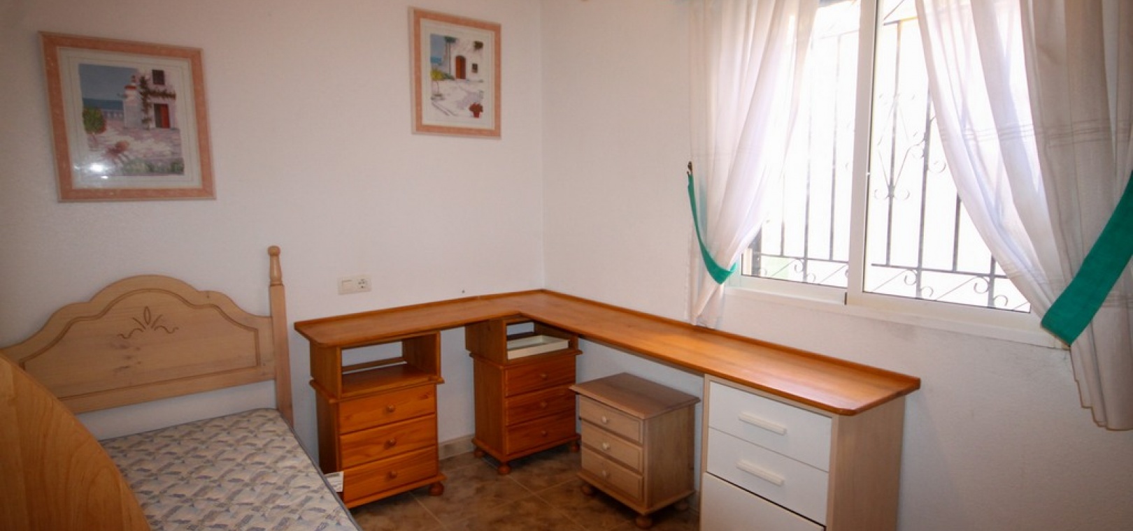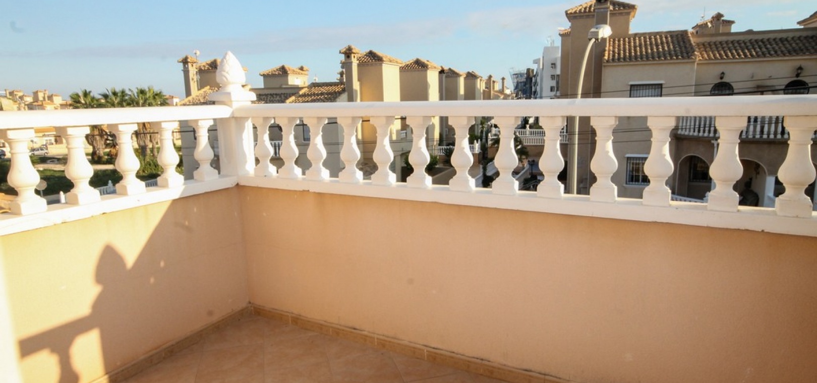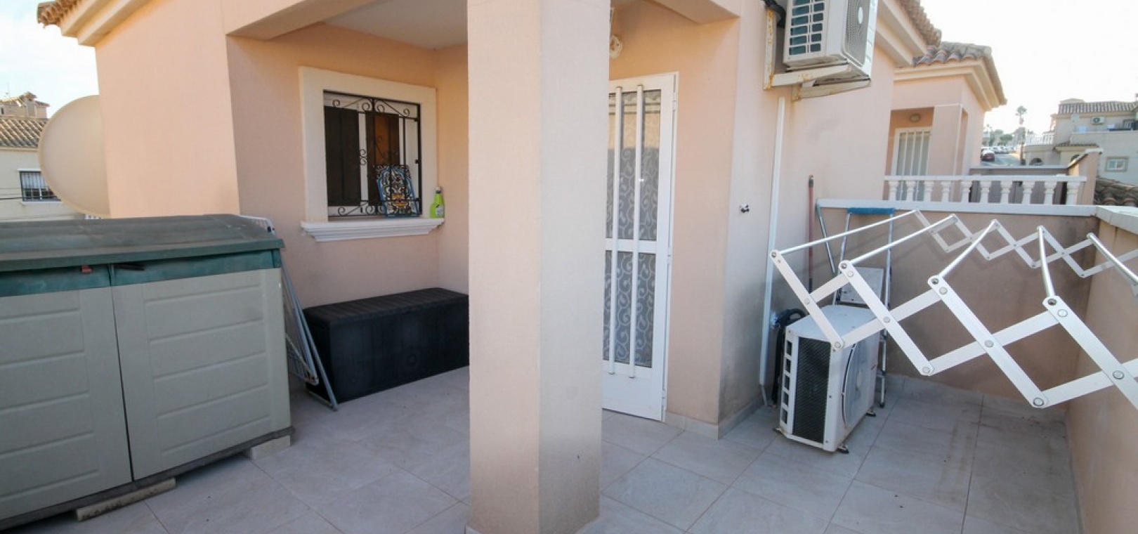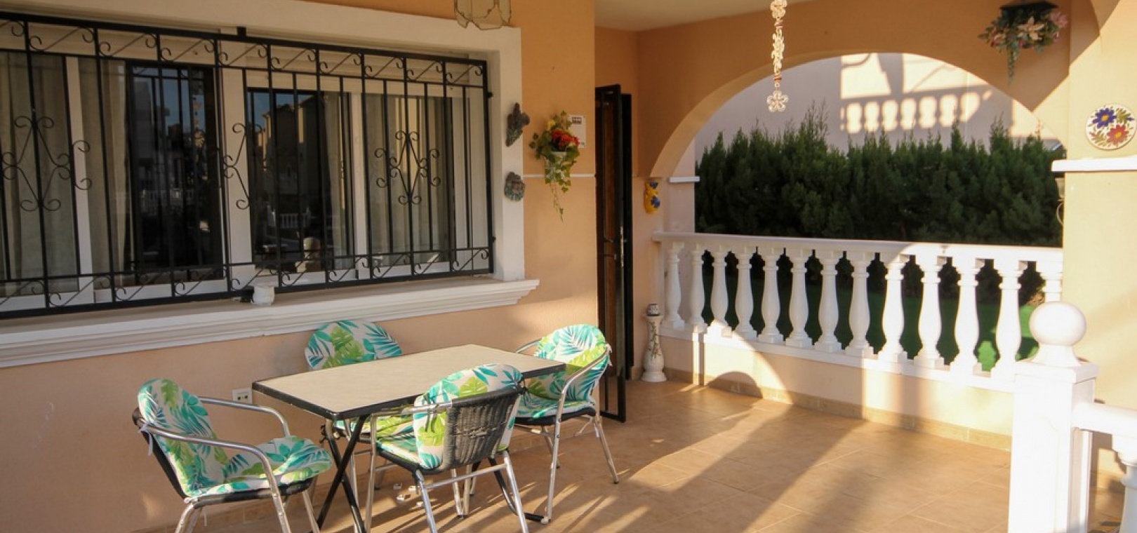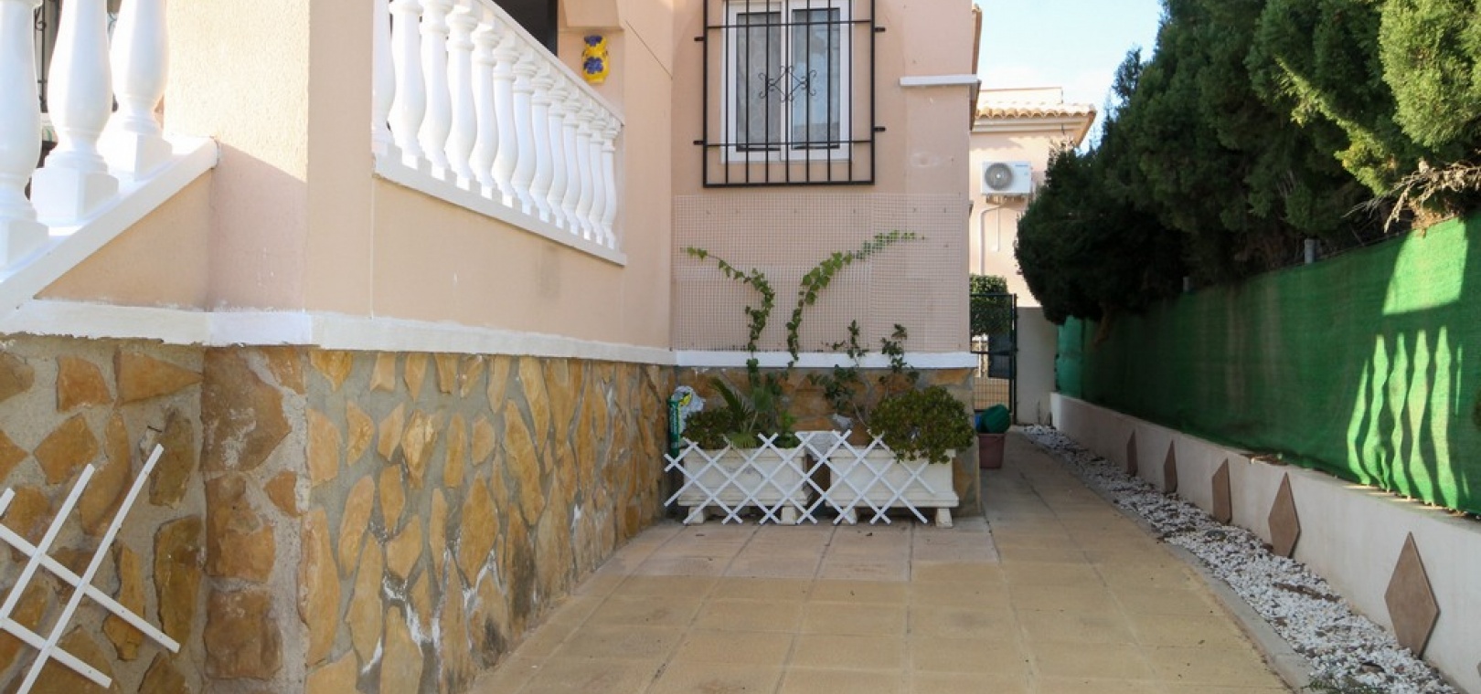 En fristående villa med 3 sovrum och 2 badrum i söderläge i El Galan, Villamartin, Costa Blanca. Denna rymliga fastighet ligger i ett litet samhälle med bara 12 villor, bjuds ut till försäljning i gott skick men behöver lite TLC, säljs delvis möblerad och består mycket kortfattat av följande: - På bottenvåningen finns en lounge/matsal, kök i öppen planlösning, under trappskåp, 2 x dubbelrum med inbyggda garderober och 1 x duschrum. På första våningen finns det största sovrummet med inbyggda garderober, ett eget badrum och en privat balkong, det finns också en balkong på baksidan. Utanför finns en terrass på framsidan, trädgård med lågt underhåll med uppfart för off-road parkering, gemensam simning och mycket mer. Denna fastighet ligger bara en kort promenad till alla bekvämligheter, 5 minuter med bil till stranden La Zenia eller så kan du hoppa på lokalbussen, Mindre än 5 minuter med bil till 4 golfbanor och 50 minuter till Alicantes flygplats.