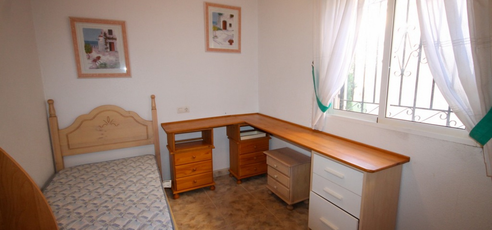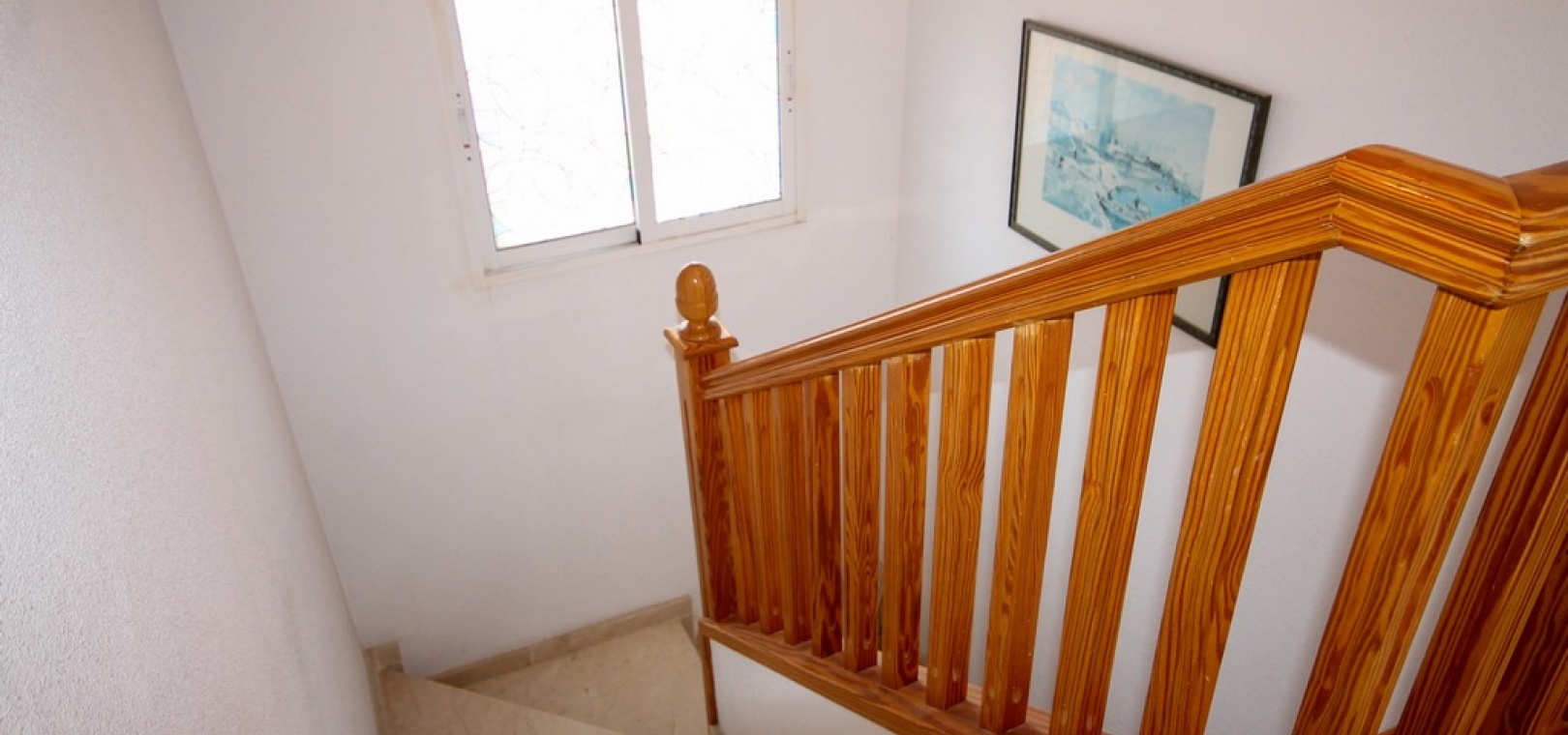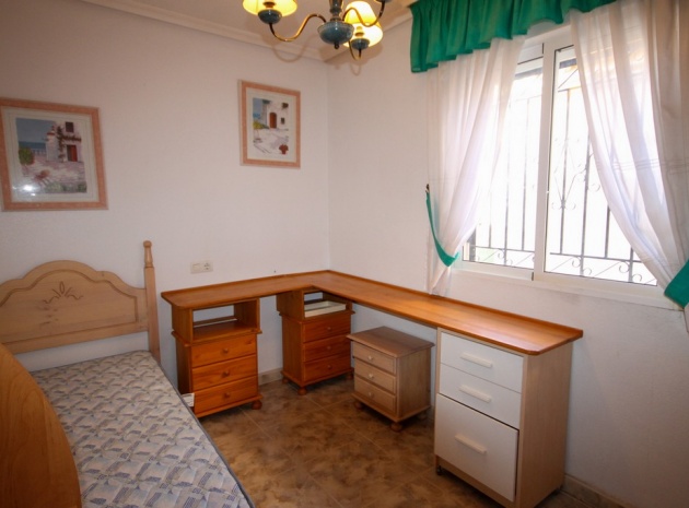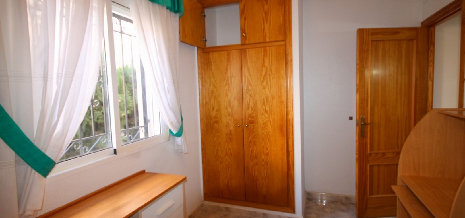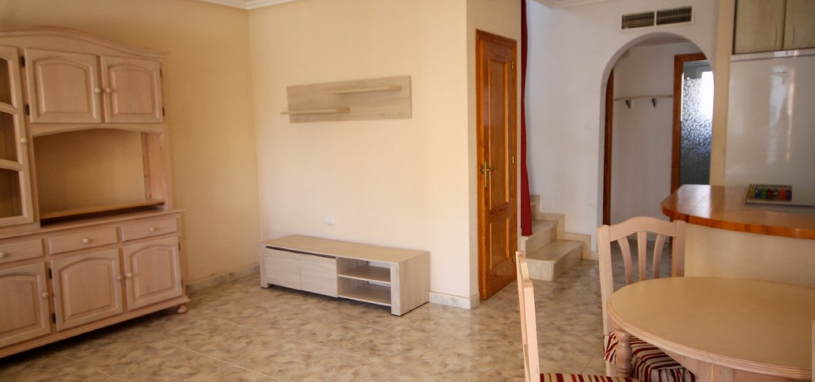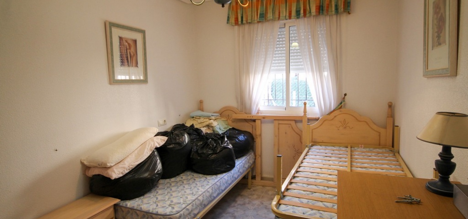 En fristående villa med 3 sovrum och 2 badrum i söderläge i El Galan, Villamartin, Costa Blanca. Denna rymliga fastighet ligger i ett litet samhälle med bara 12 villor, bjuds ut till försäljning i gott skick men behöver lite TLC, säljs delvis möblerad och består mycket kortfattat av följande: - På bottenvåningen finns en lounge/matsal, kök i öppen planlösning, under trappskåp, 2 x dubbelrum med inbyggda garderober och 1 x duschrum. På första våningen finns det största sovrummet med inbyggda garderober, ett eget badrum och en privat balkong, det finns också en balkong på baksidan. Utanför finns en terrass på framsidan, trädgård med lågt underhåll med uppfart för off-road parkering, gemensam simning och mycket mer. Denna fastighet ligger bara en kort promenad till alla bekvämligheter, 5 minuter med bil till stranden La Zenia eller så kan du hoppa på lokalbussen, Mindre än 5 minuter med bil till 4 golfbanor och 50 minuter till Alicantes flygplats.