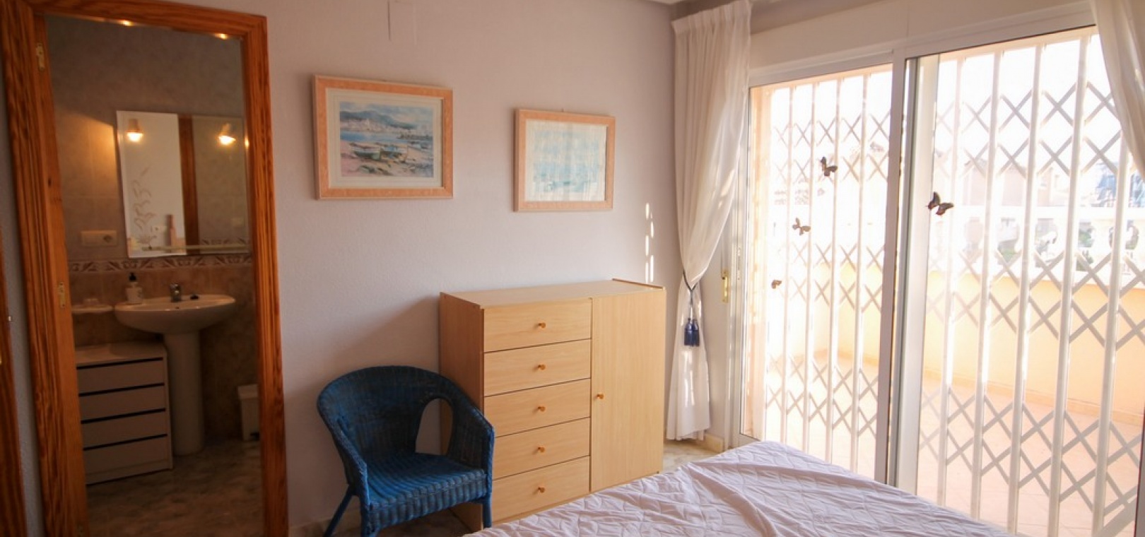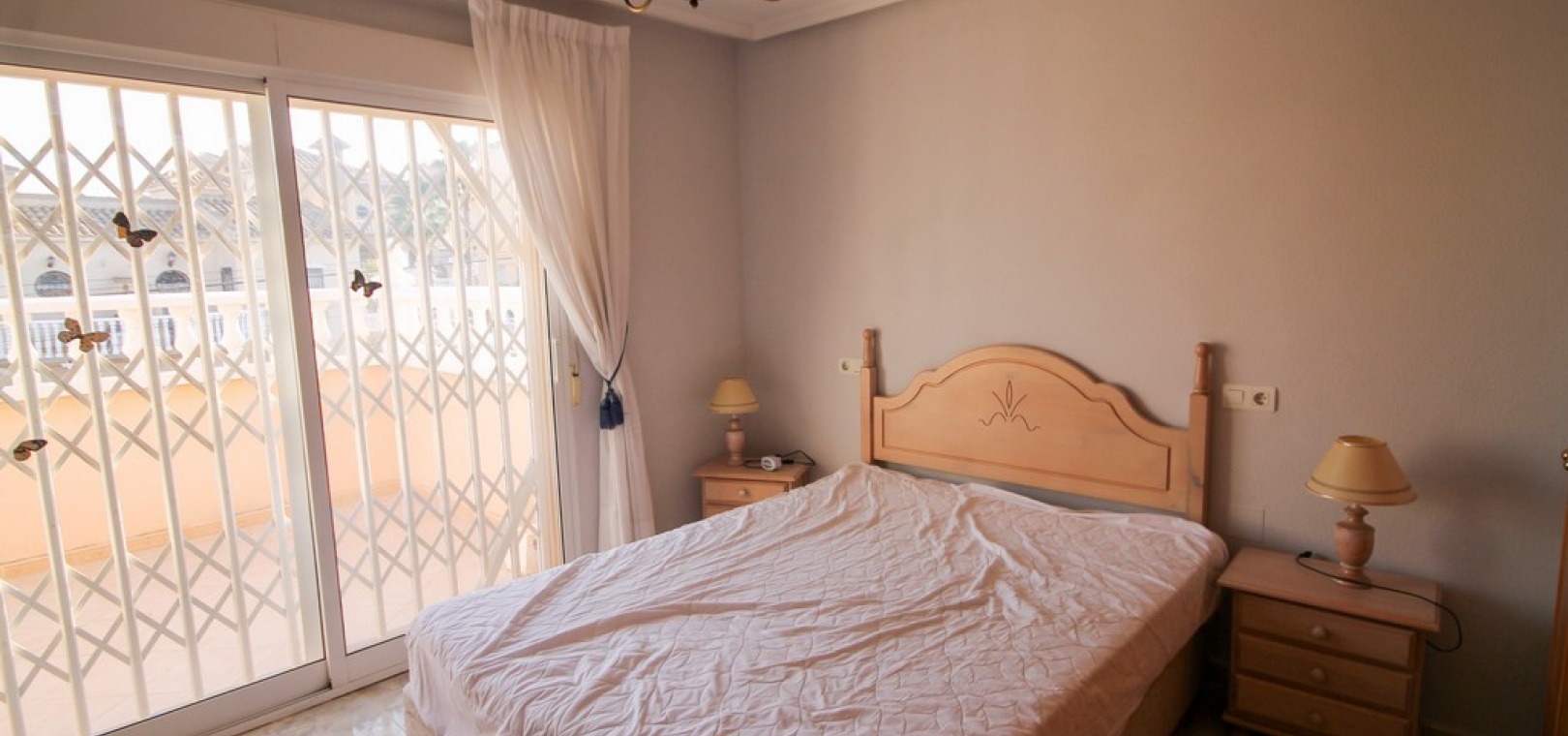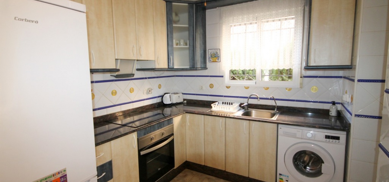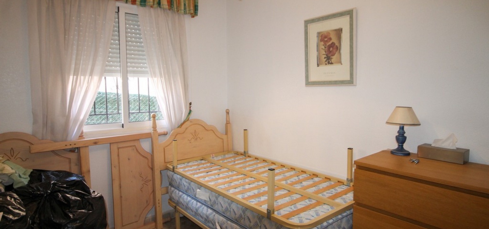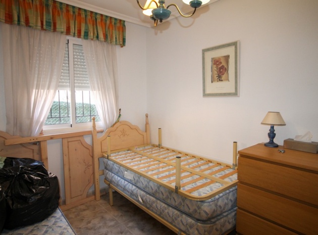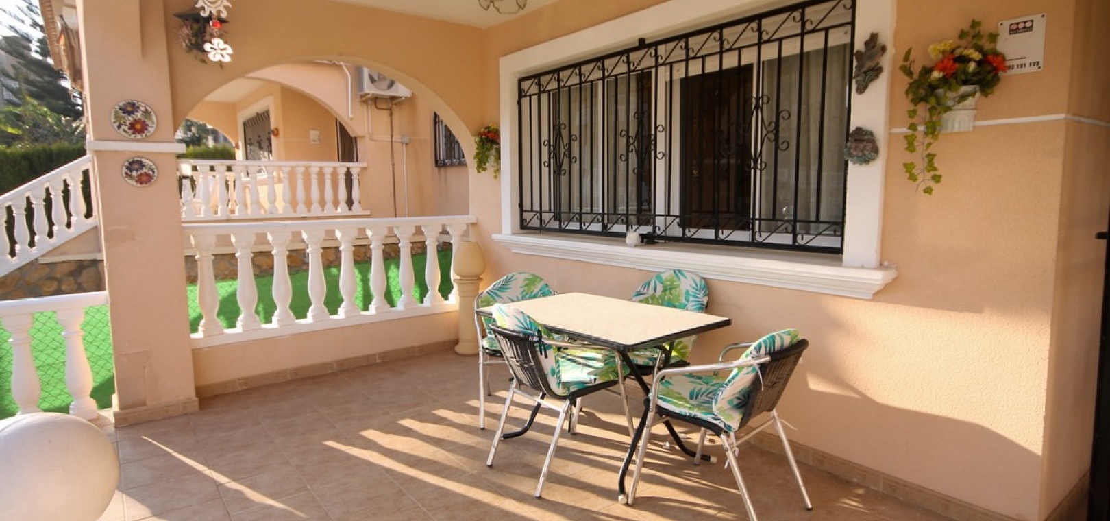 En fristående villa med 3 sovrum och 2 badrum i söderläge i El Galan, Villamartin, Costa Blanca. Denna rymliga fastighet ligger i ett litet samhälle med bara 12 villor, bjuds ut till försäljning i gott skick men behöver lite TLC, säljs delvis möblerad och består mycket kortfattat av följande: - På bottenvåningen finns en lounge/matsal, kök i öppen planlösning, under trappskåp, 2 x dubbelrum med inbyggda garderober och 1 x duschrum. På första våningen finns det största sovrummet med inbyggda garderober, ett eget badrum och en privat balkong, det finns också en balkong på baksidan. Utanför finns en terrass på framsidan, trädgård med lågt underhåll med uppfart för off-road parkering, gemensam simning och mycket mer. Denna fastighet ligger bara en kort promenad till alla bekvämligheter, 5 minuter med bil till stranden La Zenia eller så kan du hoppa på lokalbussen, Mindre än 5 minuter med bil till 4 golfbanor och 50 minuter till Alicantes flygplats.