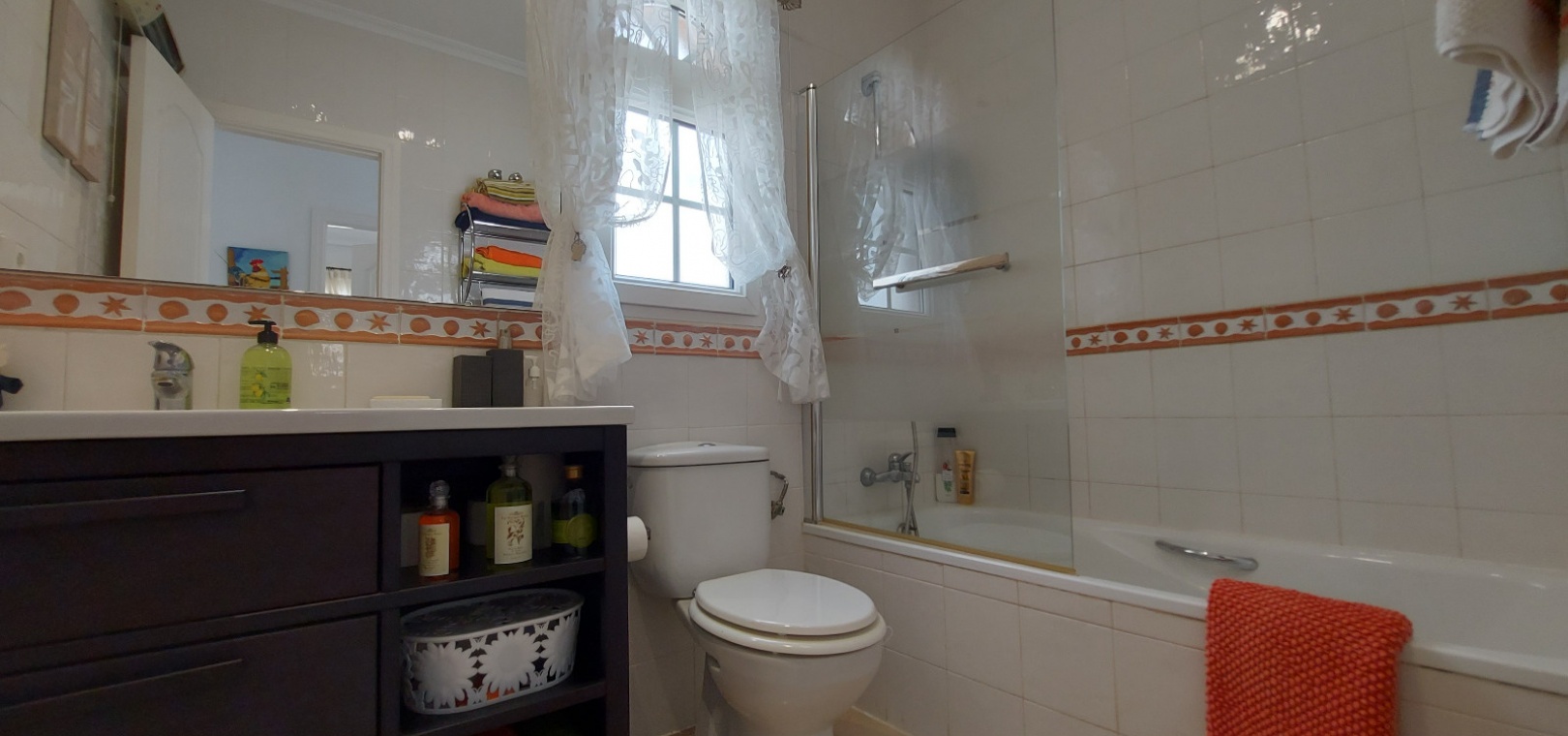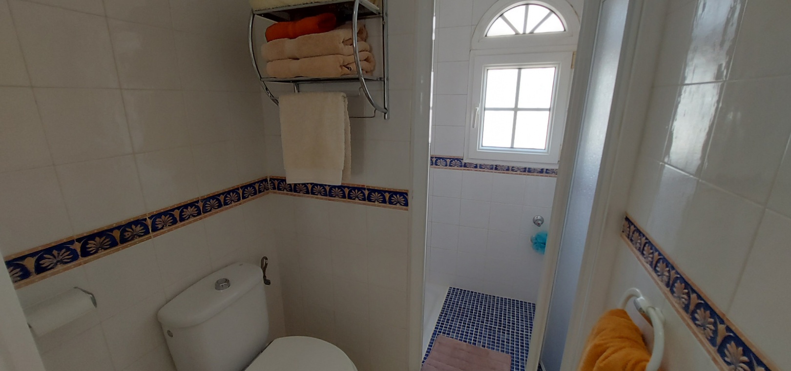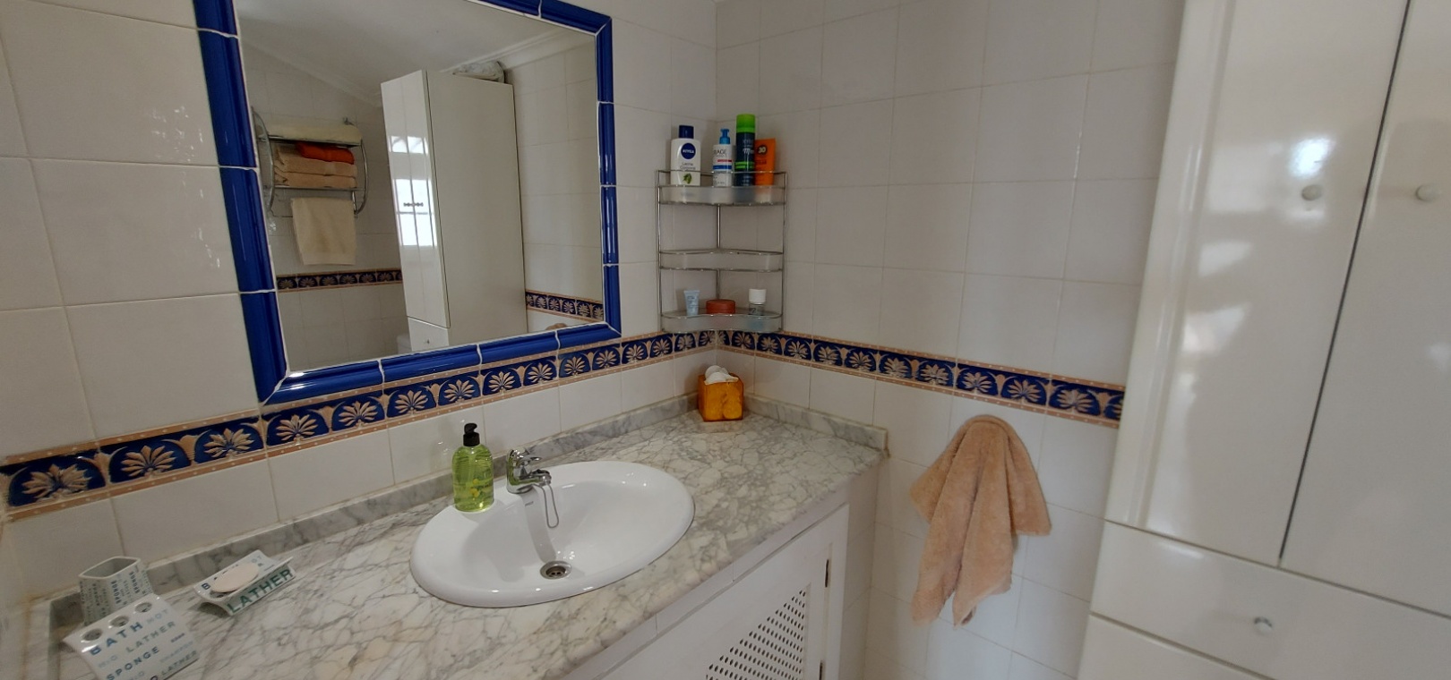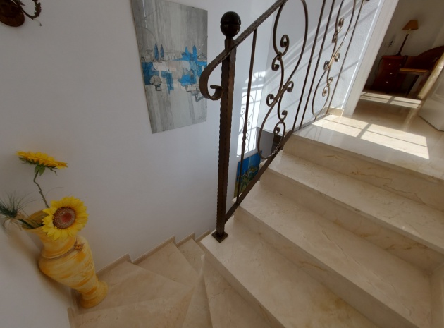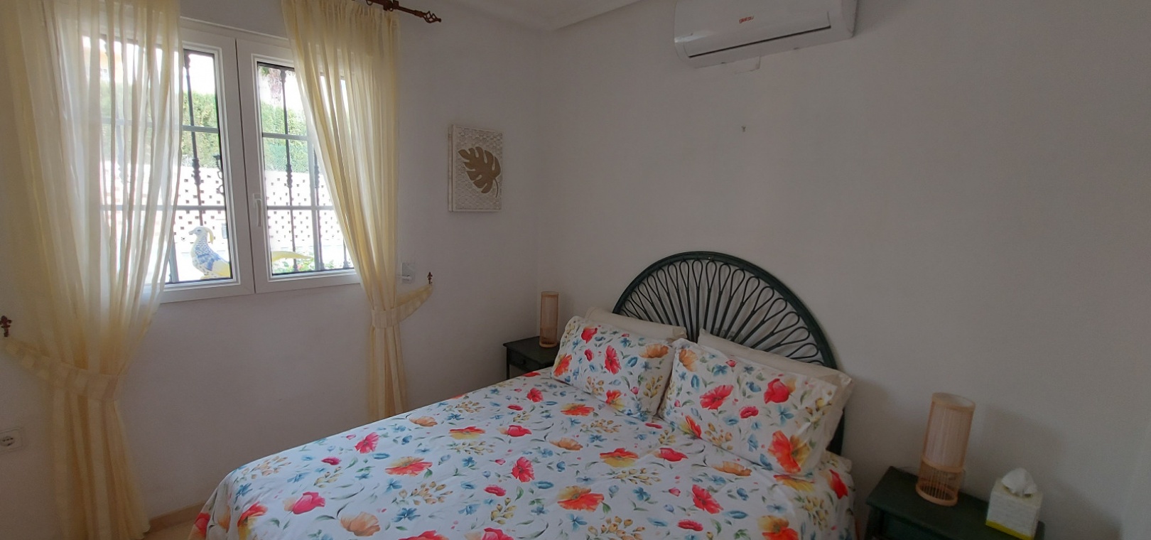 Från det stora sovrummet och även från trappavsatsen finns dörrar ut till det stora och mycket soliga solariumet som har en solmarkis och härlig öppen utsikt över citronlundarna.