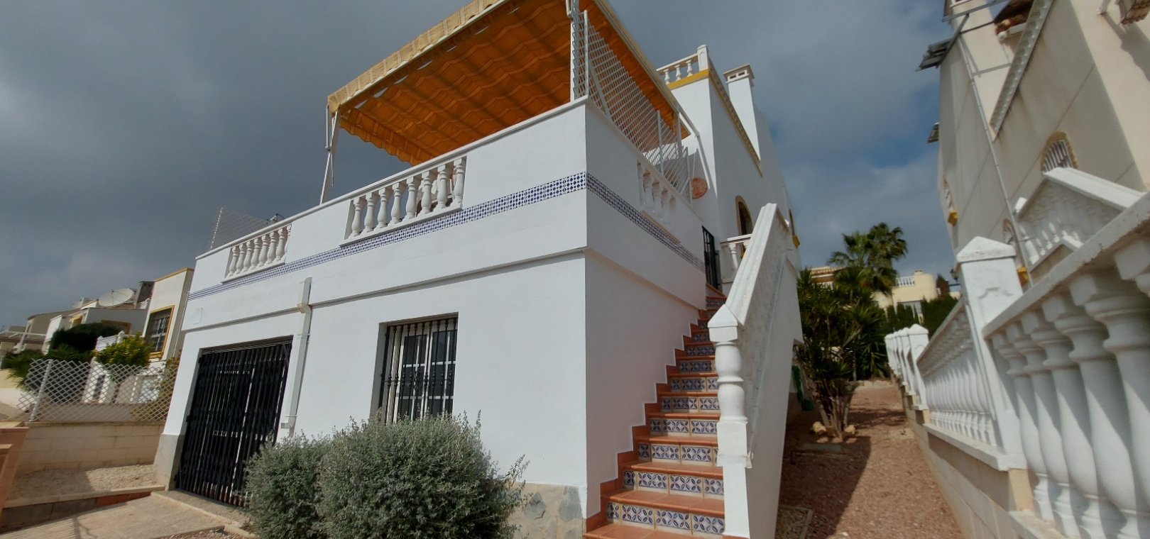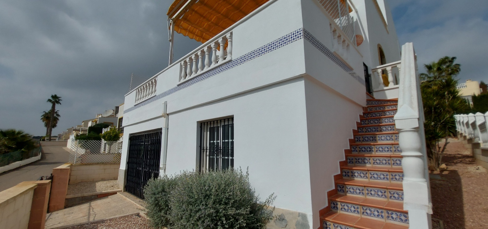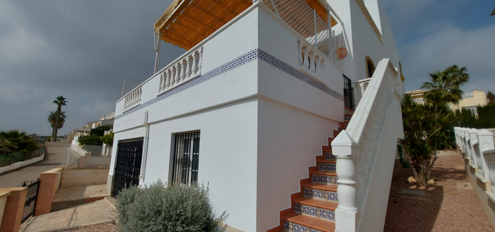 En fristående villa med 3 sovrum och 2 badrum i söderläge med en mycket stor källare med en 2:a lounge, 2 x dubbelrum, 1 x badrum och 1 x förråd belägen i Los Dolses, Villamartin, Costa Blanca South.