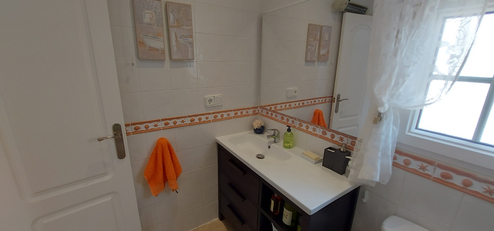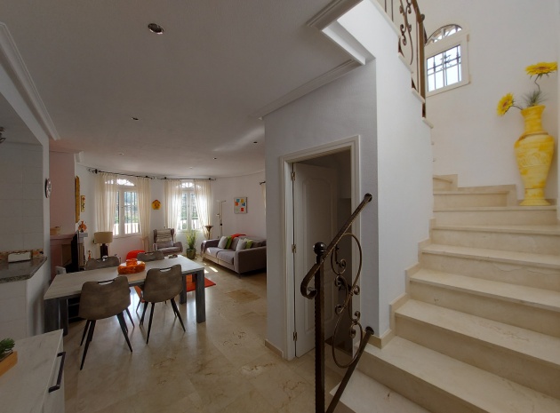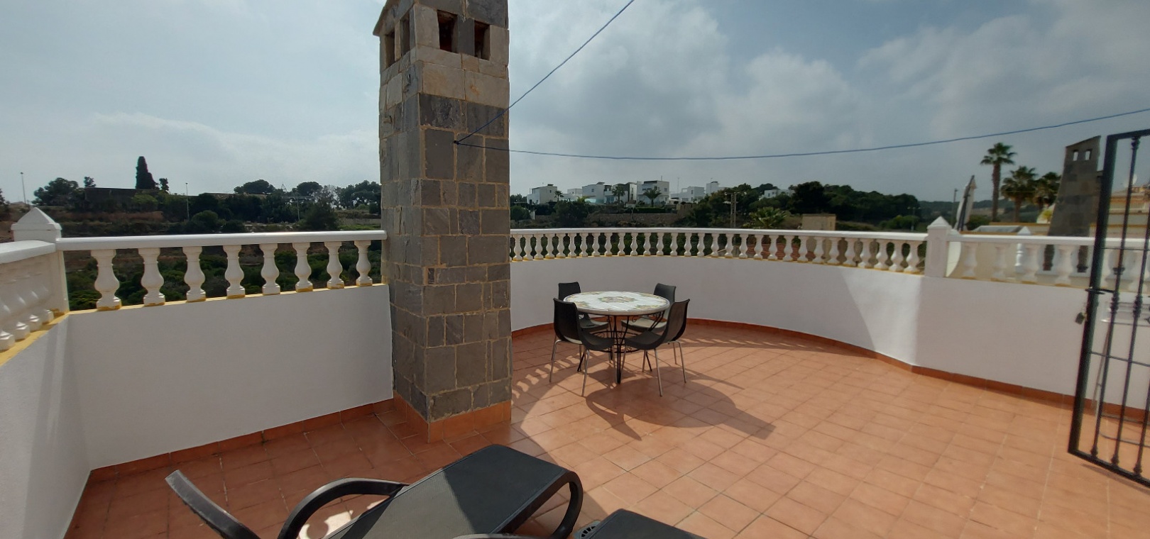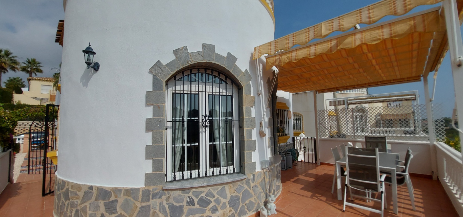 En fristående villa med 3 sovrum och 2 badrum i söderläge med en mycket stor källare med en 2:a lounge, 2 x dubbelrum, 1 x badrum och 1 x förråd belägen i Los Dolses, Villamartin, Costa Blanca South.