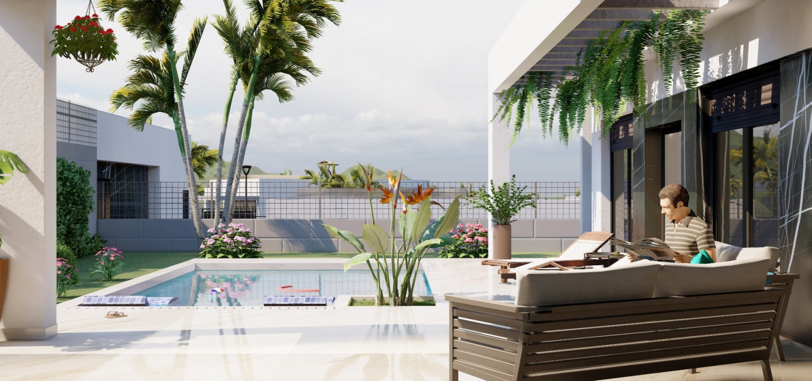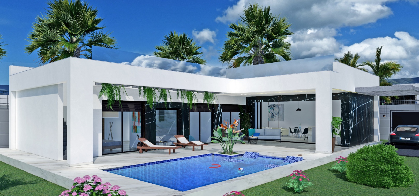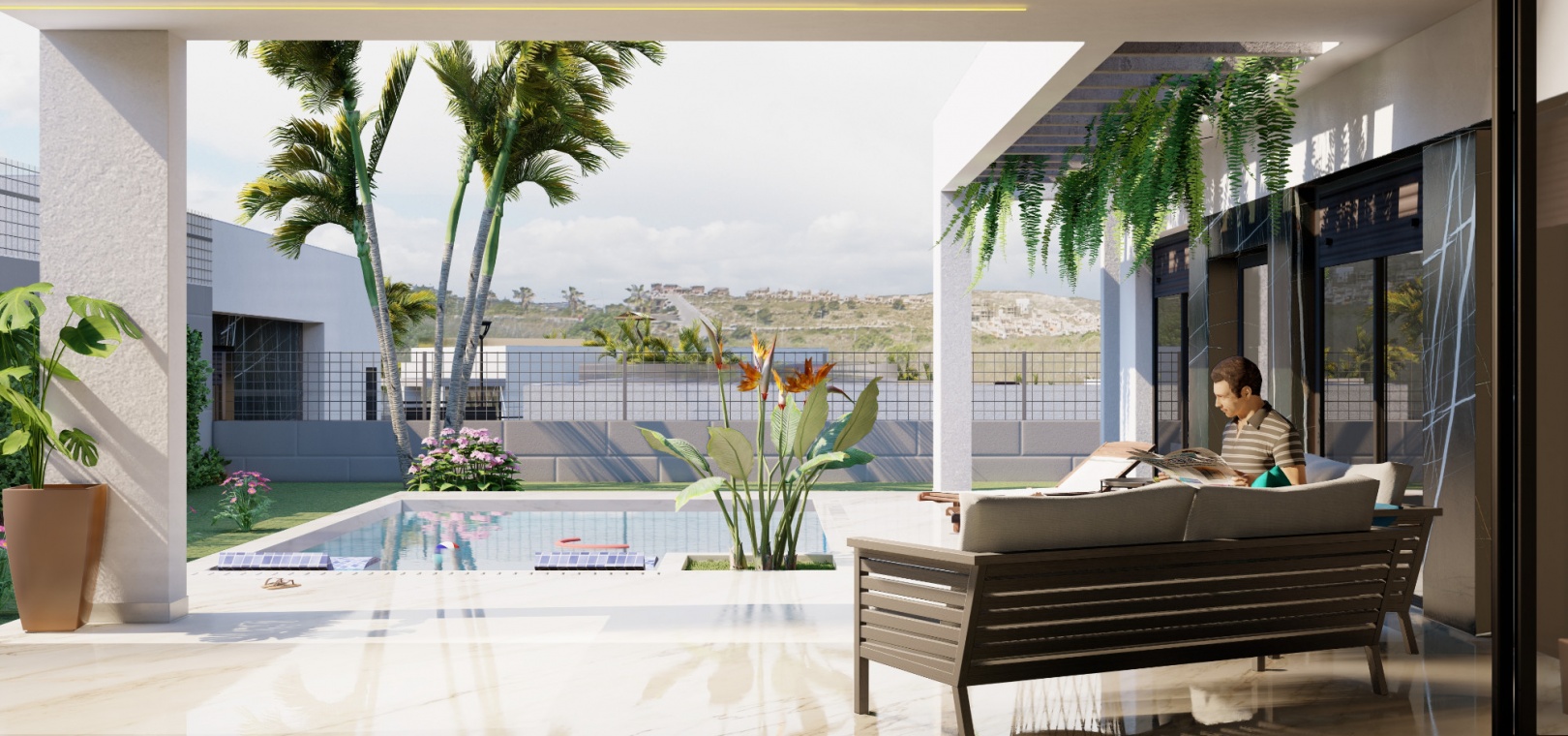 Nybyggda fristående villor med 3 sovrum och 2 badrum i modern stil med privat pool i Res. Oasis Villas, La Finca Golf, Costa Blanca South.