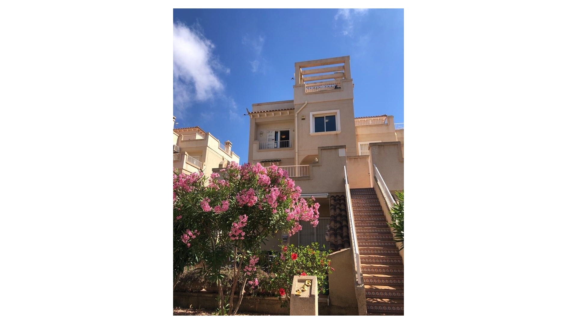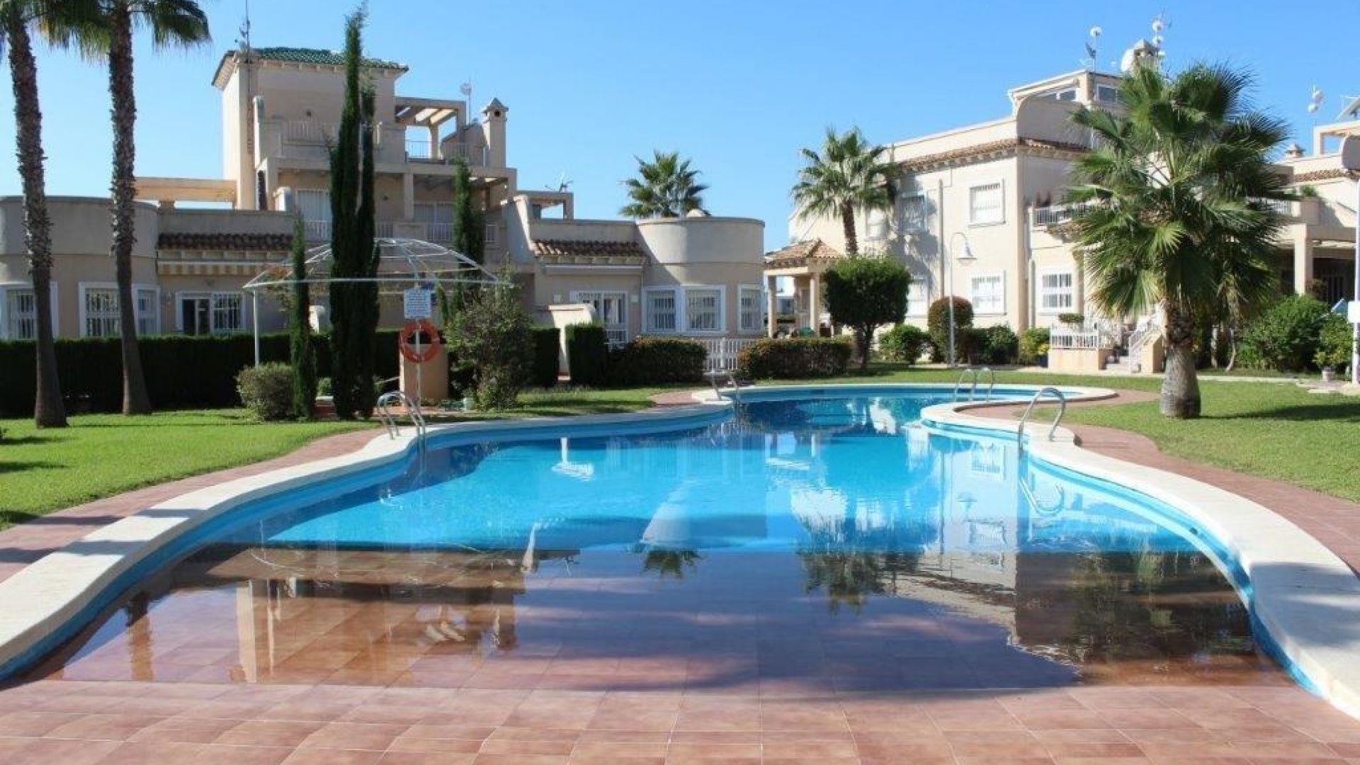 Fastigheten ligger i ett gated community och det är bara 5 minuters promenad till lokala butiker, barer, restauranger, lördagsmarknaden, det nya sportcentret och det nya shoppingkomplexet La Zenia Boulevard. Det är cirka 15 minuters promenad till stranden (mindre än 5 minuters bilresa) och den lokala busshållplatsen och skolor ligger också mycket nära. Mindre än 10 minuters bilresa till 4 golfbanor. Bara 20 minuter från Murcia San Javier flygplats och 50 minuter från Alicante flygplats.