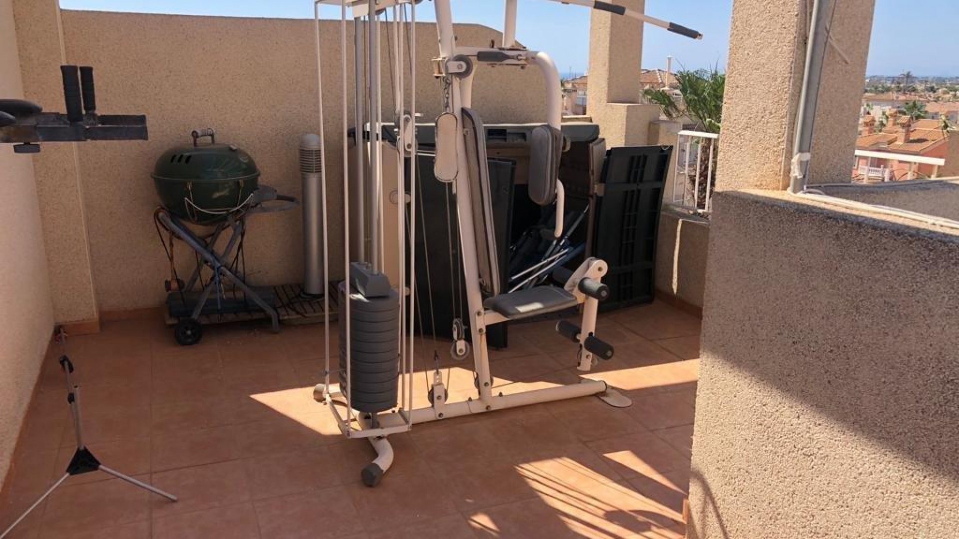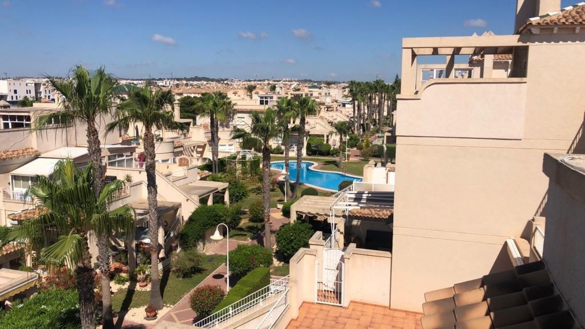 Rymligt vardagsrum/matsal med varm och kall luftkonditionering och en öppen spis, öppet fullt utrustat kök, 2 x dubbelrum, 1 x enkelrum, 1 x familjebadrum, 1 x duschrum, balkong, privat takterrass, härlig gated gemenskap med 2 x härliga gemensamma pooler och trädgårdar och mycket mycket mer.