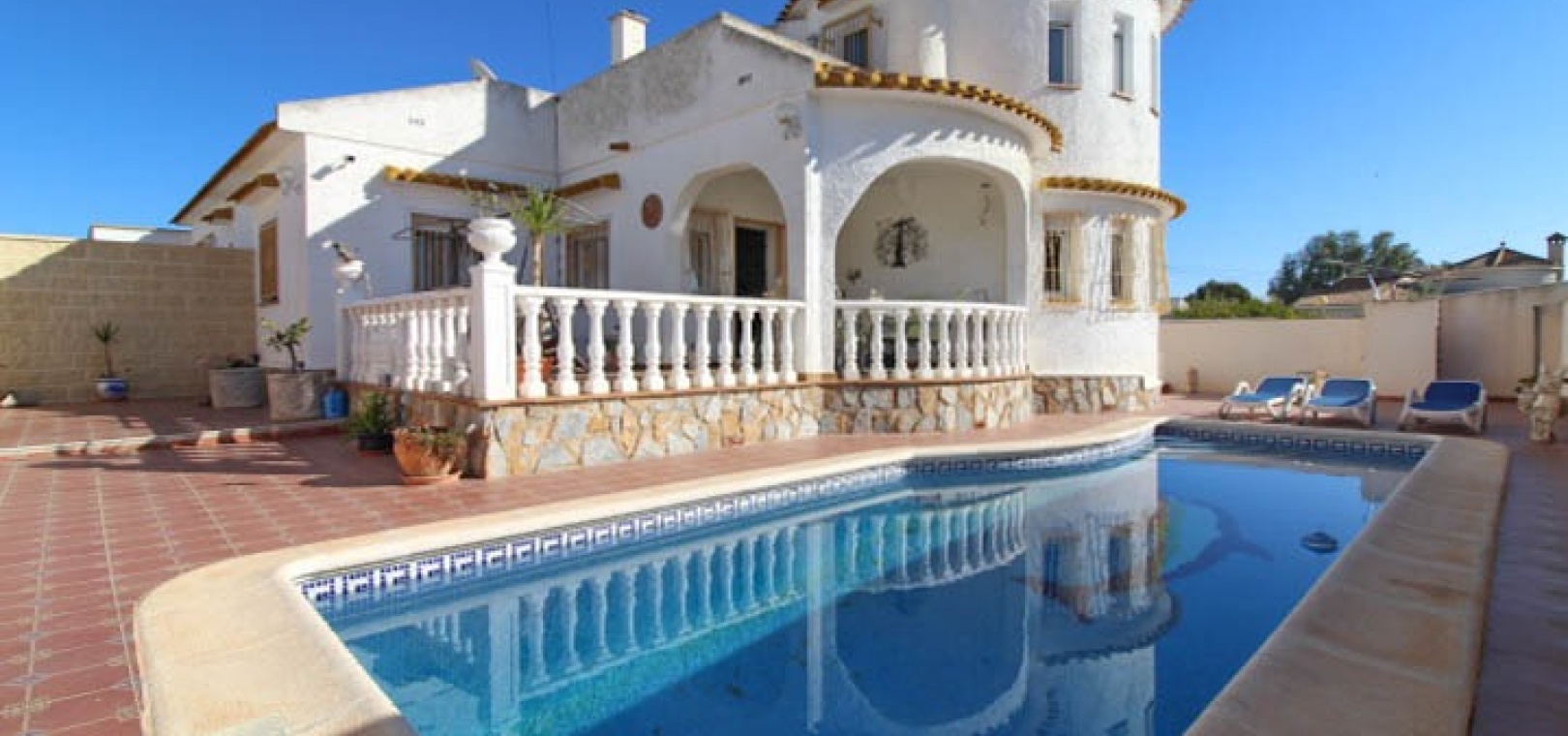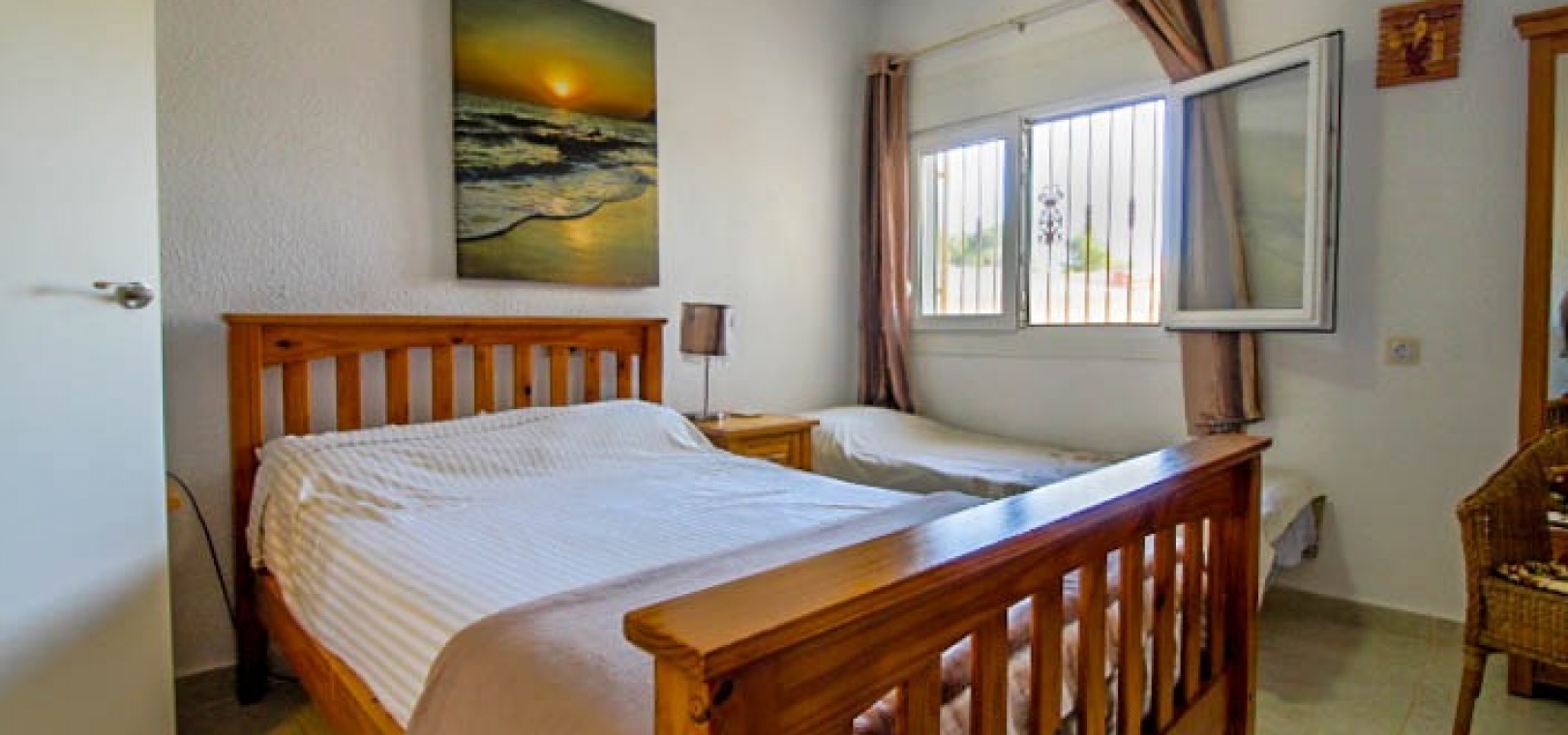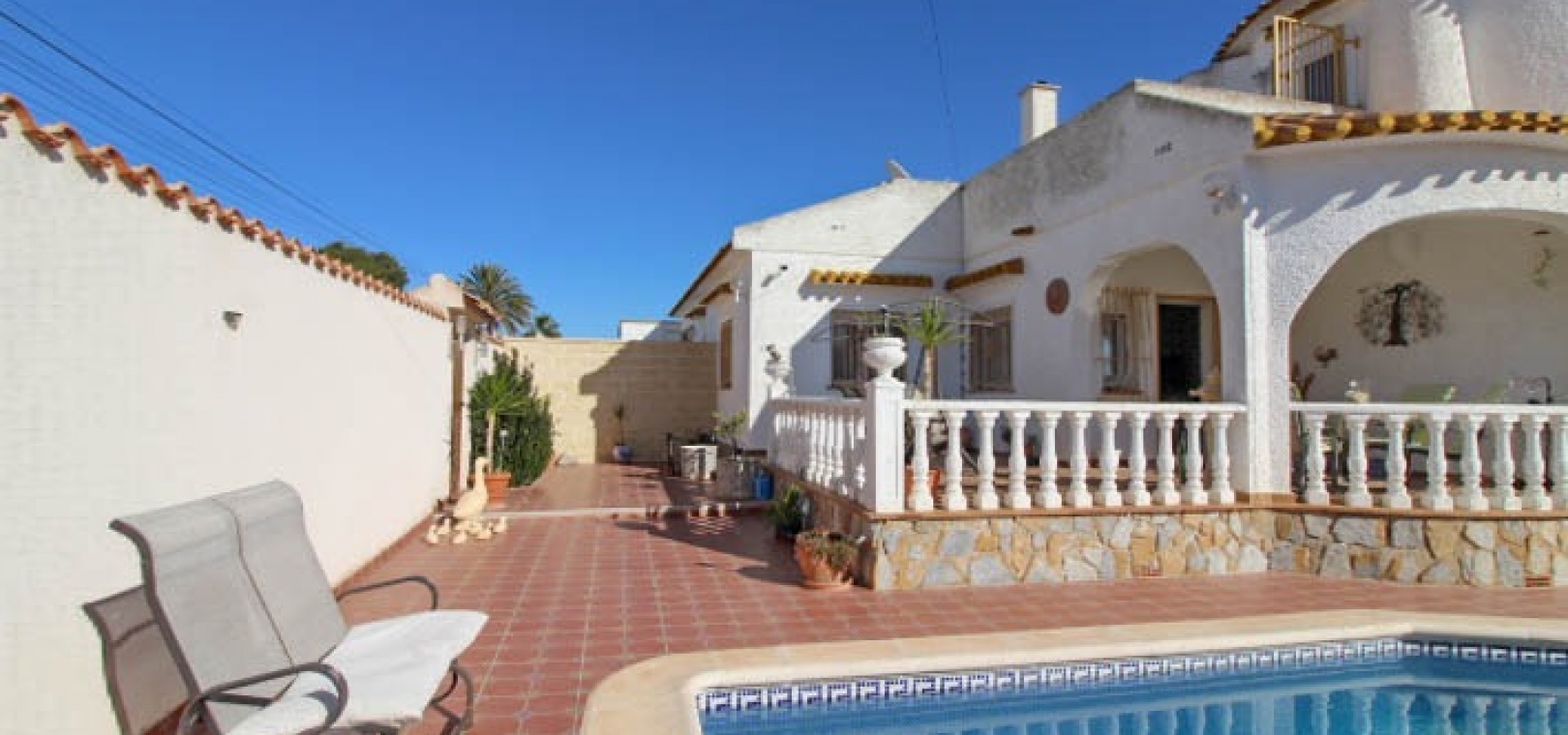 En fristående villa med 4 bäddar och 2 badrum i sydvästläge med en privat pool på en 487m2 tomt belägen i Monte Zenia, La Zenia, Costa Blanca.