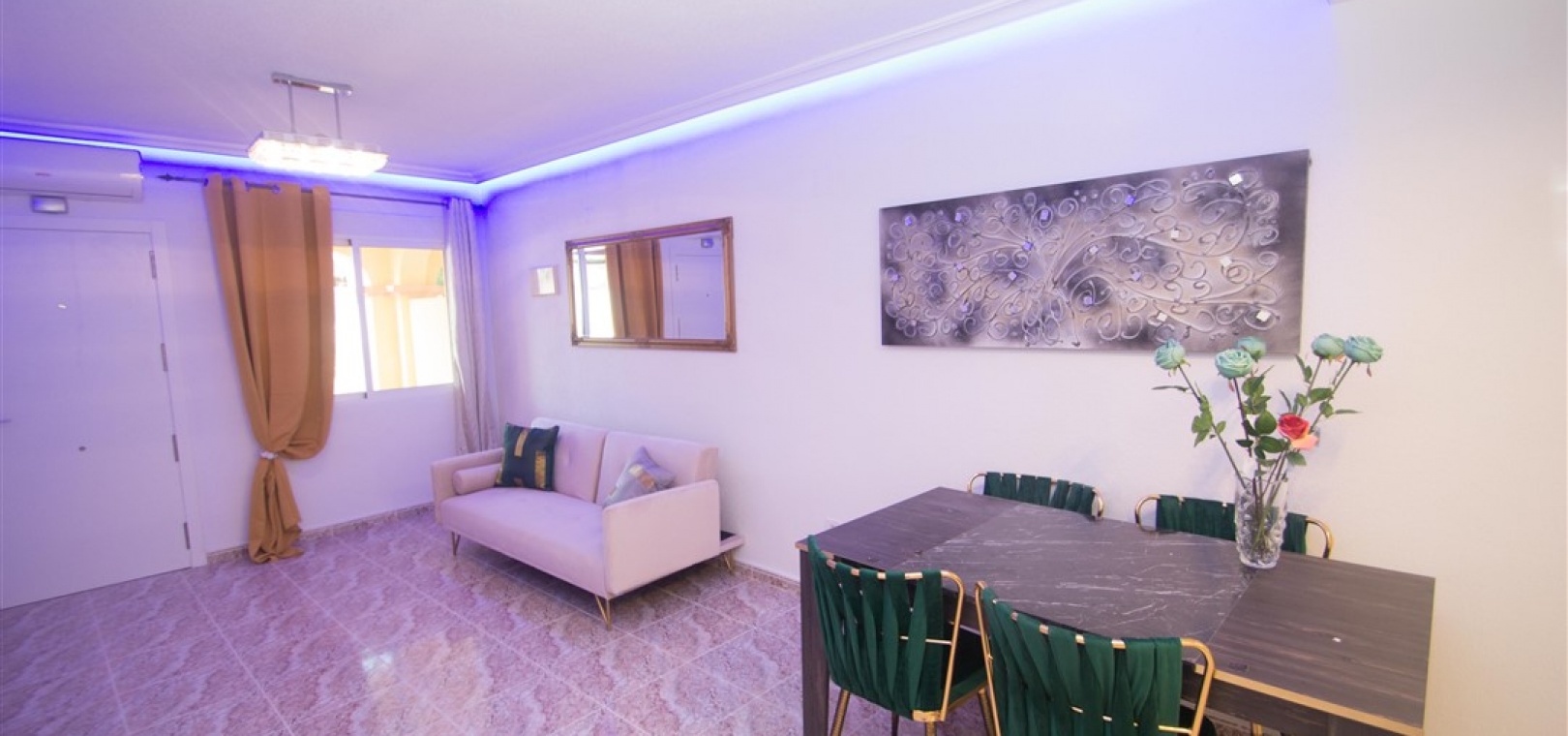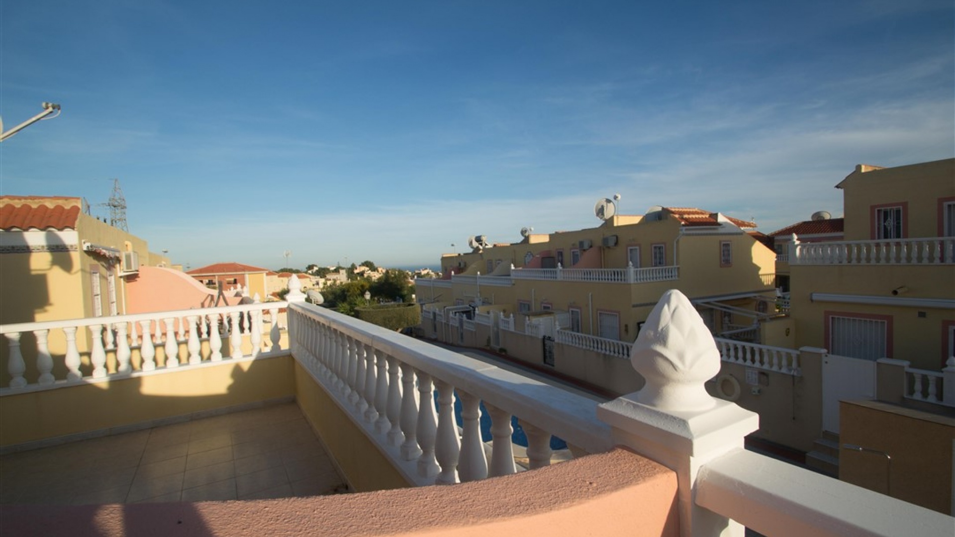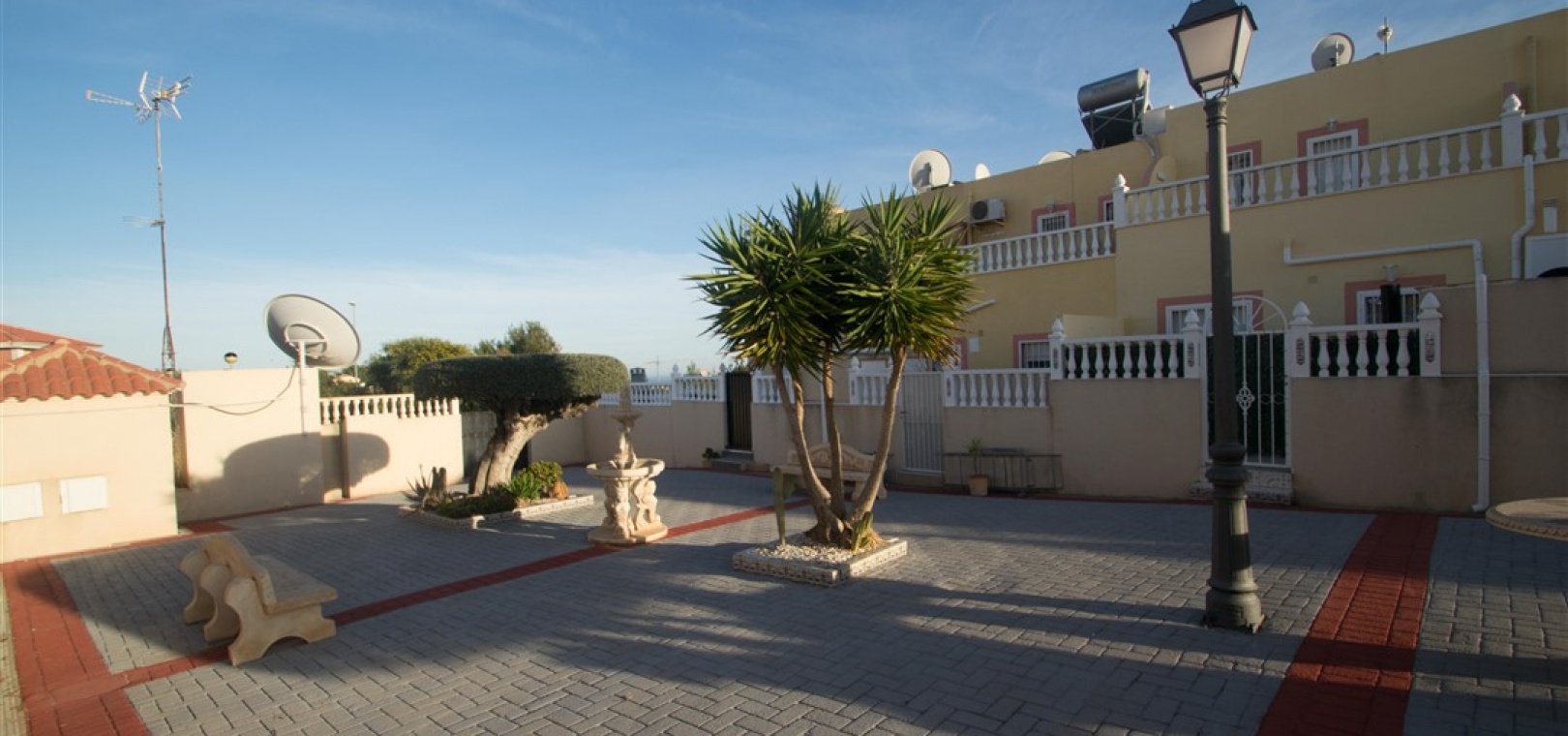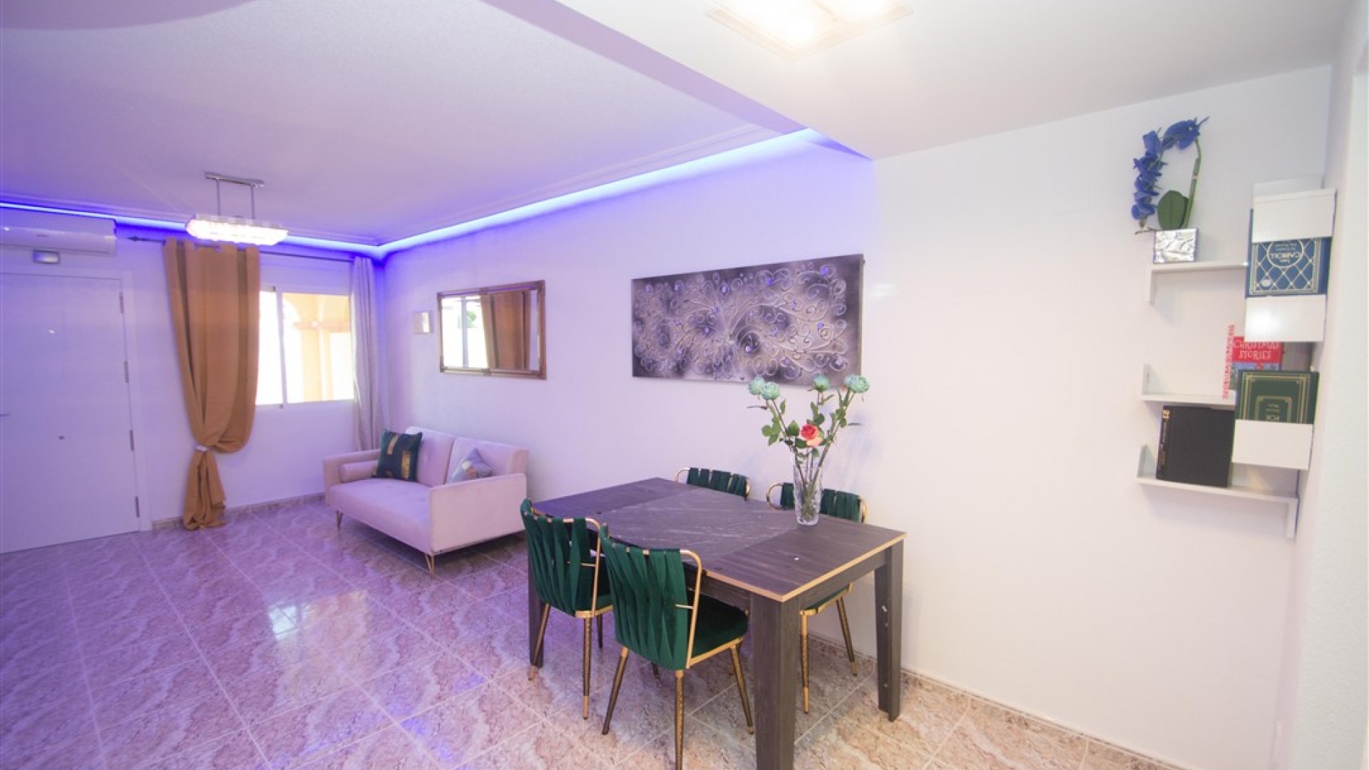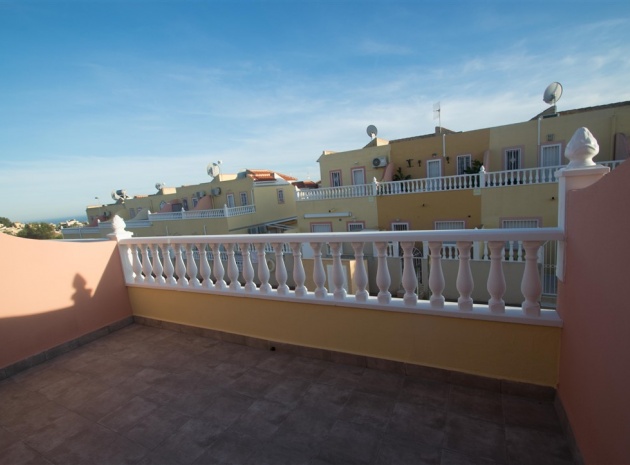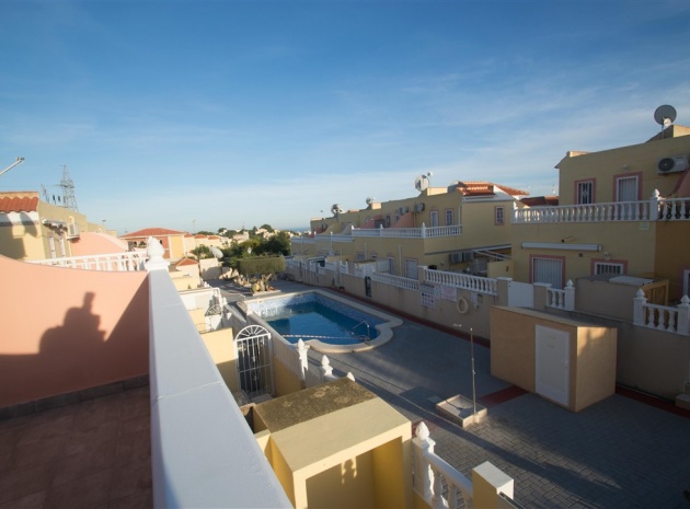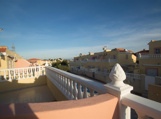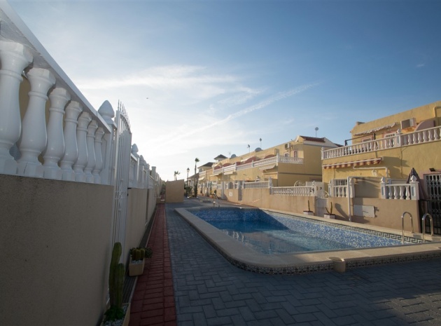 Ett radhus i västläge med 3 sovrum och 2,5 badrum i Battenberg-stil beläget i Bosque de las Lomas, Villamartin, Costa Blanca. Denna fastighet säljs i utmärkt skick eftersom den har uppdaterats, säljs möblerad och består mycket kortfattat av följande: - På bottenvåningen finns en främre trädgård, täckt terrass, ett stort vardagsrum/matsal med varmt och kallt A/C, separat nyutrustat kök, österläge bakre uteplats, 1 x tvåbäddsrum, 1 x nyligen utrustat duschrum och ett nyligen utrustat W/C. Intern trappa leder till 1: a våningen där det finns 2 x dubbelrum båda med inbyggda garderober, varm och kall A/C & balkonger & 1 x nyligen utrustat duschrum. Den här fastigheten skulle göra ett fantastiskt hem för antingen permanent boende eller långa lata semestrar och det är beläget på en säker gated community med 5 x gemensam pool. Denna fastighet har enkel tillgång till de fyra förstklassiga golfbanorna i området: Villamartin, Campoamor, Las Ramblas och Las Colinas. Stränderna Golden Orihuela Costa ligger mindre än 10 minuters bilresa bort, liksom det nya köpcentret Zenia Boulevard (största köpcentret i Alicante-provinsen med den största Primark-klädesaffären i Europa). Lokala barer, butiker, restauranger, snabbköp etc. ligger bara några minuter bort. Det finns tennisbanor och tennisträning tillgängligt på det närliggande hotellet Campoamor. Alicantes flygplats ligger 45 minuter bort och Murcia Corvera flygplats ligger 35 minuters bilresa bort.