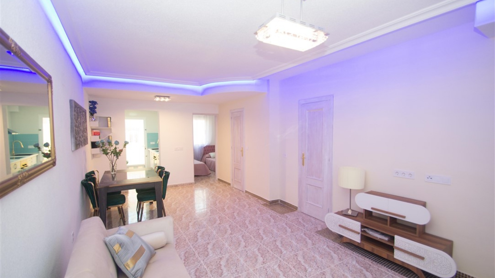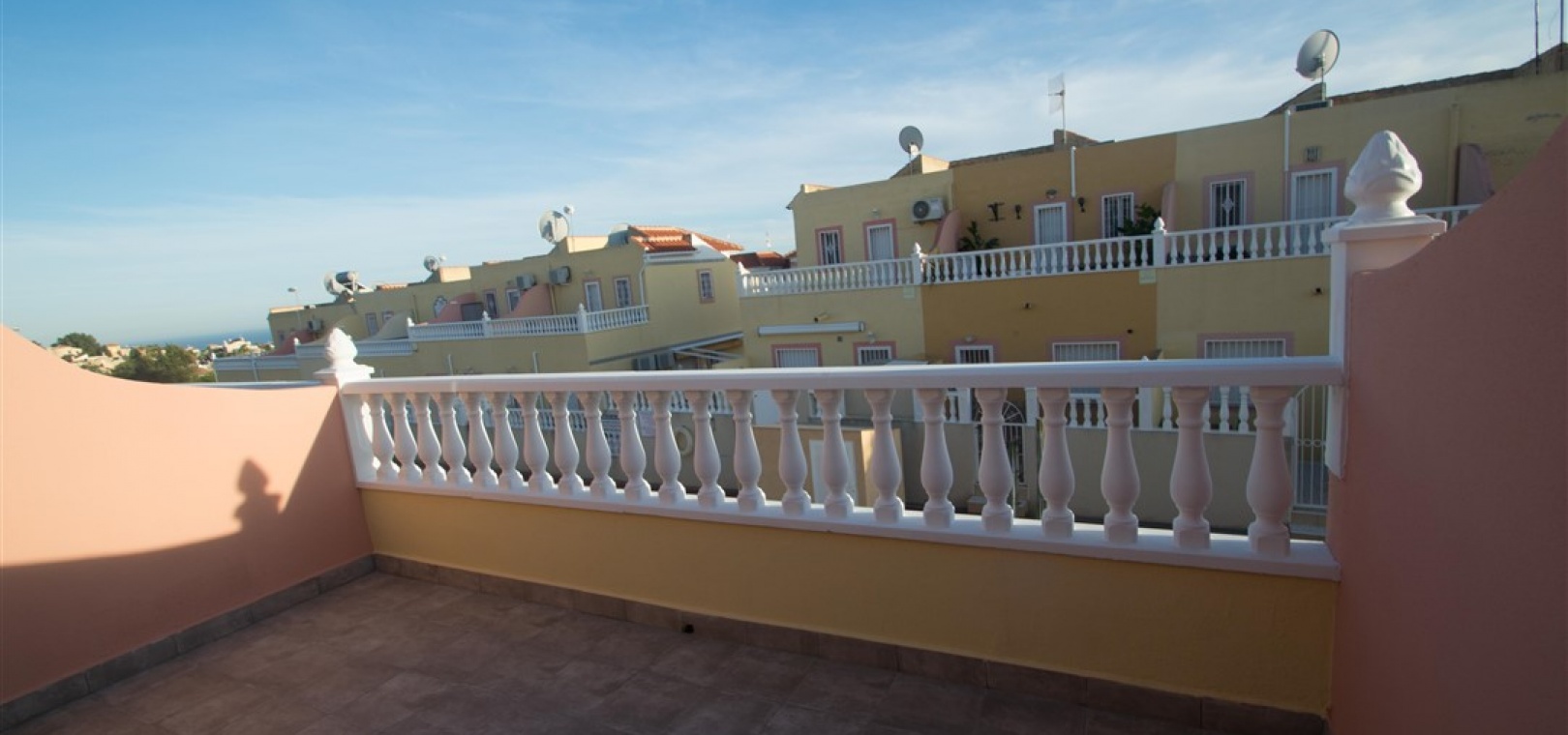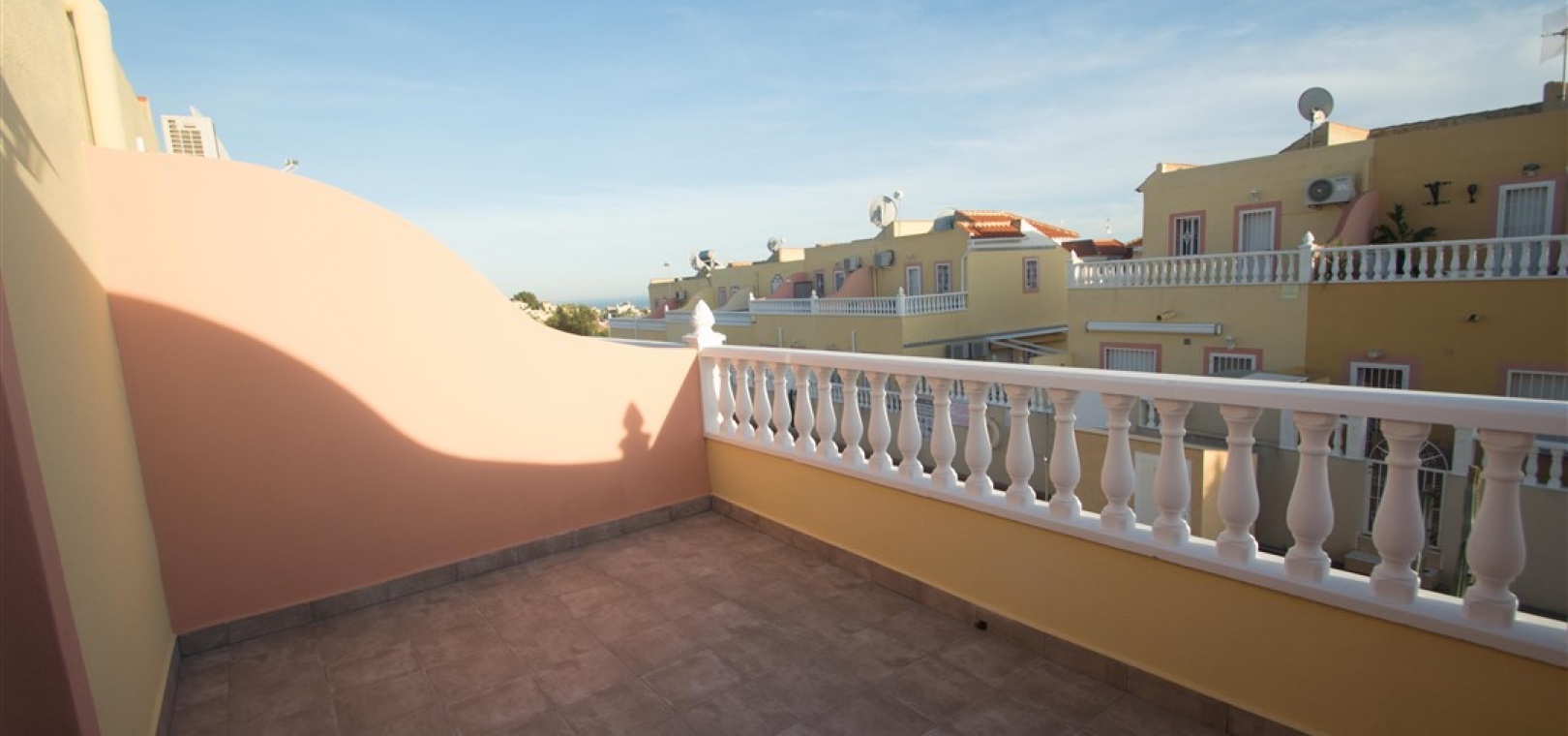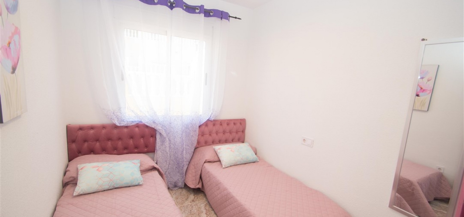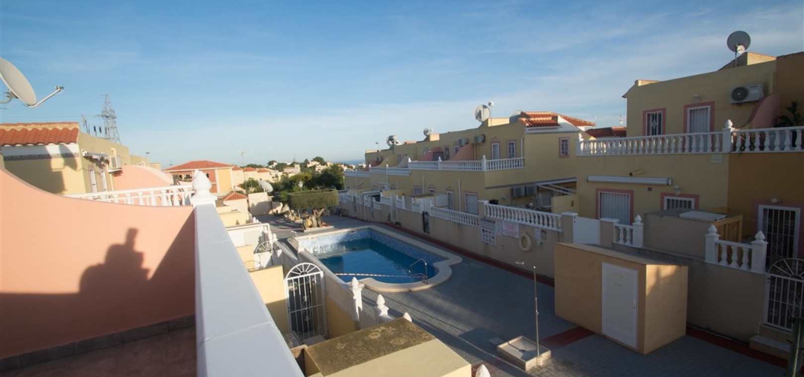 Ett radhus i västläge med 3 sovrum och 2,5 badrum i Battenberg-stil beläget i Bosque de las Lomas, Villamartin, Costa Blanca. Denna fastighet säljs i utmärkt skick eftersom den har uppdaterats, säljs möblerad och består mycket kortfattat av följande: - På bottenvåningen finns en främre trädgård, täckt terrass, ett stort vardagsrum/matsal med varmt och kallt A/C, separat nyutrustat kök, österläge bakre uteplats, 1 x tvåbäddsrum, 1 x nyligen utrustat duschrum och ett nyligen utrustat W/C. Intern trappa leder till 1: a våningen där det finns 2 x dubbelrum båda med inbyggda garderober, varm och kall A/C & balkonger & 1 x nyligen utrustat duschrum. Den här fastigheten skulle göra ett fantastiskt hem för antingen permanent boende eller långa lata semestrar och det är beläget på en säker gated community med 5 x gemensam pool. Denna fastighet har enkel tillgång till de fyra förstklassiga golfbanorna i området: Villamartin, Campoamor, Las Ramblas och Las Colinas. Stränderna Golden Orihuela Costa ligger mindre än 10 minuters bilresa bort, liksom det nya köpcentret Zenia Boulevard (största köpcentret i Alicante-provinsen med den största Primark-klädesaffären i Europa). Lokala barer, butiker, restauranger, snabbköp etc. ligger bara några minuter bort. Det finns tennisbanor och tennisträning tillgängligt på det närliggande hotellet Campoamor. Alicantes flygplats ligger 45 minuter bort och Murcia Corvera flygplats ligger 35 minuters bilresa bort.