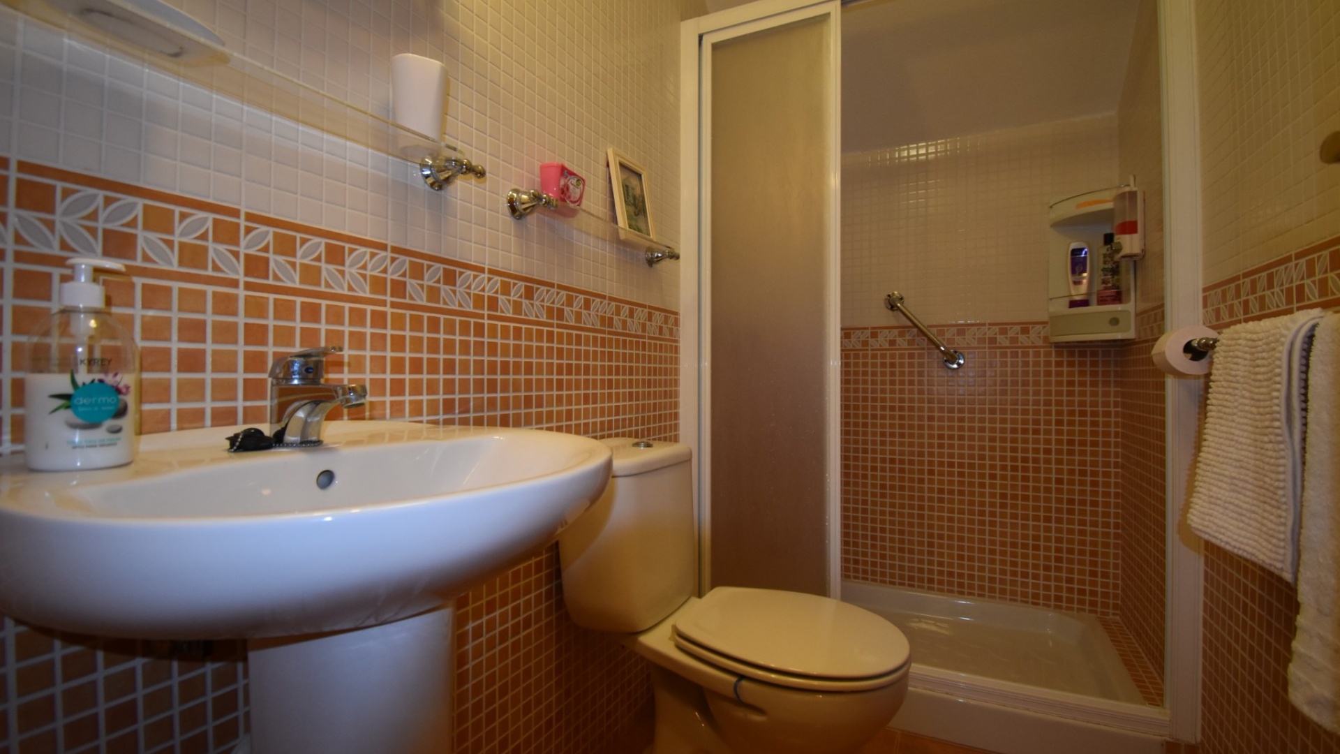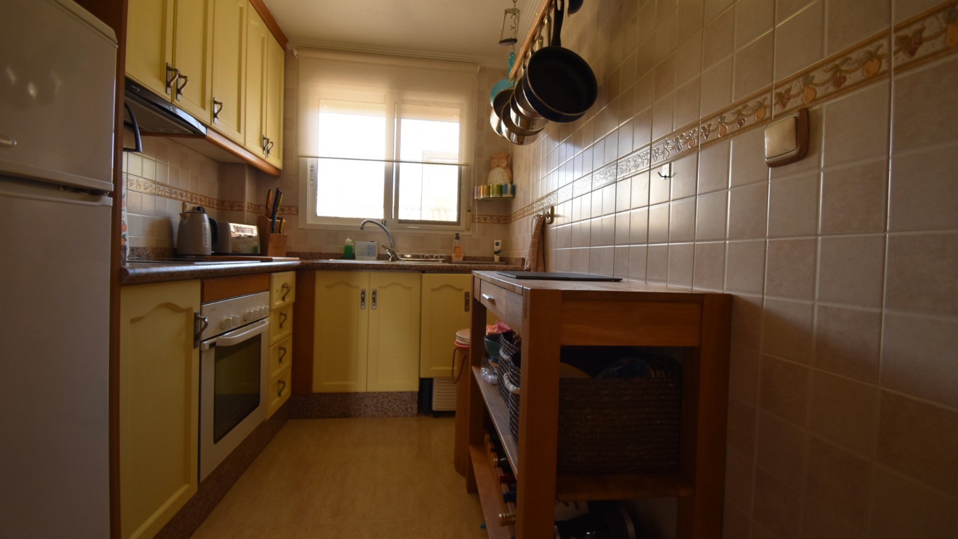 Detta radhus med tre sovrum vetter mot öst och väst i El Barranco, ett bostadsområde nära Los Dolses och La Zenia på Orihuela Costa. Beläget inom 5 minuters promenad till närmaste bekvämligheter och faciliteter, medan La Zenia Boulevard Commercial Centre ligger bara några minuters bilresa runt hörnet, plus ett brett utbud av golfbanor och stränder i närområdet... Denna fantastiska fastighet är nås via ett inglasat område, vilket leder till ett ljust vardagsrum som har trappor upp till första våningen; separat utrustat kök; dubbelrum; duschrum. Det finns ytterligare ett sovrum med dubbelsäng och enkelrum plus ett duschrum på första våningen, master har terrass avstängd; invändiga trappor leder upp till solariet. Den här fastigheten har också bakåtkomst och erbjuder off-road parkering. De gemensamma områdena till detta komplex är välskötta, tillsammans med poolområdet. Fastigheten har luftkonditionering, takfläktar och inbyggda garderober i alla sovrum. Ett härligt hem.