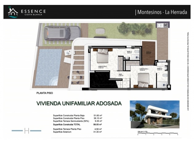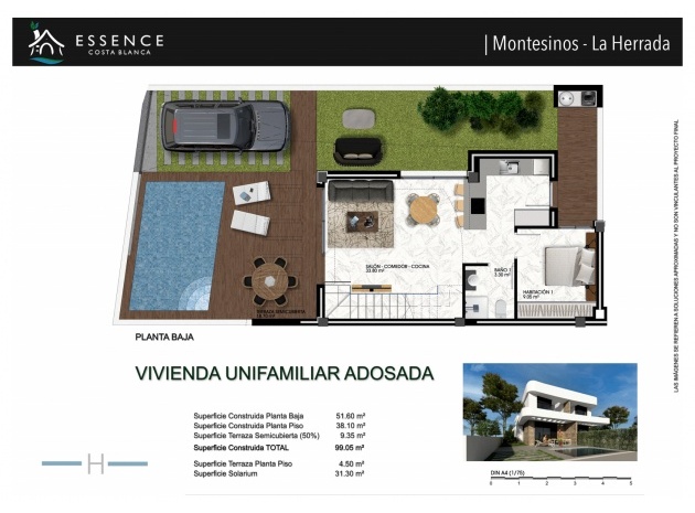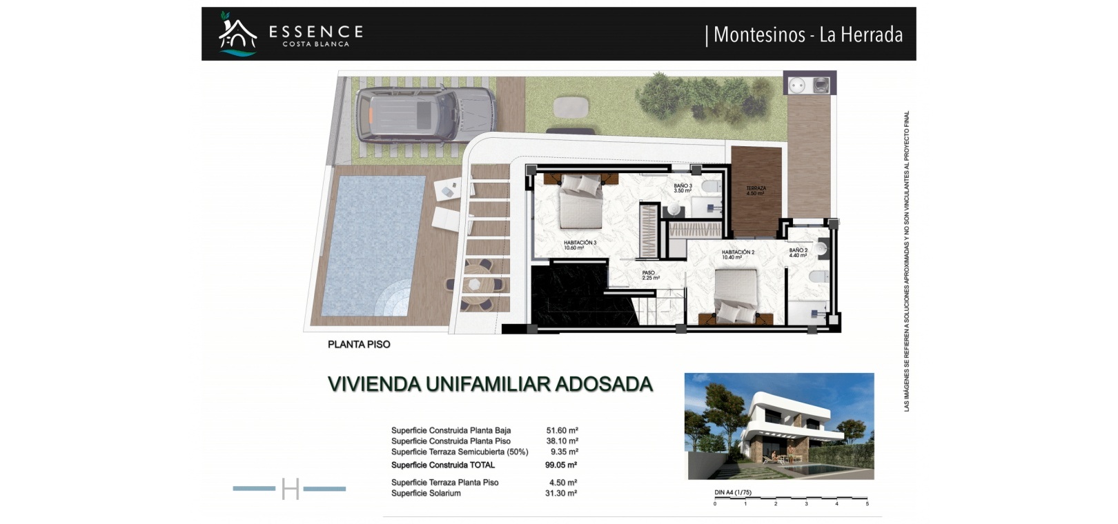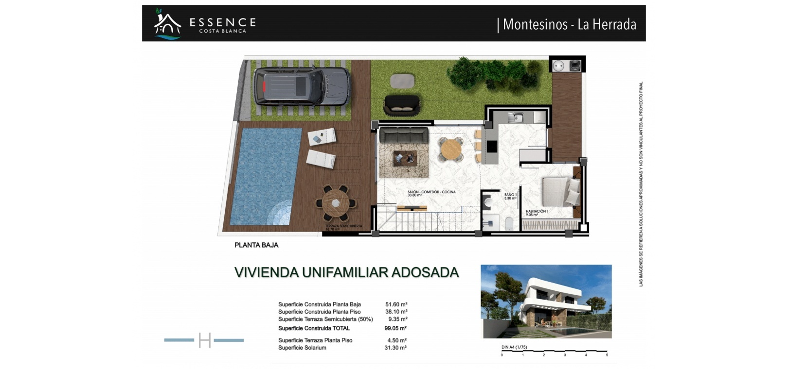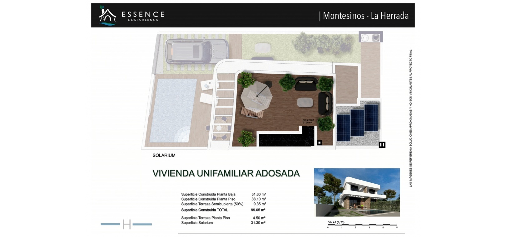 Nybyggda parhus med 3 sovrum och 3 badrum i modern stil med privat pool i Res. Essence, Los Montesinos, Costa Blanca South.