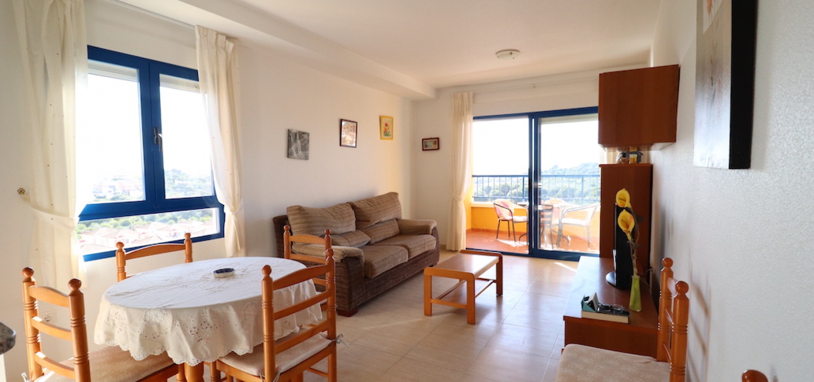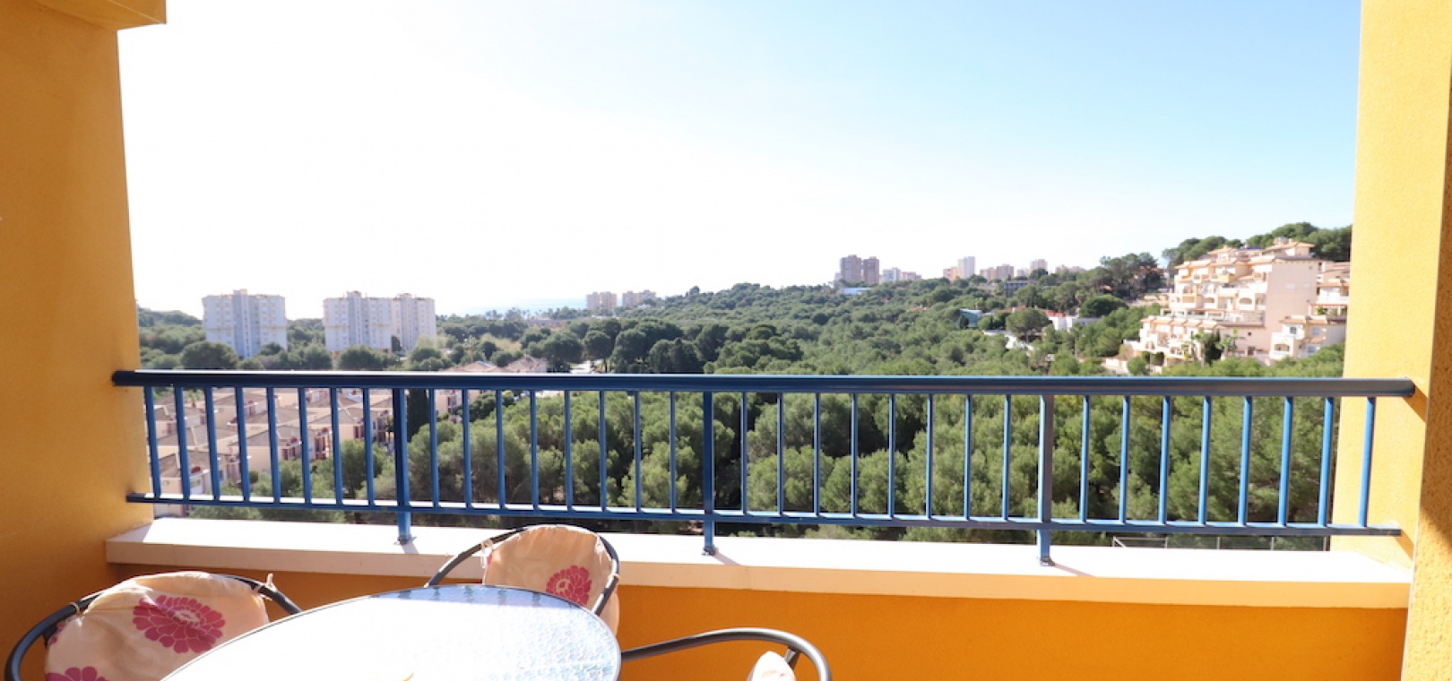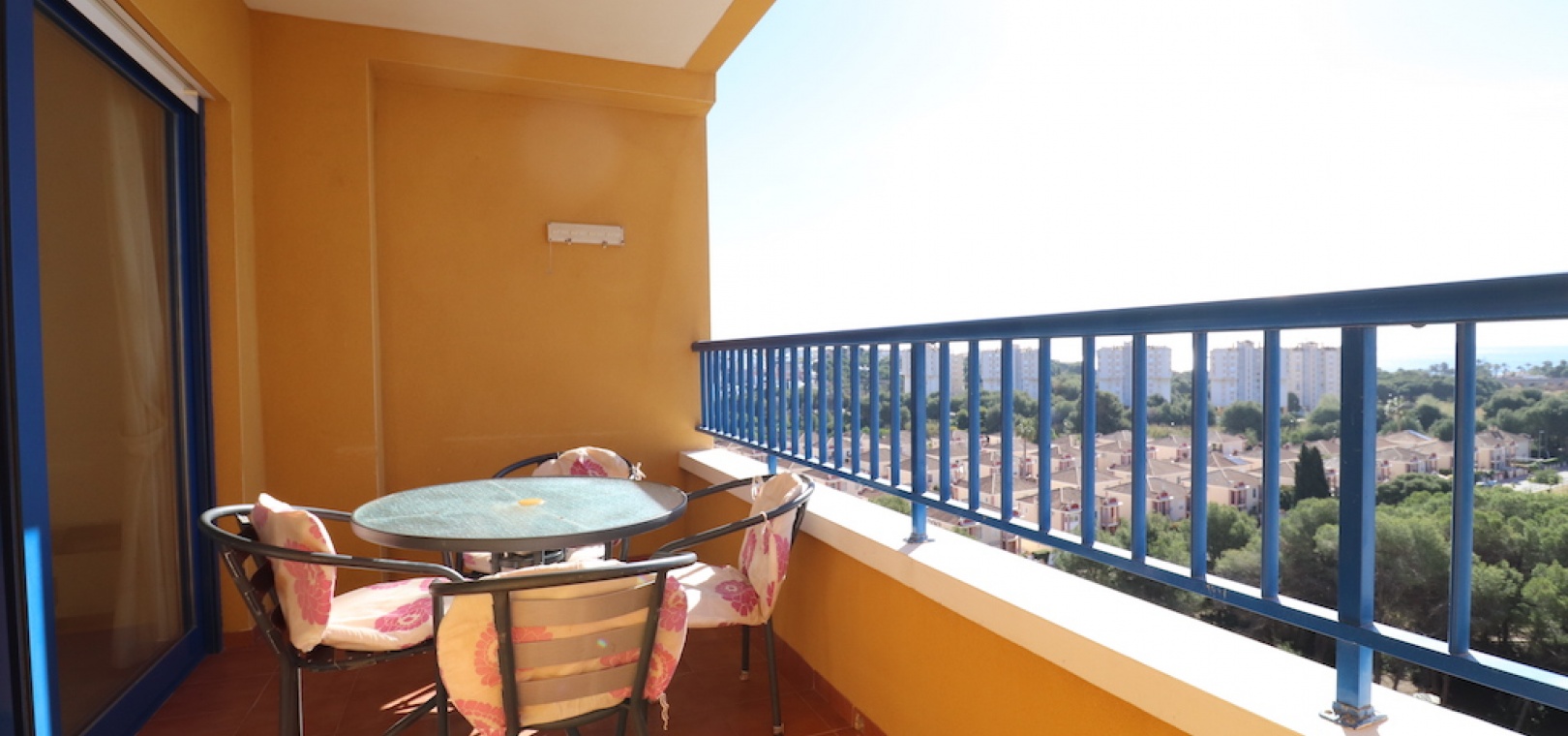 En östläge 2 sovrum 2 badrum 3:e våningen lägenhet med havsutsikt belägen i Dehesa de Campoamor, Campoamor, Costa Blanca.