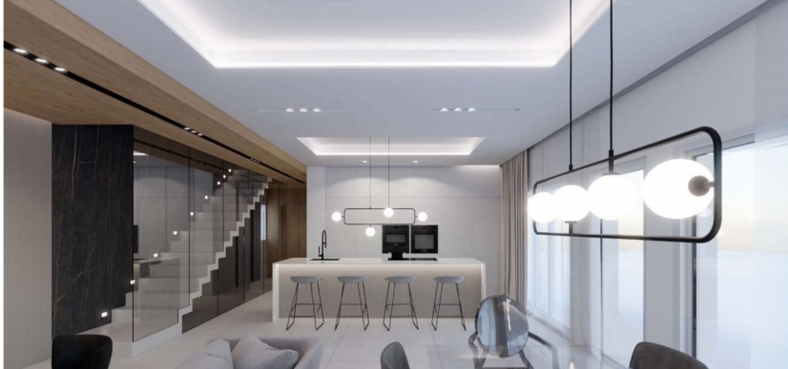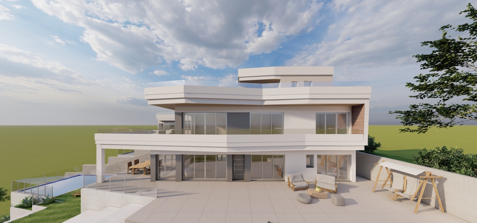Rymligt, ljust och luftigt vardagsrum med solterrasser, fantastiskt kök i öppen planlösning med alla elektriska apparater inkluderade, 4 x sovrum alla med inbyggda garderober, 4 x badrum, 2 x WC, 71m2 privat takterrass med jacuzzi och utekök, 93m2 garage / källare med hiss upp till bottenvåningen, stor trädgård med uppfart för off-road parkering och en privat pool