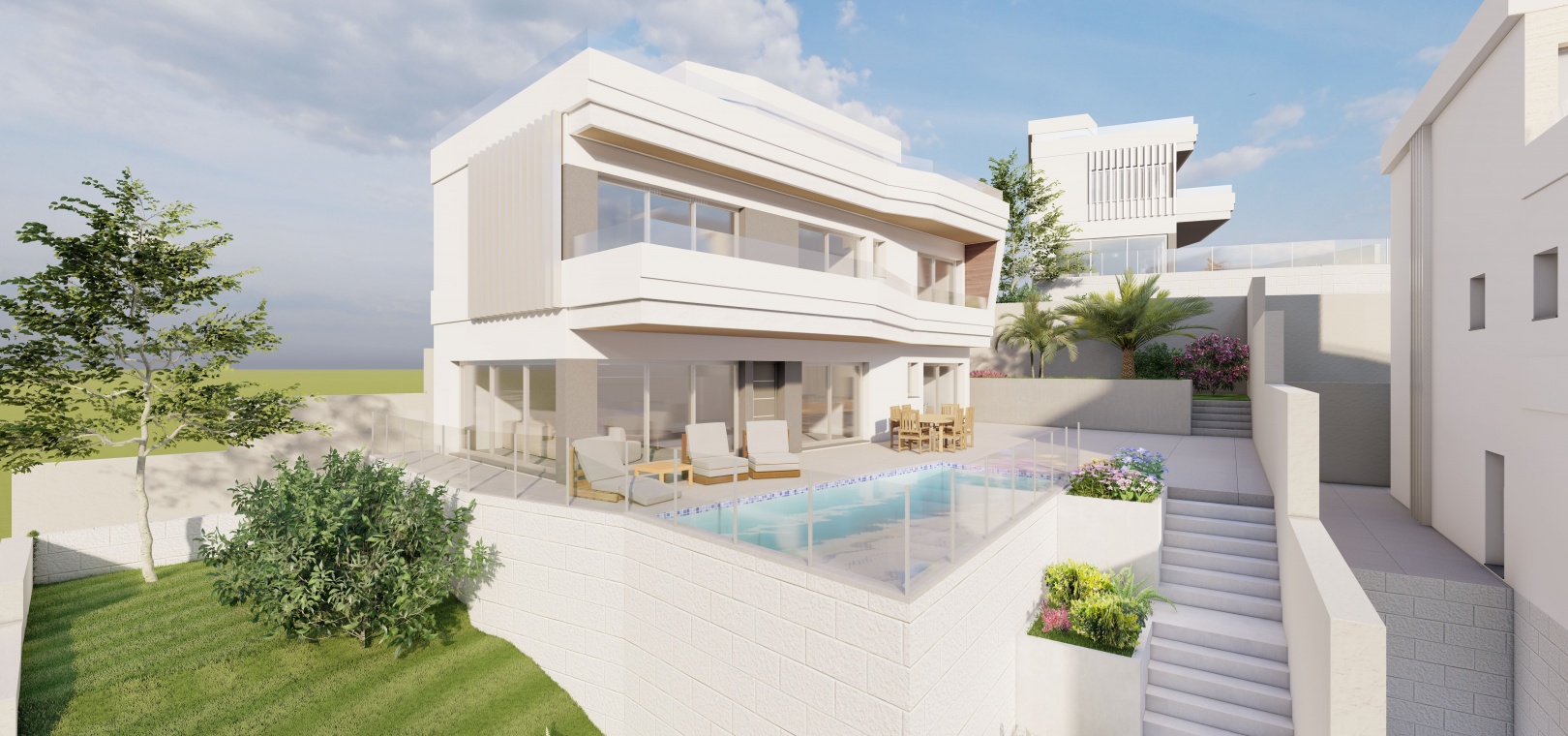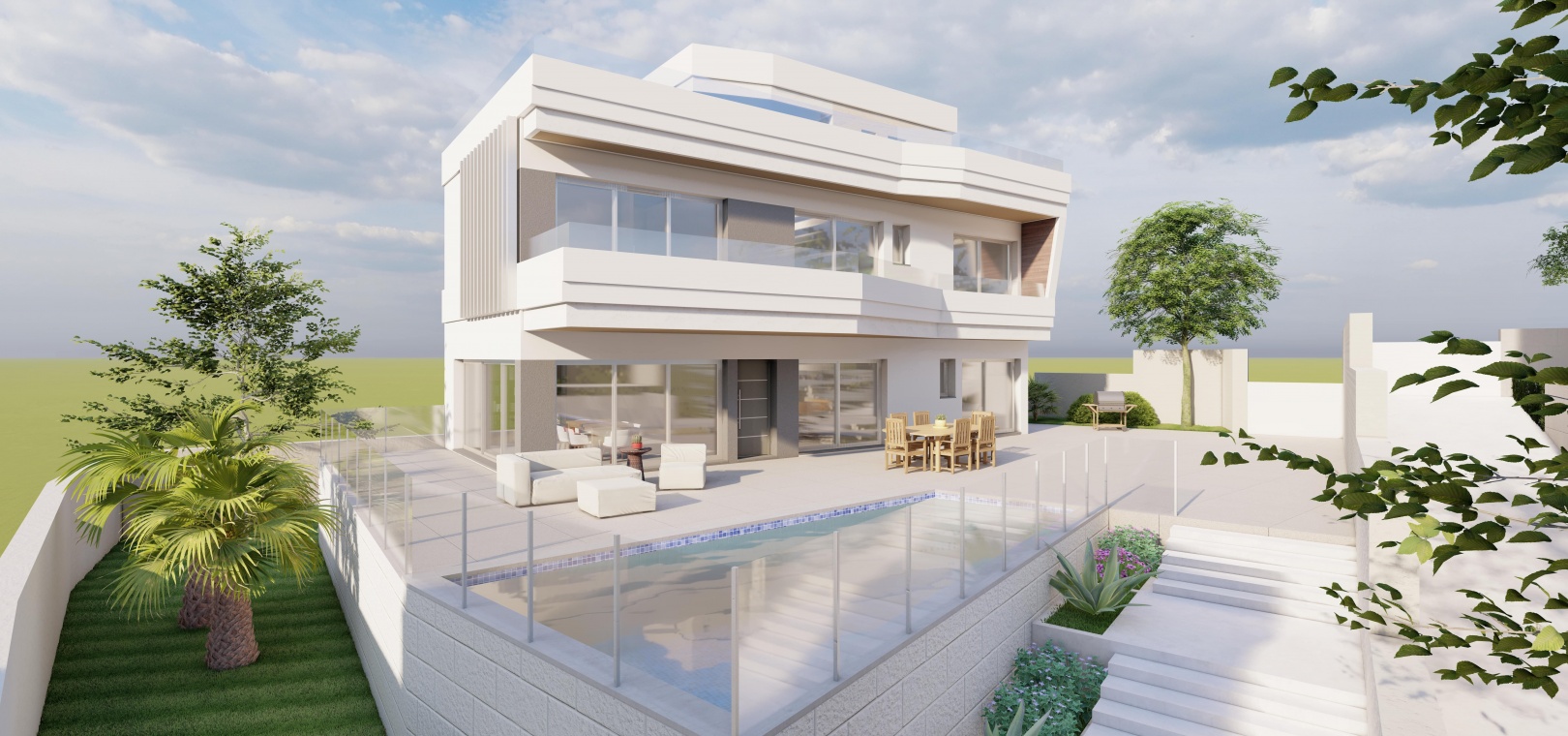 Fantastisk modern design nybyggd 4 bäddar 4 badrum lyxiga fristående villor, belägna bara 500 meter från havet i Res Azul Village, Campoamor, Costa Blanca South.