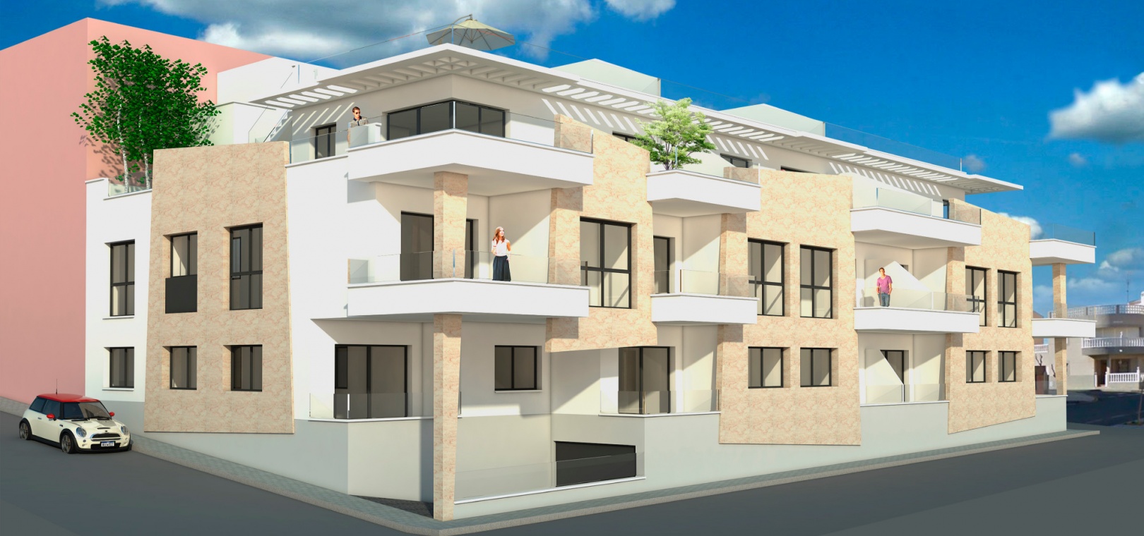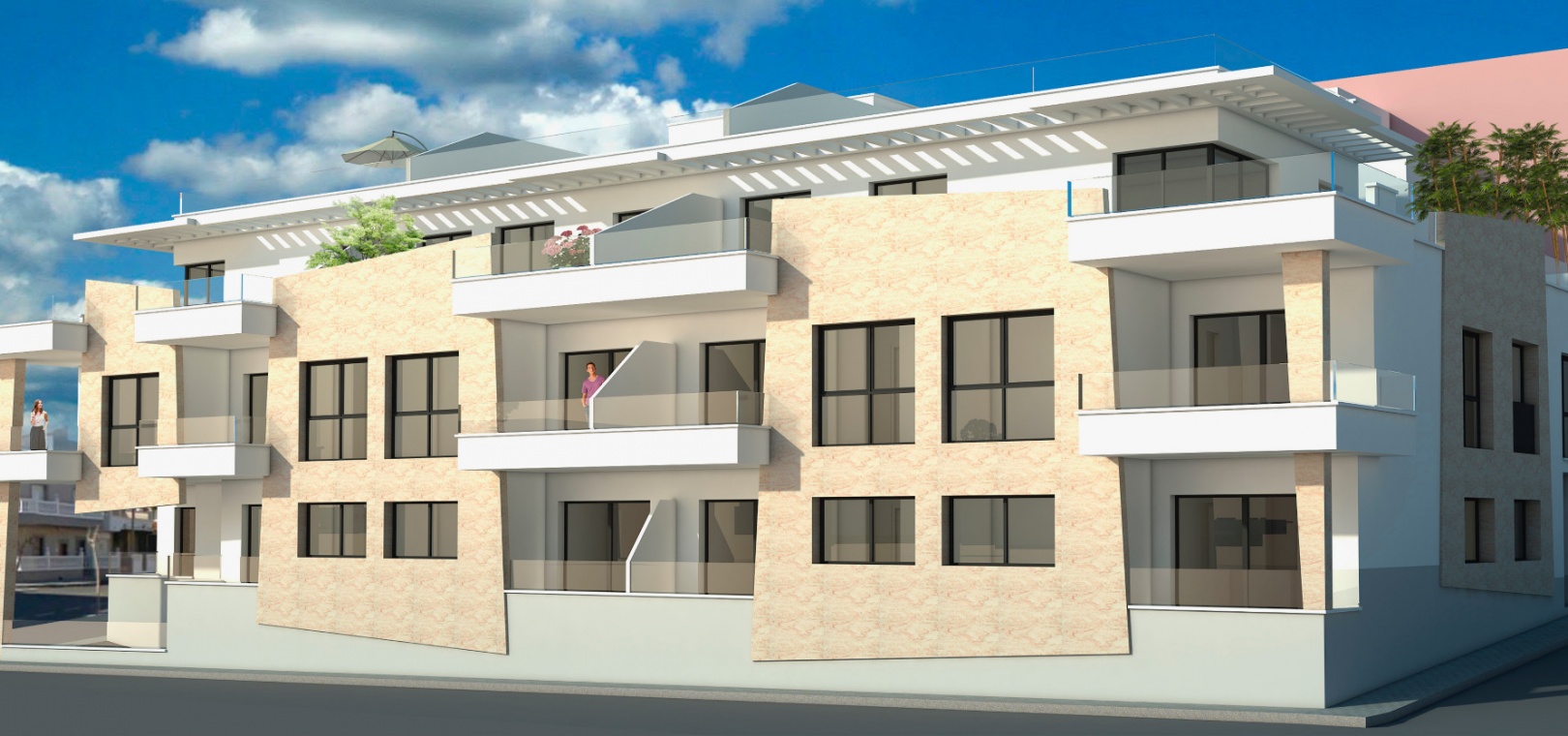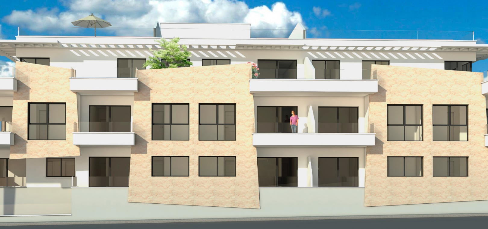 Nybyggd modern design 2 sovrum, 2 badrum lägenheter belägna bara 100 meter från stranden i Res. HIGUERICAS BEACH XXXVI, Torre de la Horadada, Costa Blanca.
