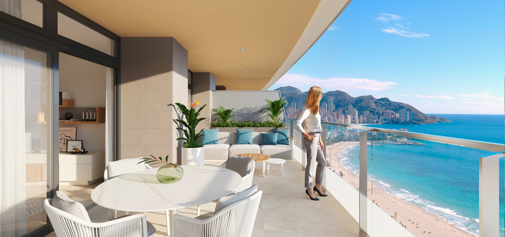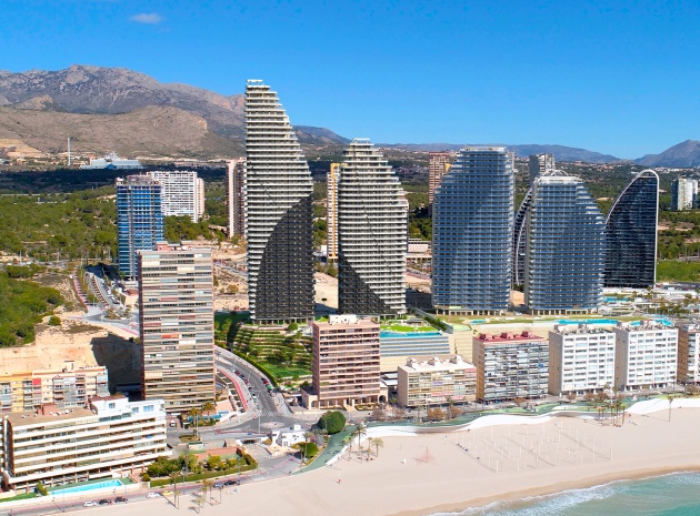 Lyxiga nybyggda lägenheter med 4 sovrum och 3 badrum med fantastisk havsutsikt belägna i Res. Sunset Sailors, Benidorm, Costa Blanca North.