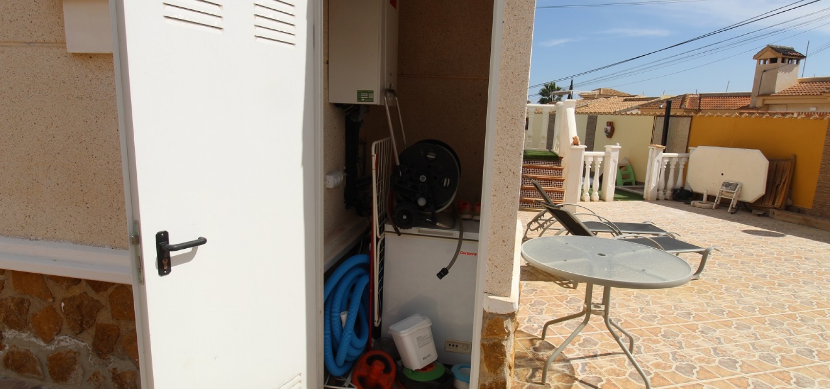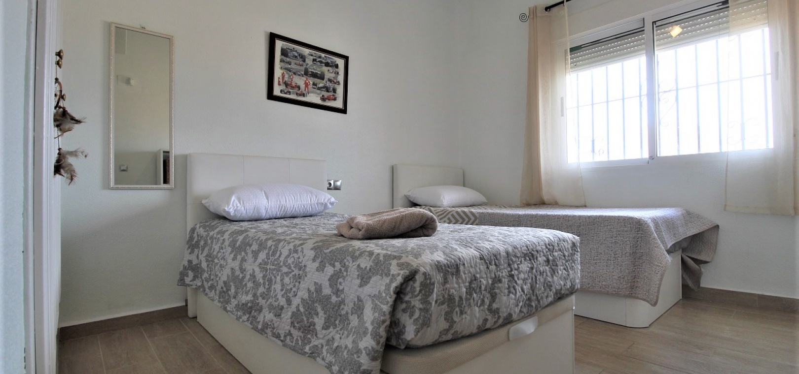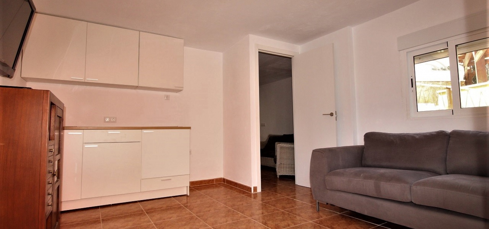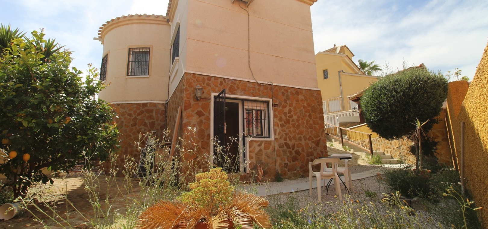 En fristående villa med 2 sovrum och 2 badrum i sydvästläge med en separat lägenhet med 2 sovrum och 1 badrum i El Galan, Villamartin, Costa Blanca.