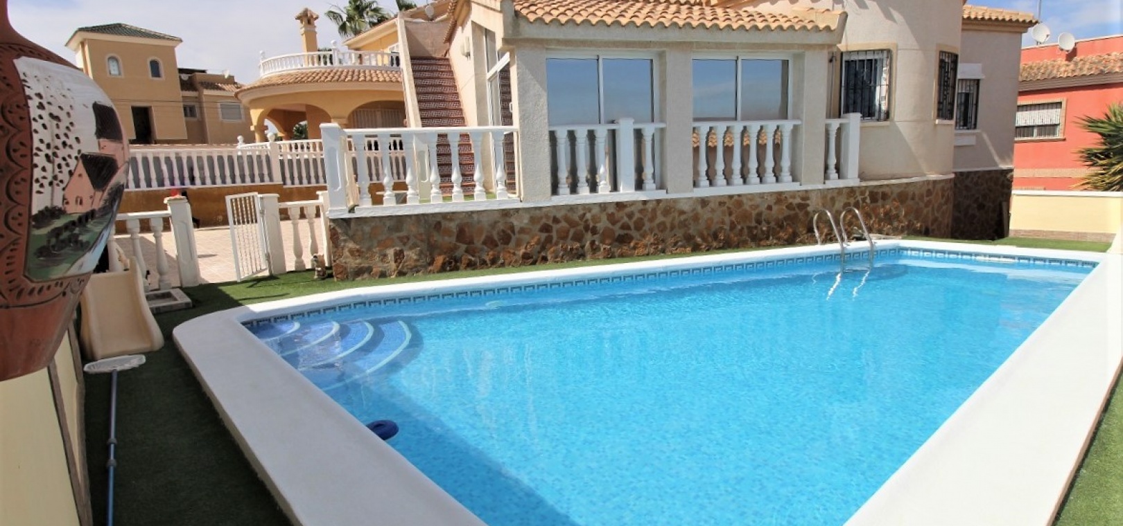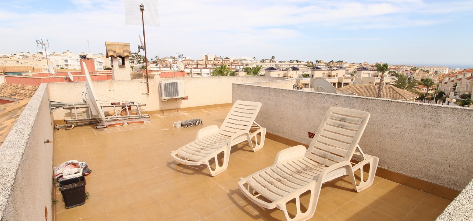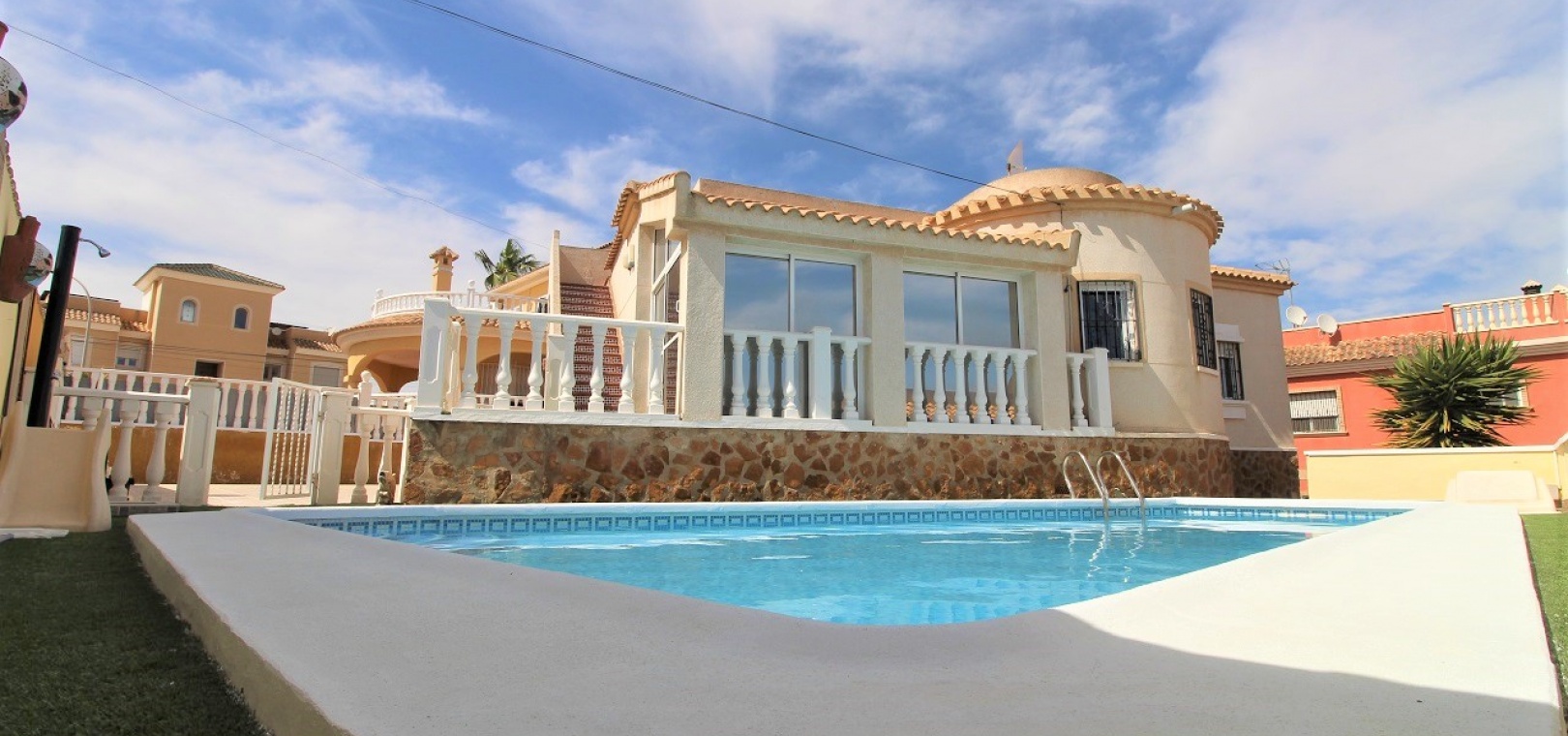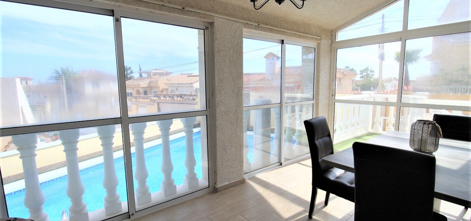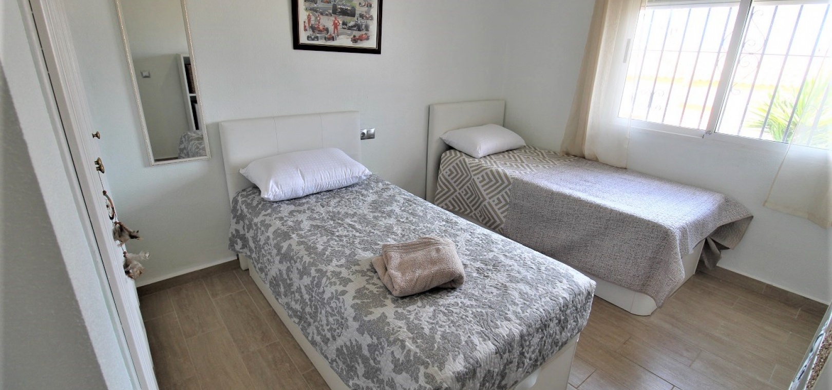 En fristående villa med 2 sovrum och 2 badrum i sydvästläge med en separat lägenhet med 2 sovrum och 1 badrum i El Galan, Villamartin, Costa Blanca.