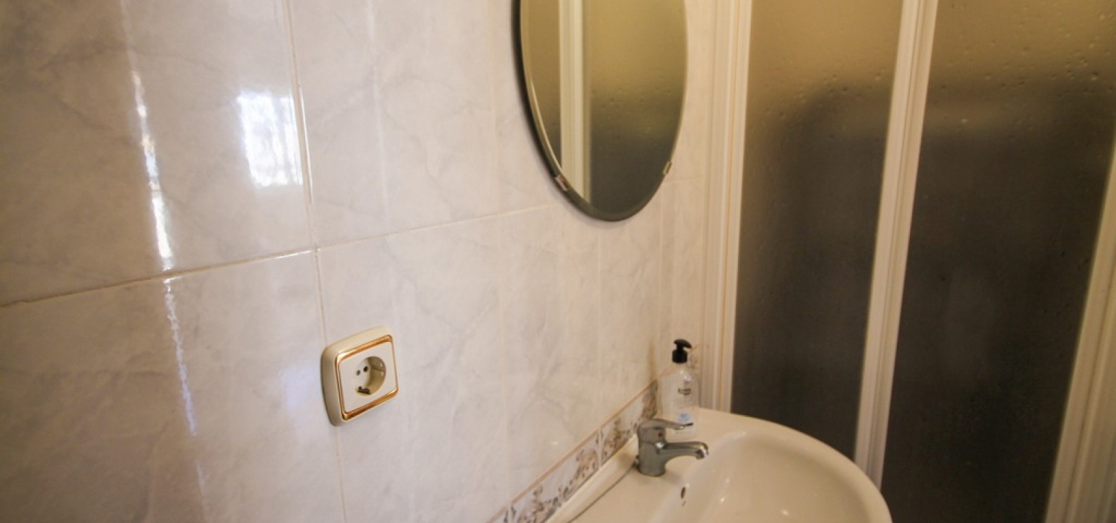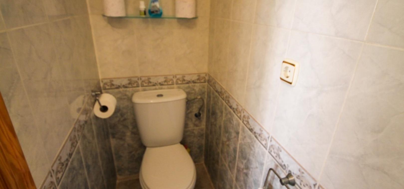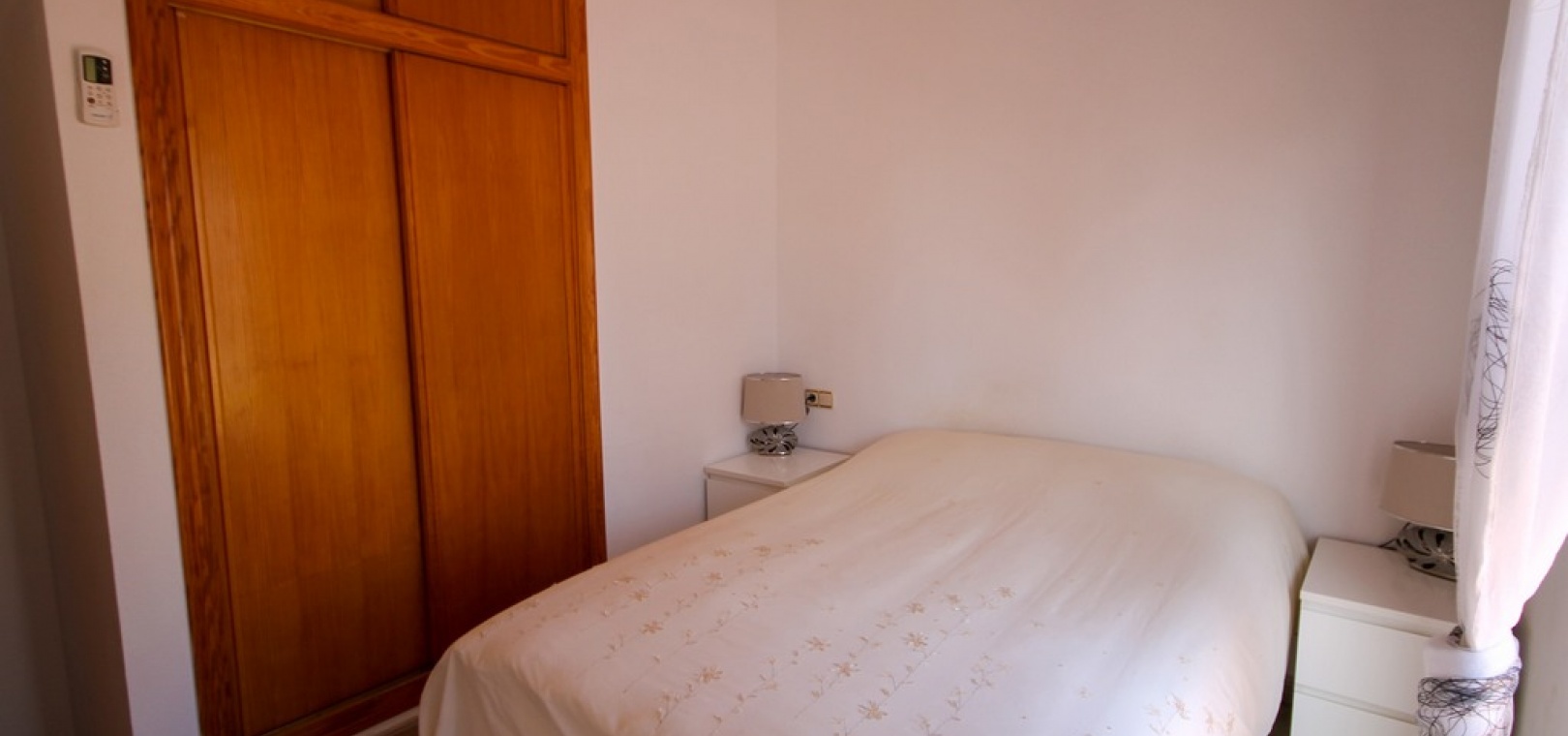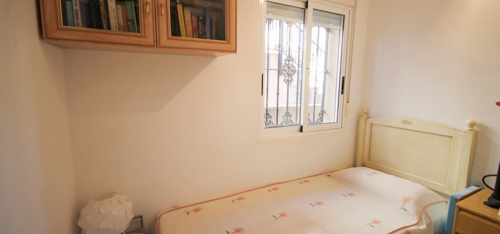 Intern trappa leder till 1: a våningen där det finns 2 x dubbelrum båda med inbyggda garderober, det största sovrummet har en privat balkong med utsikt över den gemensamma poolen och 1 x badrum. Trappor från trappavsatsen leder dig upp till det rymliga solariet på taket som har utsikt mot bergen, saltsjön och havet.