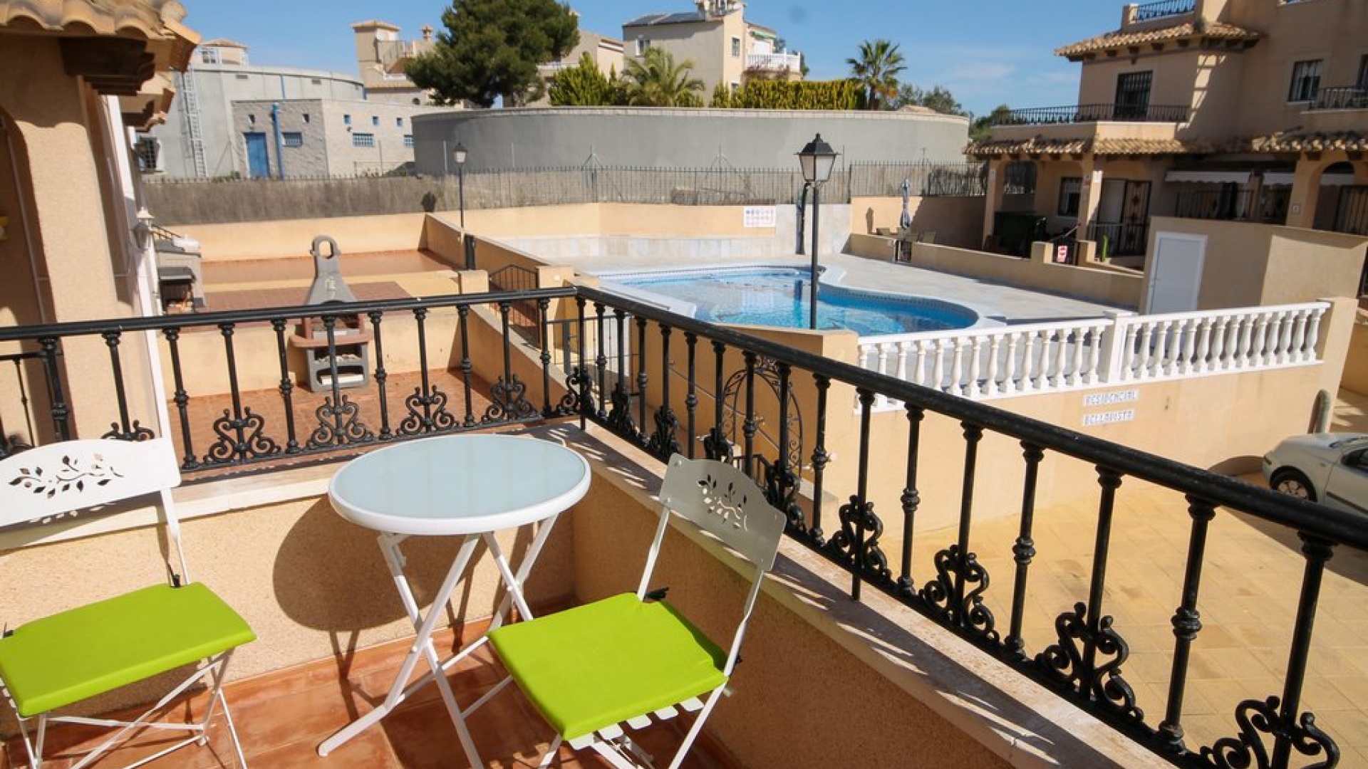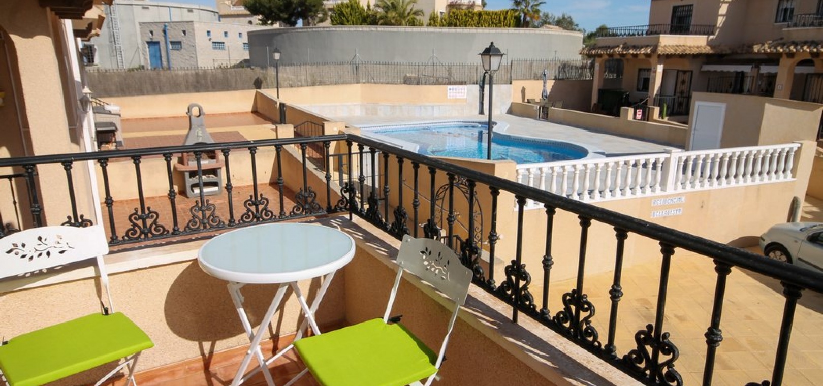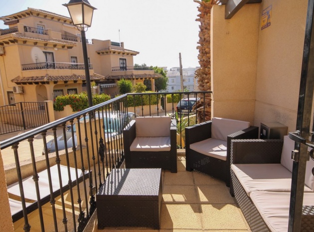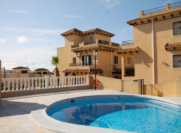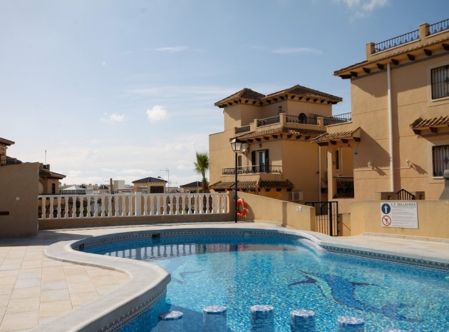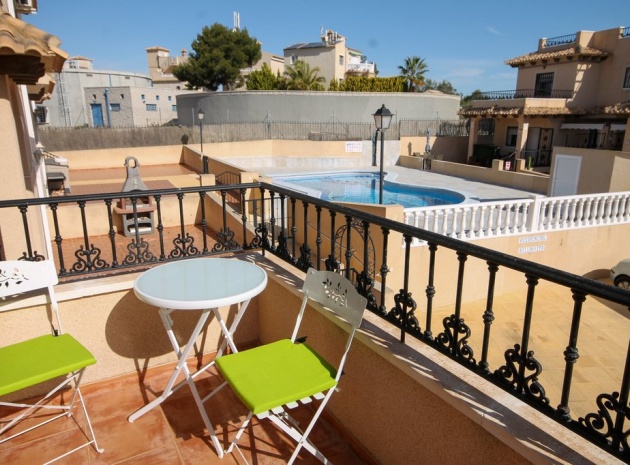 Ett parhus med 3 sovrum och 2 badrum med utsikt över den gemensamma poolen i El Galan, Villamartin, Costa Blanca.