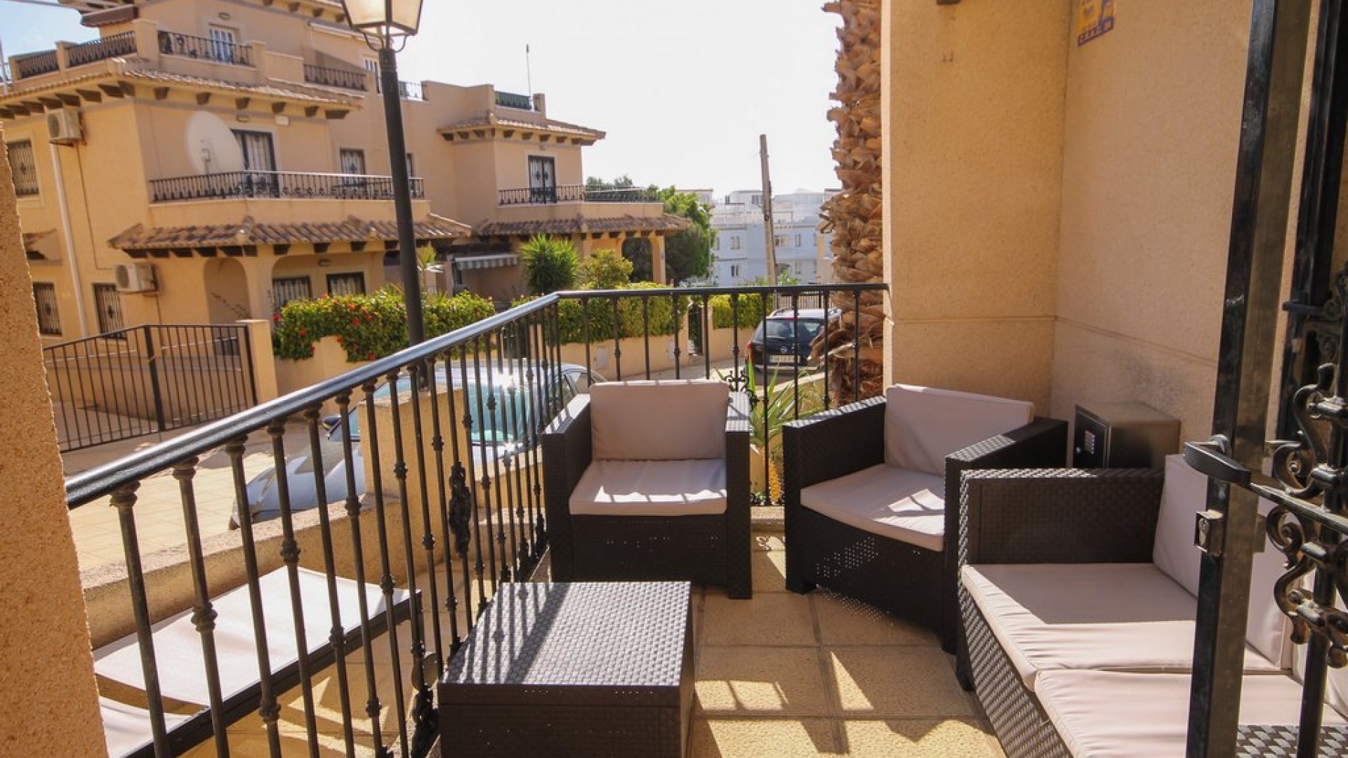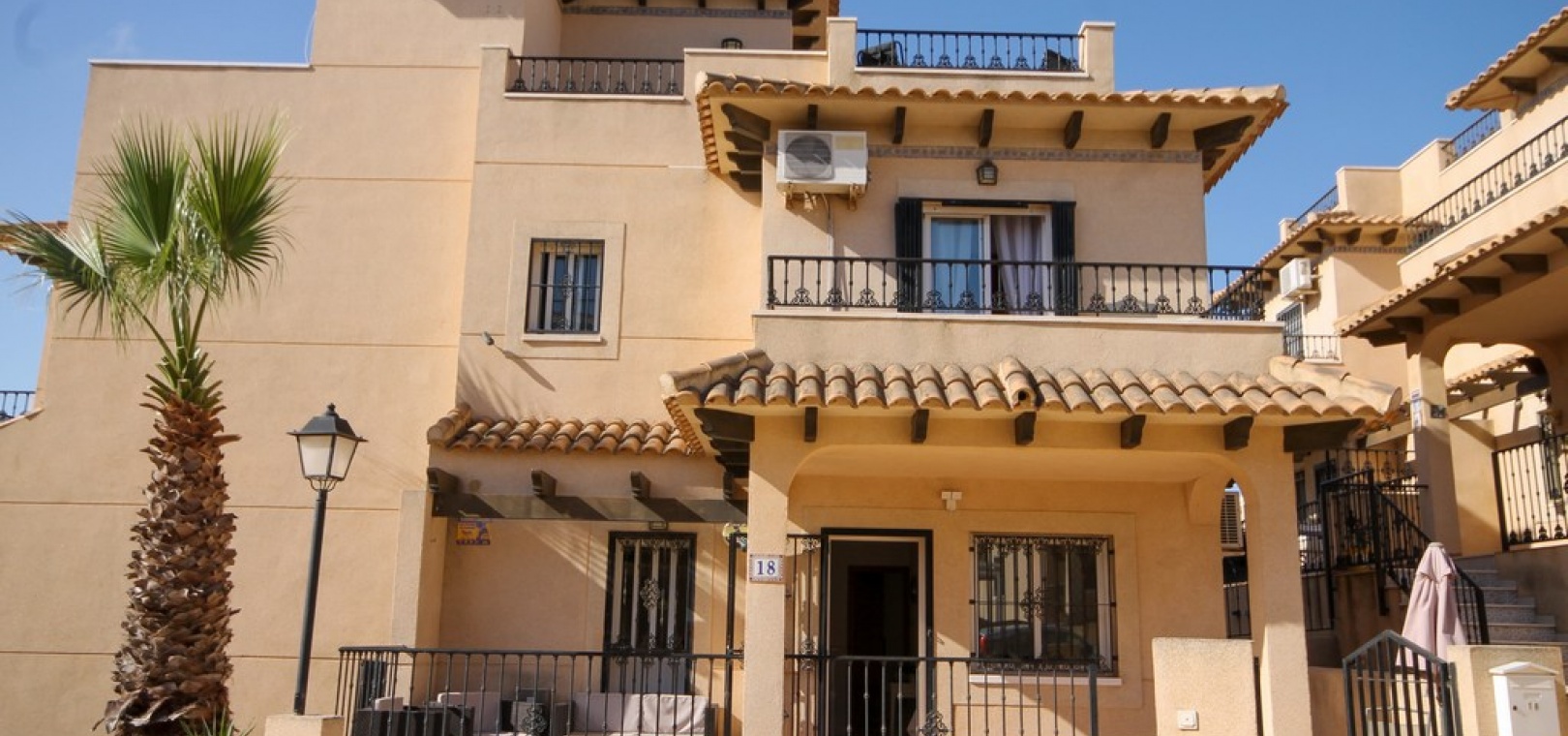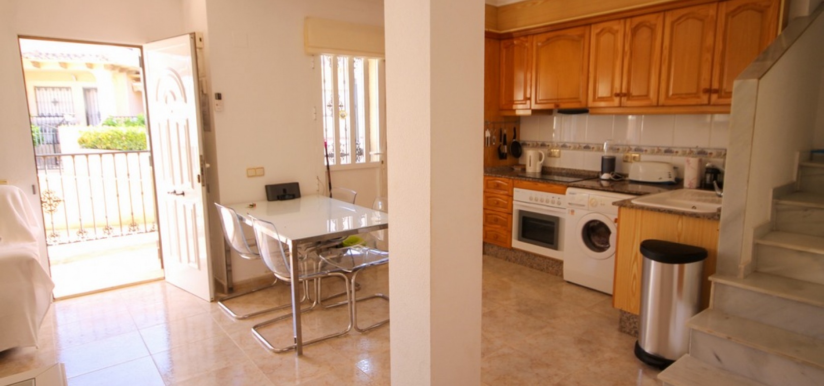 Ett parhus med 3 sovrum och 2 badrum med utsikt över den gemensamma poolen i El Galan, Villamartin, Costa Blanca.
